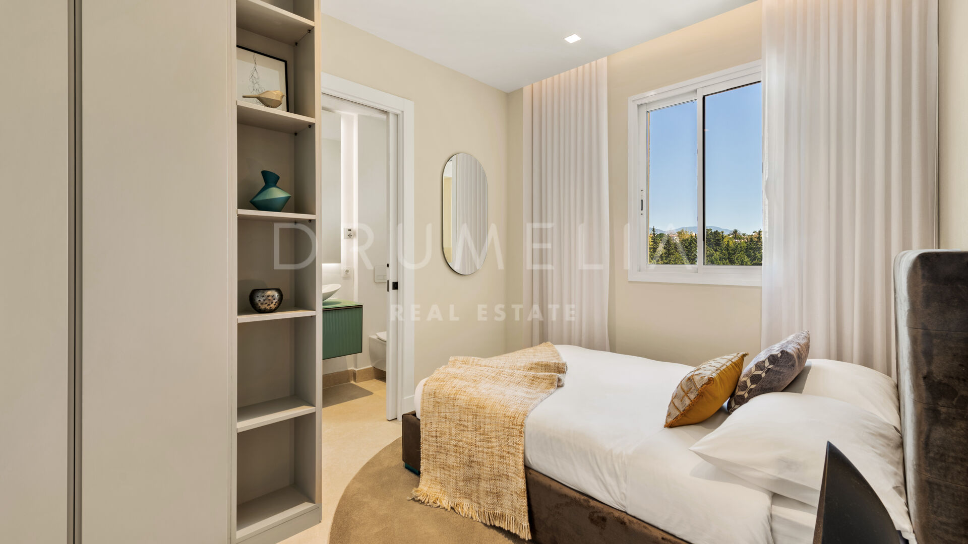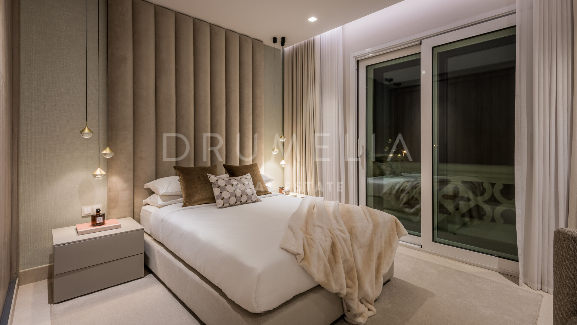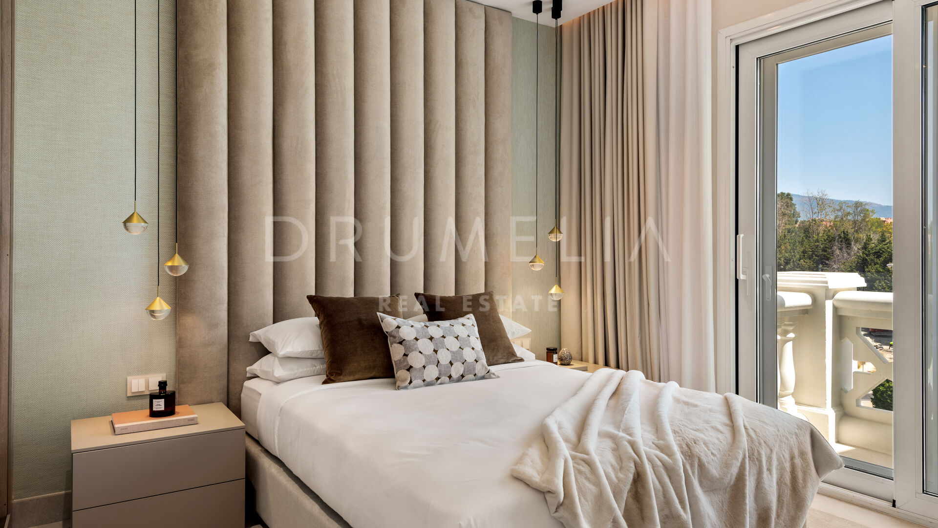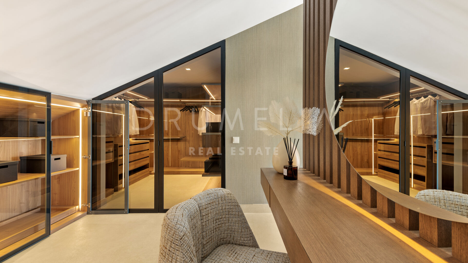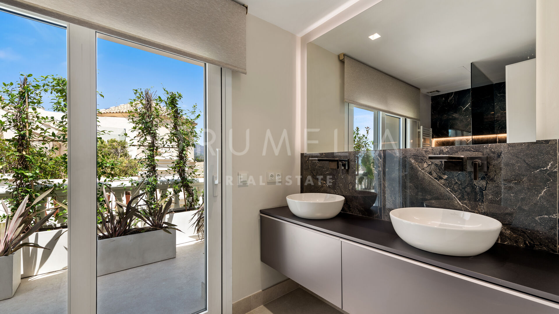 Das spektakuläre, hochwertige Penthouse mit einer Fläche von 262 m2, das nach Süden/Westen ausgerichtet ist, verfügt über 5 stilvolle Schlafzimmer und 5 Bäder mit Fußbodenheizung, ein elegantes Wohnzimmer mit TV-Lounge, eine Designerküche mit hervorragenden deutschen NEFF-Geräten, einen Essbereich, einen Weinkeller, eine private Sauna und eine Waschküche. Die Zimmer sind mit den bemerkenswerten 165 m2 großen Terrassen verbunden, auf denen man chillen, sonnenbaden und im Freien speisen kann. Von hier aus hat man einen atemberaubenden Blick auf das Meer, die Berge und die Straße von Gibraltar mit den beeindruckenden “Säulen des Herkules”, an denen die Menschen in der Antike das Ende der Welt vermuteten.