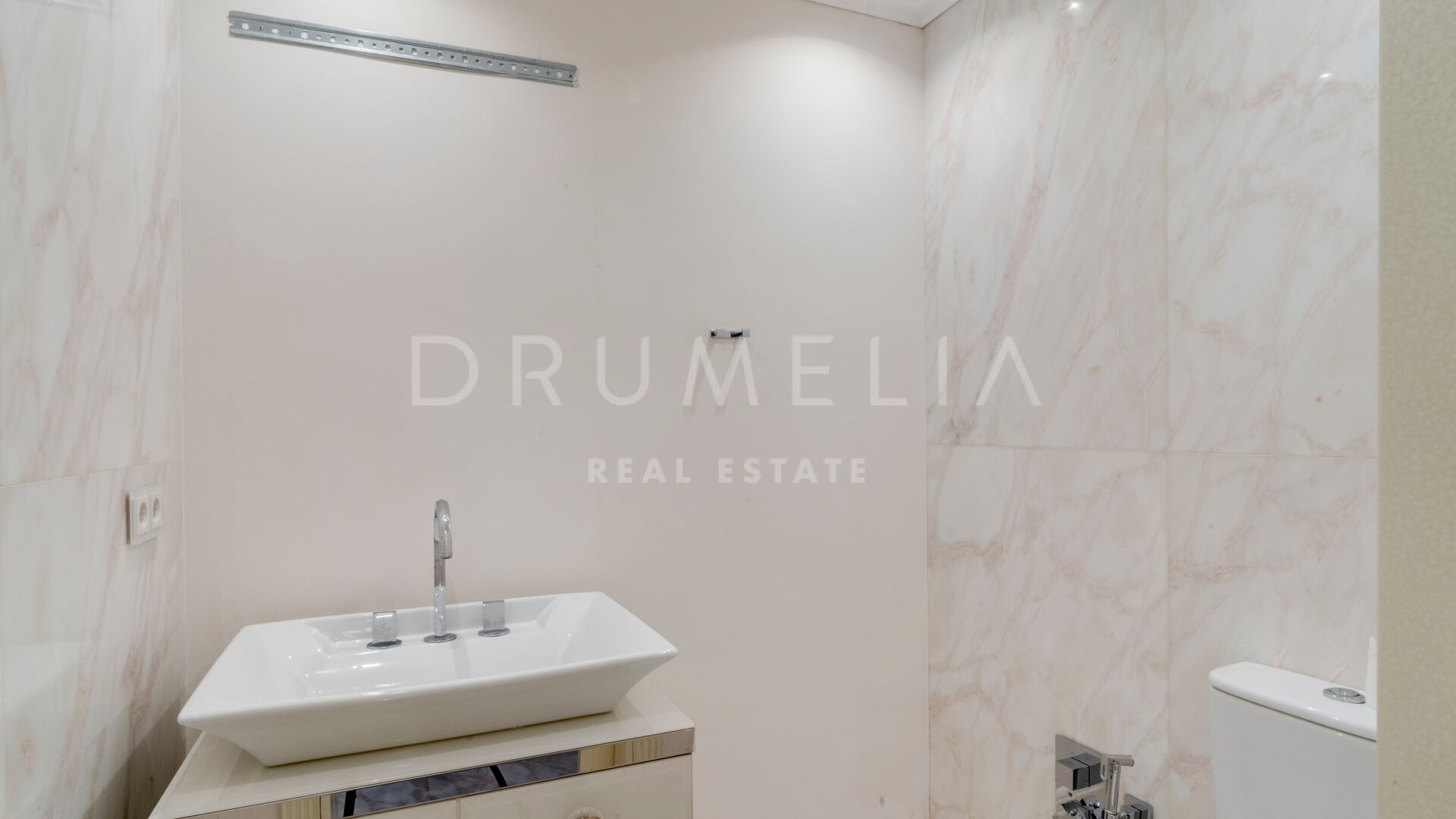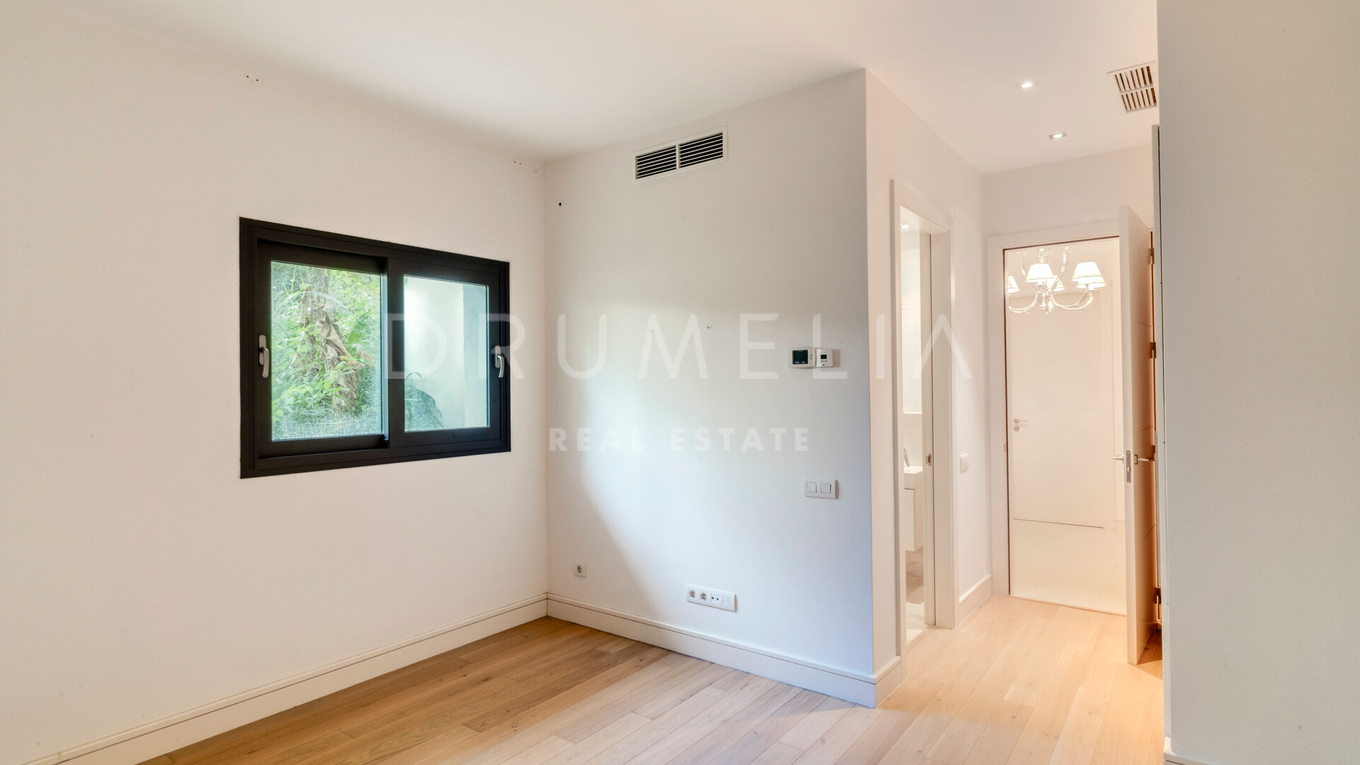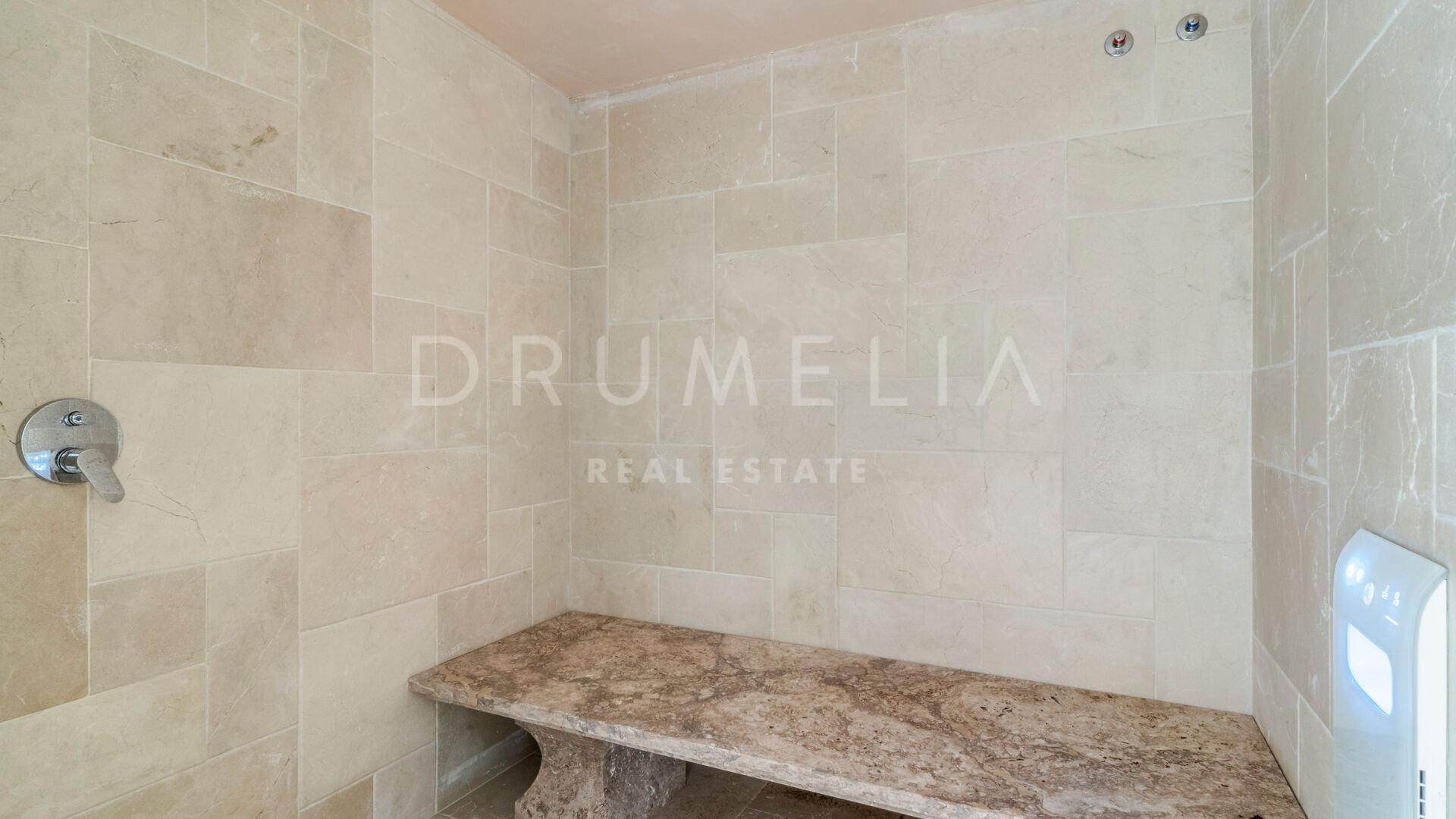 Das Untergeschoss ist für Entspannung und Unterhaltung konzipiert und verfügt über zwei zusätzliche Schlafzimmer mit eigenen Bädern, einen Spielraum, eine Waschküche, eine Sauna und ein Hammam. Eine geräumige Garage bietet Platz für bis zu vier Fahrzeuge. Zudem ist die Villa mit einem privaten Aufzug ausgestattet, der zusätzlichen Komfort bietet.