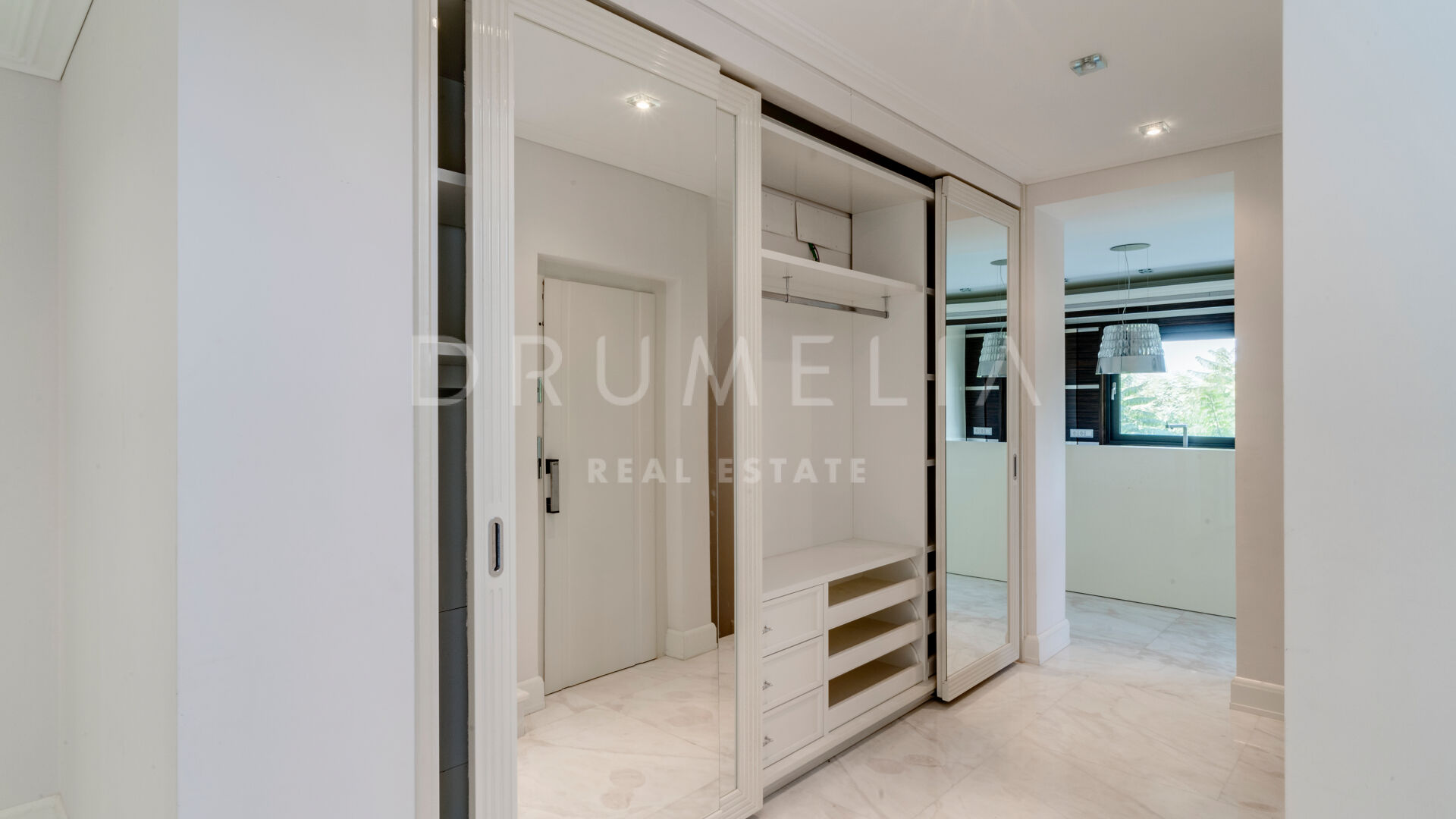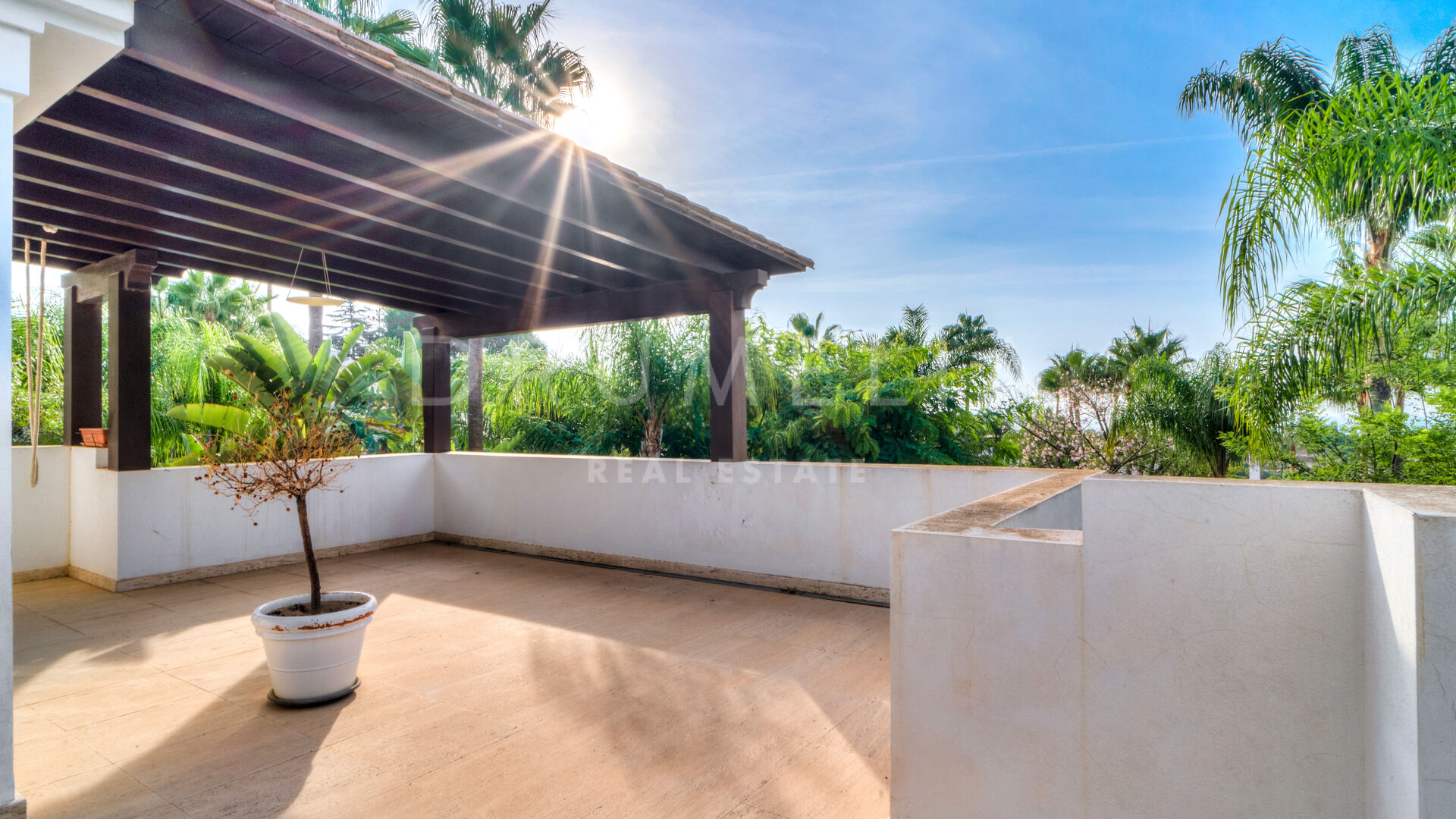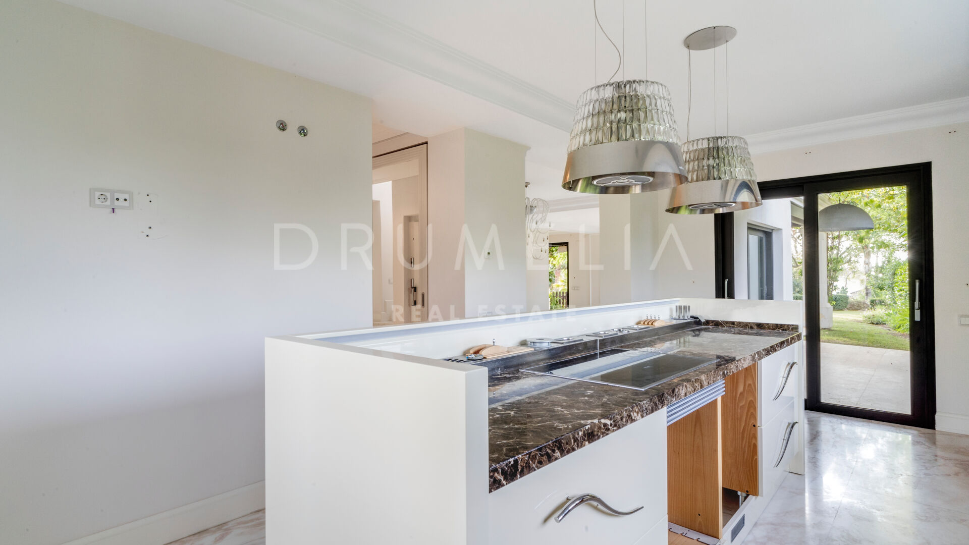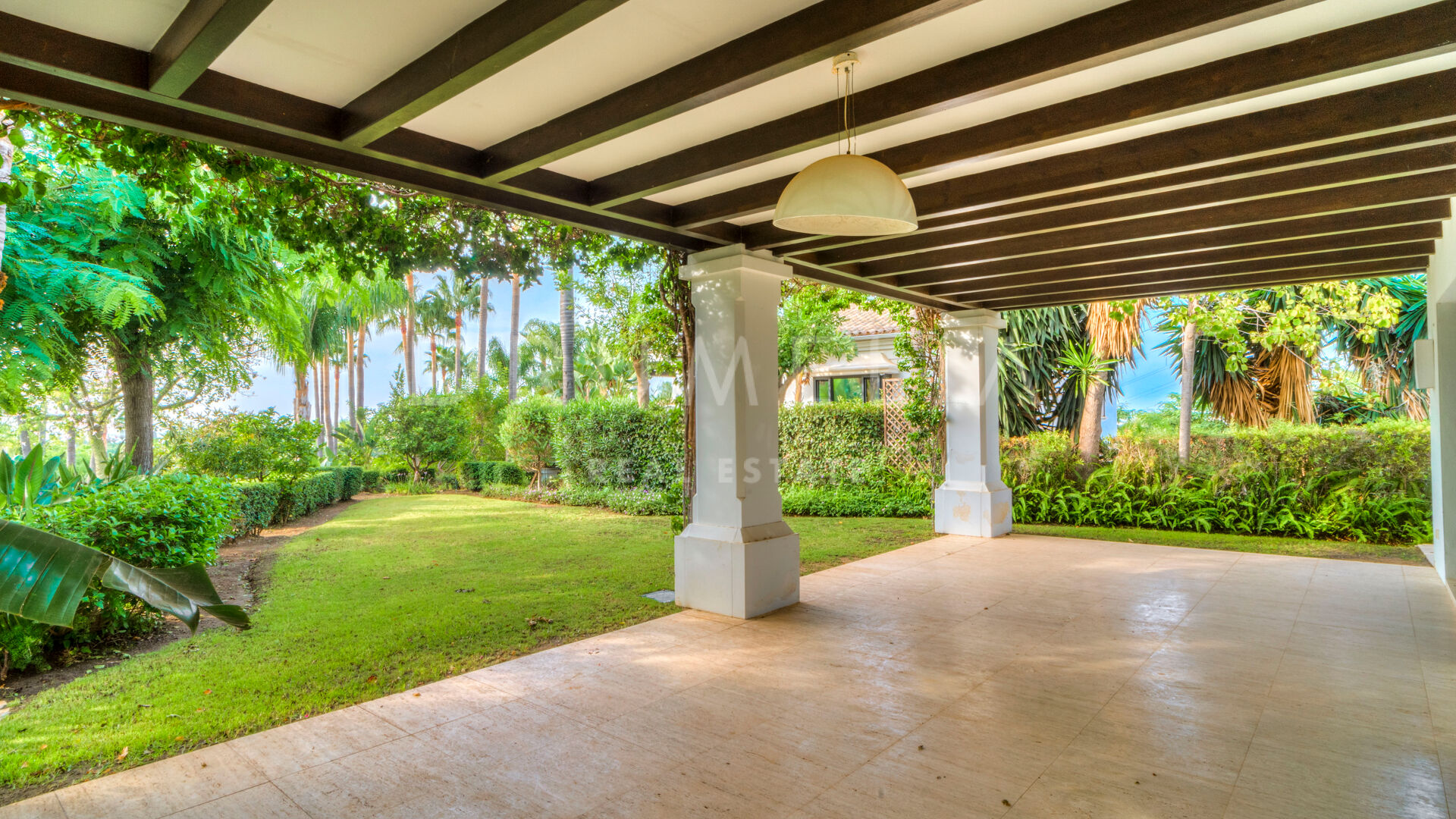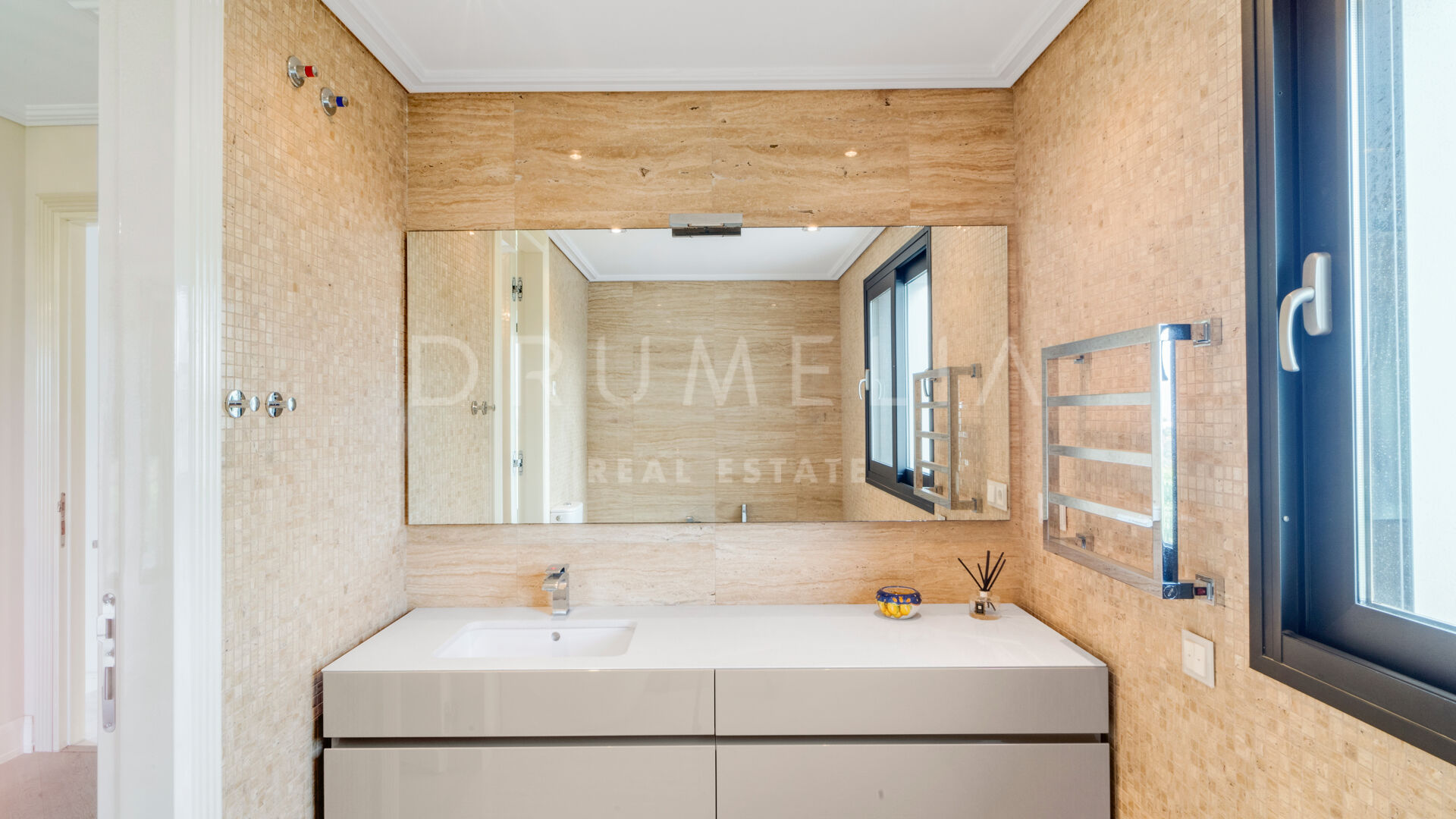 Atemberaubende Luxusvilla mit Südwestausrichtung in Lomas de Magna Marbella, einer der exklusivsten Wohnanlagen an der berühmten Goldenen Meile von Marbella. Diese außergewöhnliche Immobilie befindet sich in einer gesicherten Wohnanlage mit 24-Stunden-Sicherheitsdienst, zwei großen Gemeinschaftspools und wunderschön angelegten tropischen Gärten. Die erstklassige Lage bietet eine bequeme Anbindung an Supermärkte, Geschäfte, Restaurants, Schulen und Golfplätze und liegt nur fünf Autominuten vom Strand entfernt.
