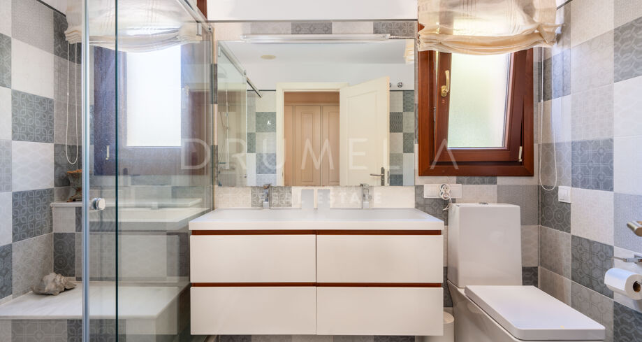 Das spektakuläre moderne Maisonette-Penthouse mit 402 m² bietet einen luxuriösen Lebensstil mit seinen 4 geräumigen Schlafzimmern, 4 modernen Bädern, einem separaten Gäste-WC, großzügigem Wohn- und Essbereich, einer voll ausgestatteten Küche, einem Hauswirtschaftsraum und einer riesigen Terrasse. Sie werden schöne Garten- und teilweise Meerblick genießen und die Bequemlichkeit haben, in der Nähe des Strandes, Golfplätze, internationalen Schulen und anderer Annehmlichkeiten zu sein. Das fabelhafte hochwertige Anwesen steht zum Verkauf mit modernen Annehmlichkeiten wie einem Aufzug für leichten Zugang, Klimaanlage, Einbauschränken, Holzböden, Doppelverglasung usw. 2 Garagenplätze und eine Abstellkammer sorgen für Bequemlichkeit und Stauraum für all Ihre Bedürfnisse. Ihre Sicherheit hat höchste Priorität. Die Alarmanlage, Videosprechanlage, Überwachungskameras, 24-Stunden-Sicherheitsdienst und kontrollierter Zugang zur bewachten Gemeinschaft geben Ihnen totale Sicherheit.