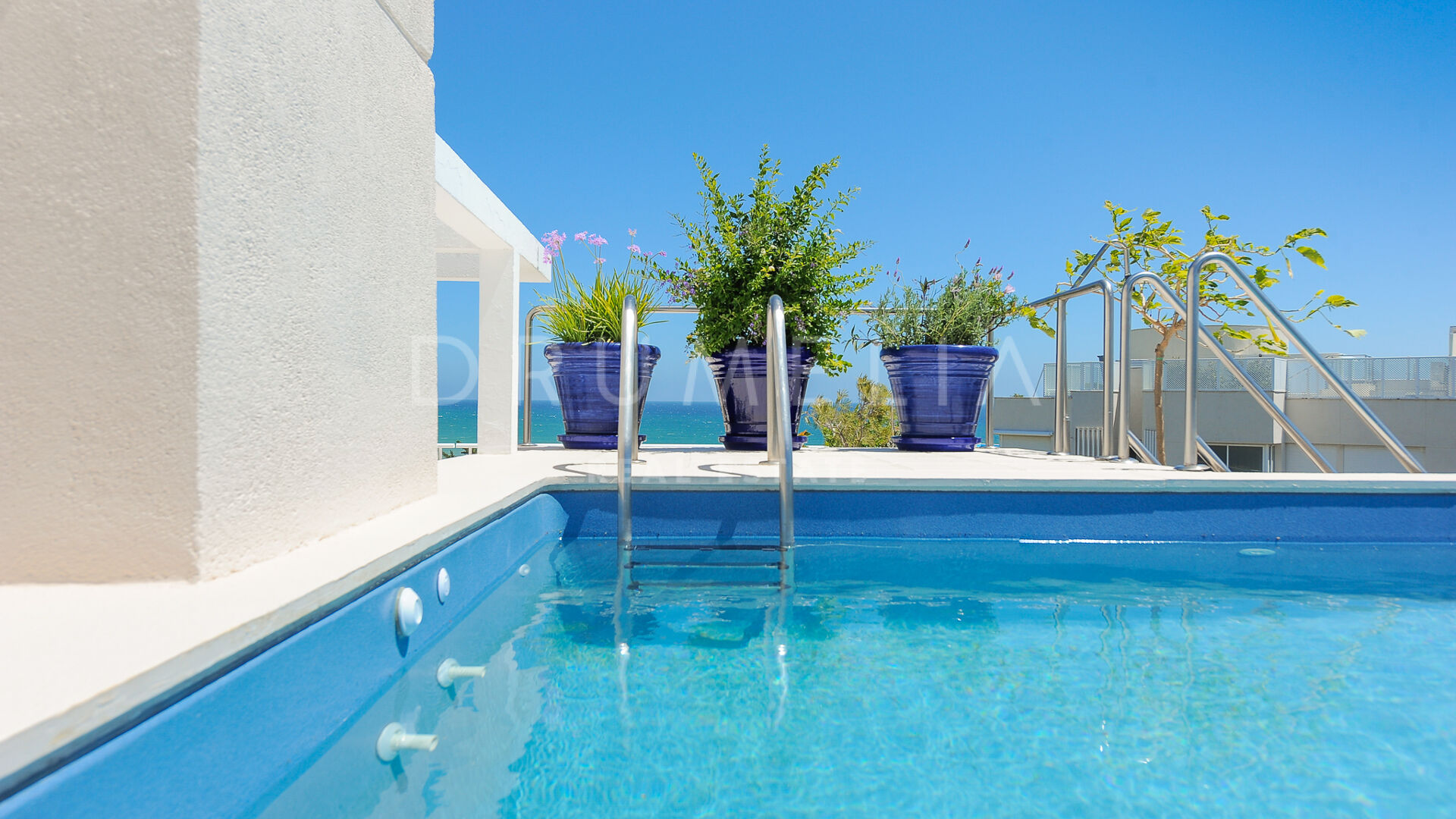 Sie geben sich nie mit etwas anderem als dem Besten zufrieden? Dann ist ein Penthouse die offensichtliche Antwort, wenn es um den Kauf einer Immobilie geht. Vor allem, wenn es sich um ein einzigartiges, direkt am Strand gelegenes Duplex mit absolut unglaublichem Meerblick und einem yachtähnlichen Design handelt, das Ihnen das Gefühl gibt, etwas ganz Besonderes zu sein…