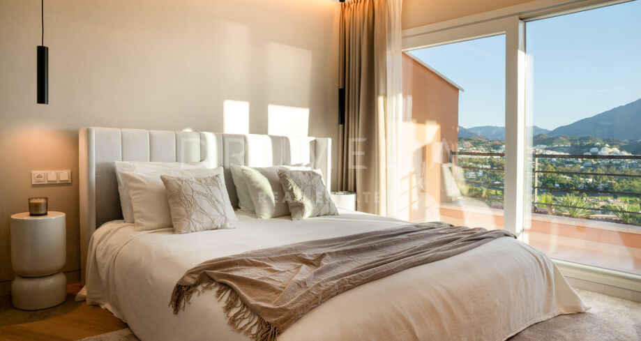 Dieses renovierte Penthouse in der angesehenen Wohnanlage Magna Marbella vereint modernes Design, Komfort und Panoramablick. In einer geschlossenen Anlage mit 24-Stunden-Sicherheit gelegen, bietet es Ausblicke auf das Mittelmeer, die Berge und den Golfplatz.