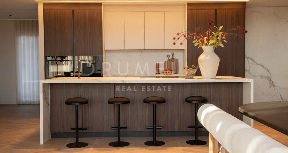 Im Inneren sorgen doppelte Deckenhöhe und ein offener Grundriss für fließende Übergänge zwischen Wohn-, Ess- und Küchenbereich. Zeitgemäße Ausstattungen und fußbodenbeheizte Bäder unterstreichen den Wohnkomfort. Voll möbliert verkauft, sofort bezugsfertig.
