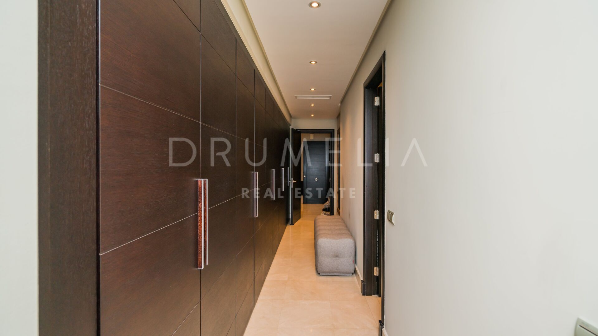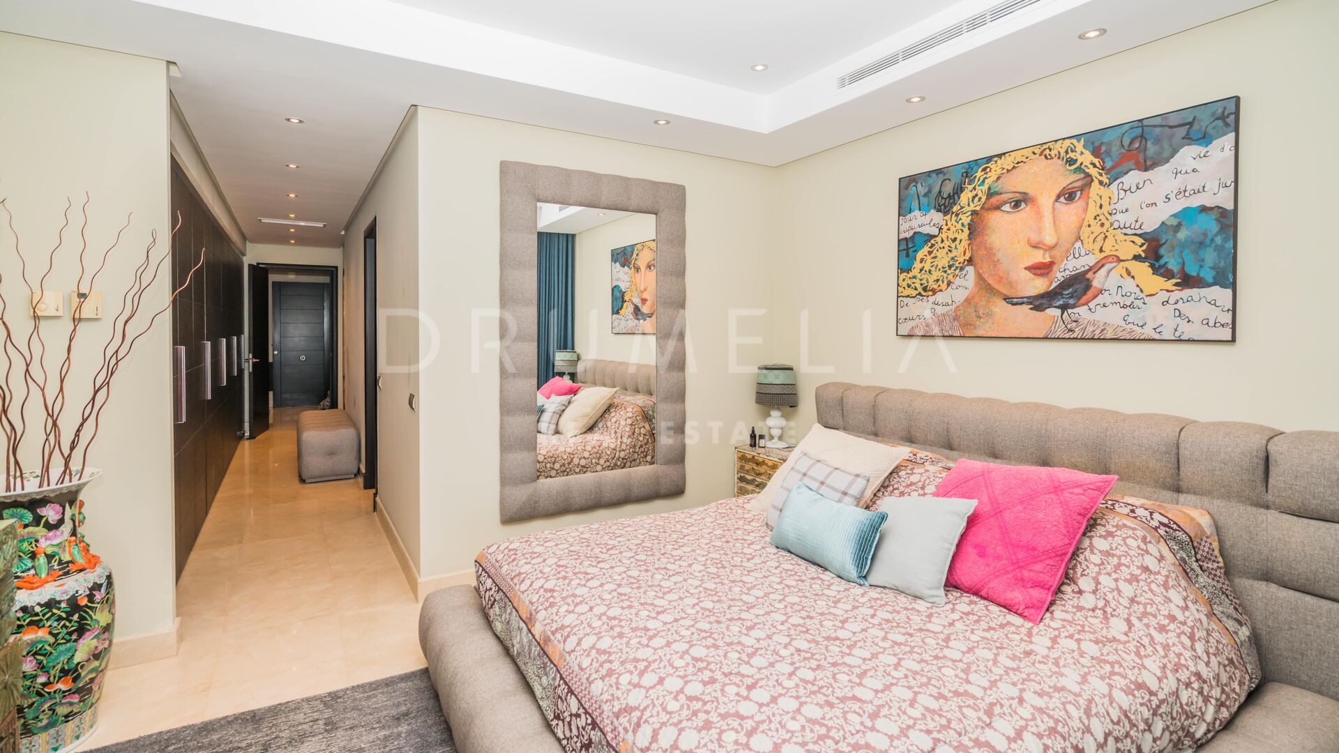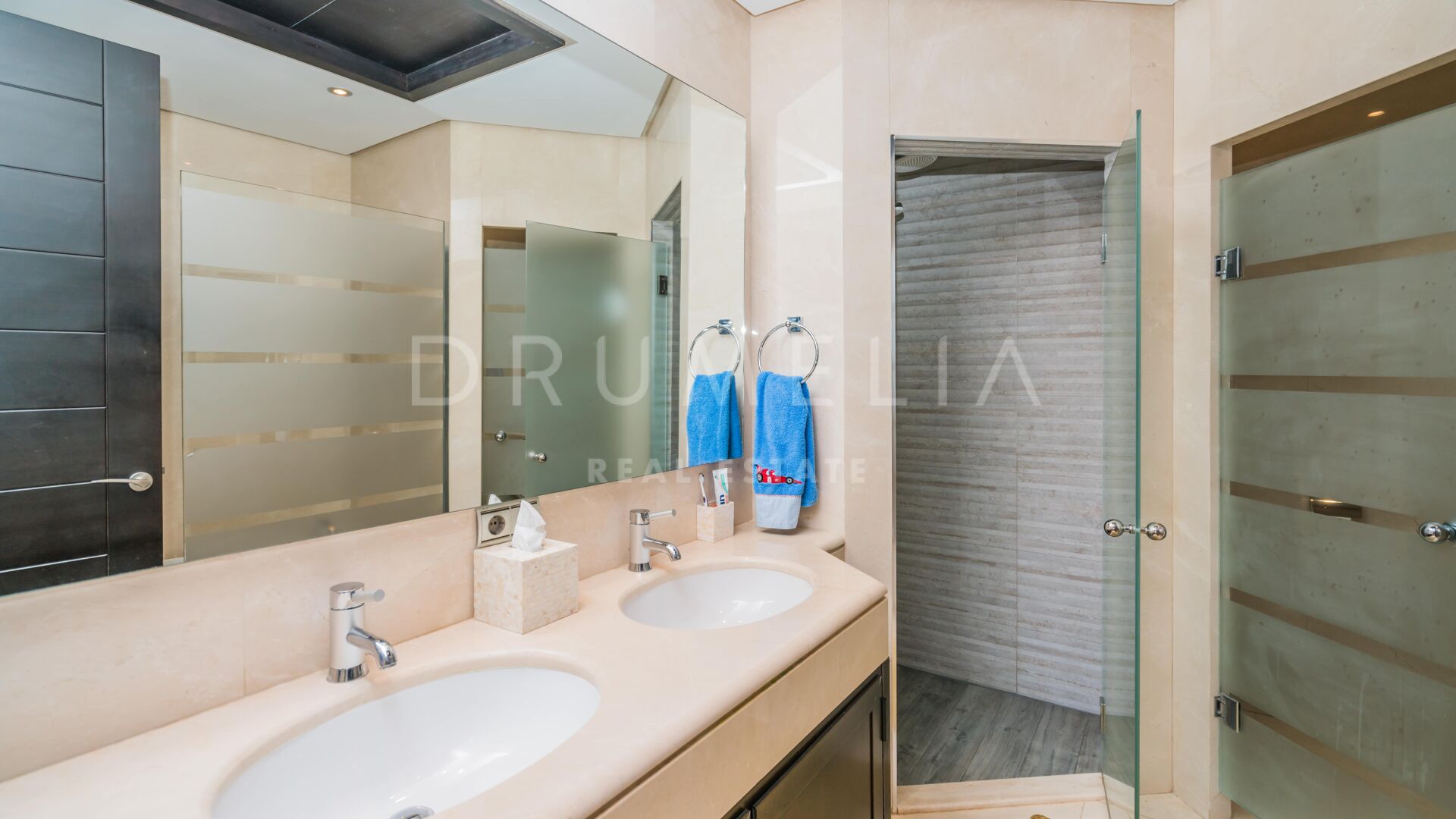 Diese Wohnung von 247 m2 befindet sich in Malibu, einer privaten Wohnanlage mit 24-Stunden-Sicherheitsdienst, Salzwasser- und Süßwasserpools, Wasserfällen, subtropischen Gärten und vielen Grünflächen, Fitnessraum, Sauna und türkischem Bad. Es liegt nur wenige Gehminuten vom Strand entfernt, zwischen dem charismatischen Yachthafen von Puerto Banus und dem charmanten authentischen Ort San Pedro.