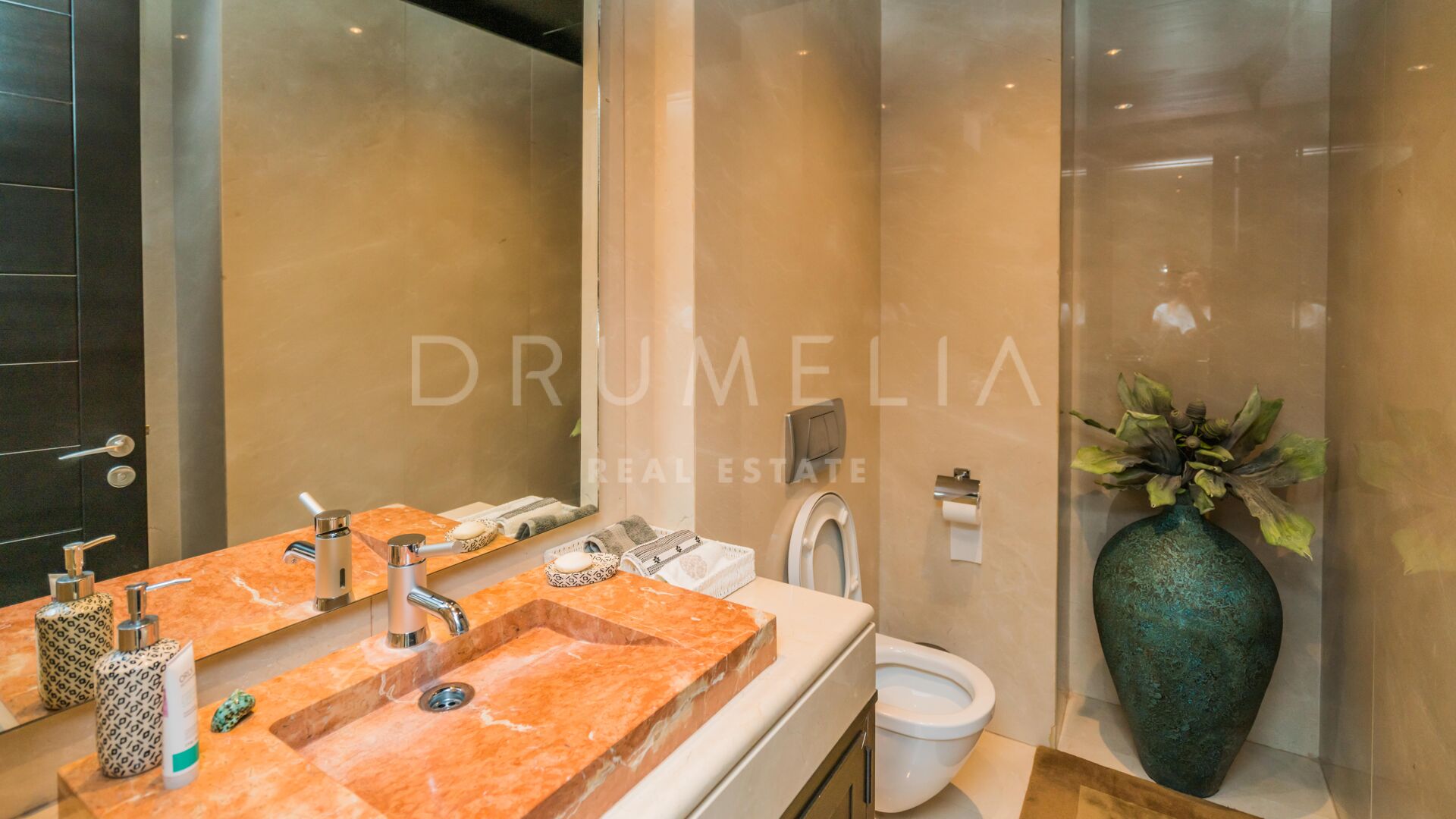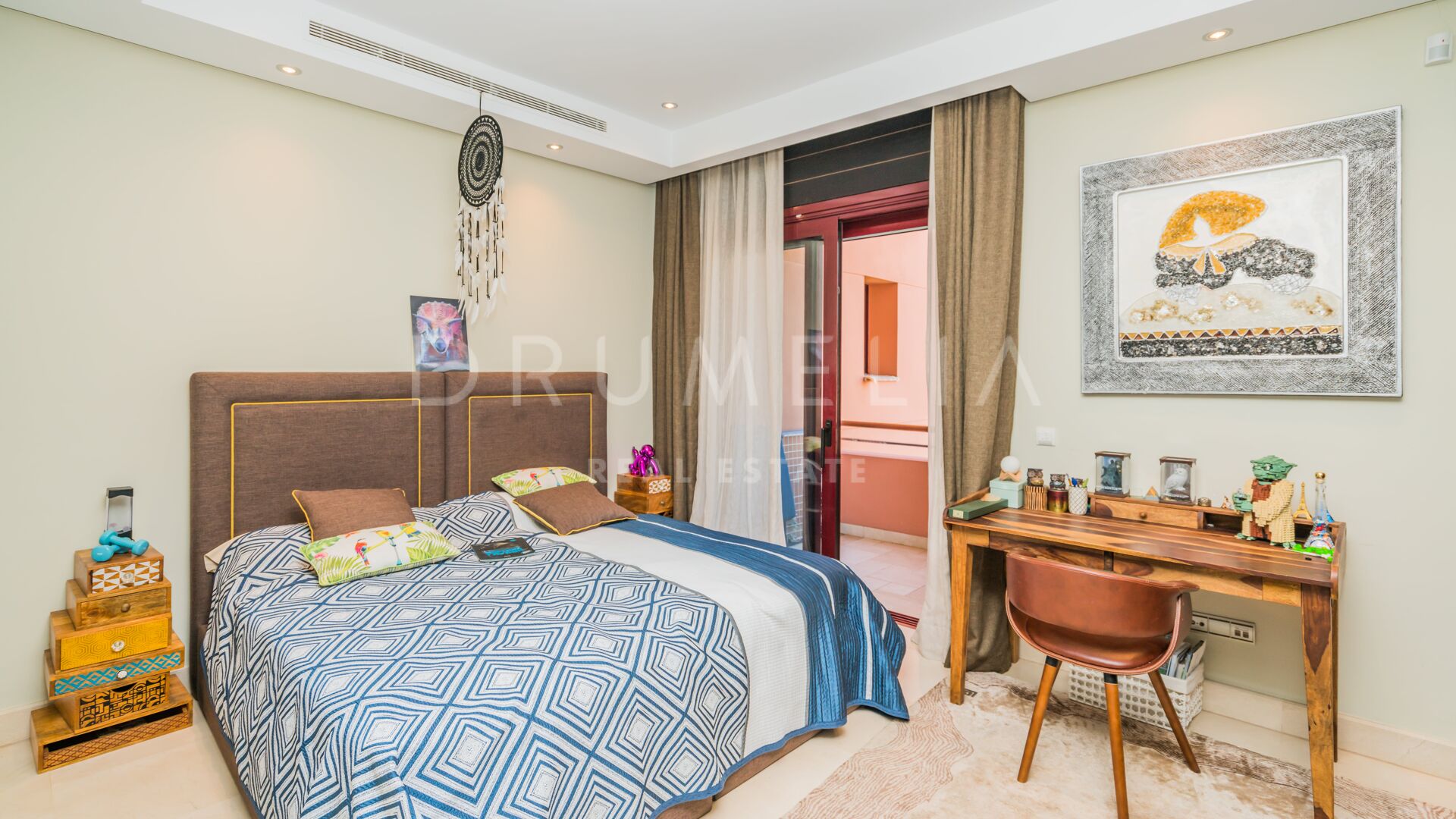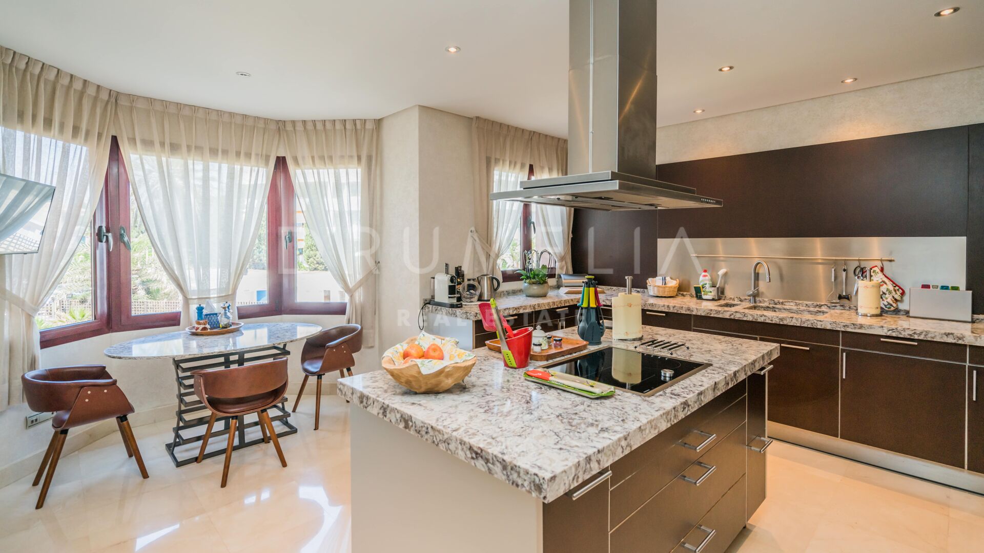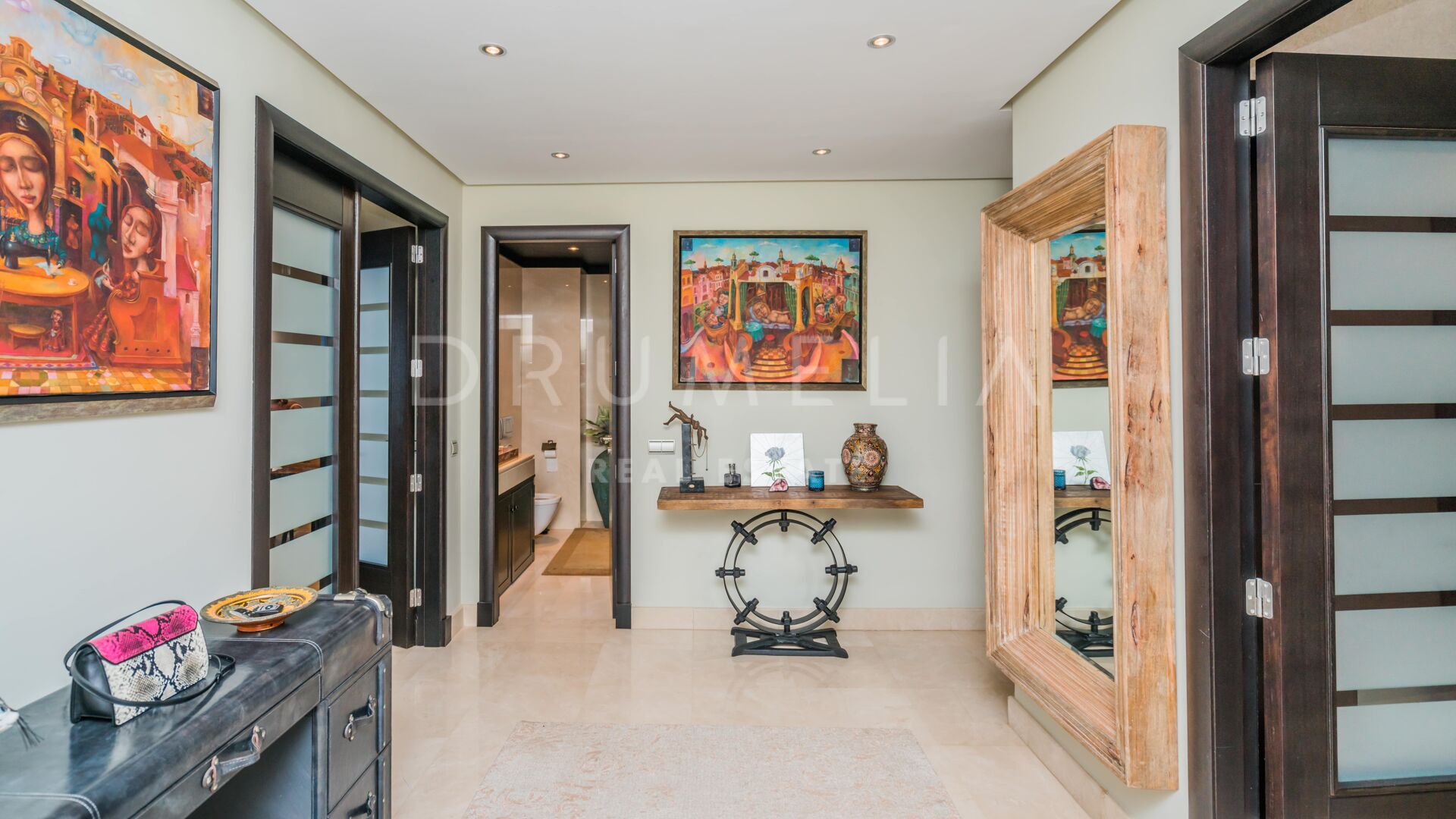 Diese Wohnung von 247 m2 befindet sich in Malibu, einer privaten Wohnanlage mit 24-Stunden-Sicherheitsdienst, Salzwasser- und Süßwasserpools, Wasserfällen, subtropischen Gärten und vielen Grünflächen, Fitnessraum, Sauna und türkischem Bad. Es liegt nur wenige Gehminuten vom Strand entfernt, zwischen dem charismatischen Yachthafen von Puerto Banus und dem charmanten authentischen Ort San Pedro.