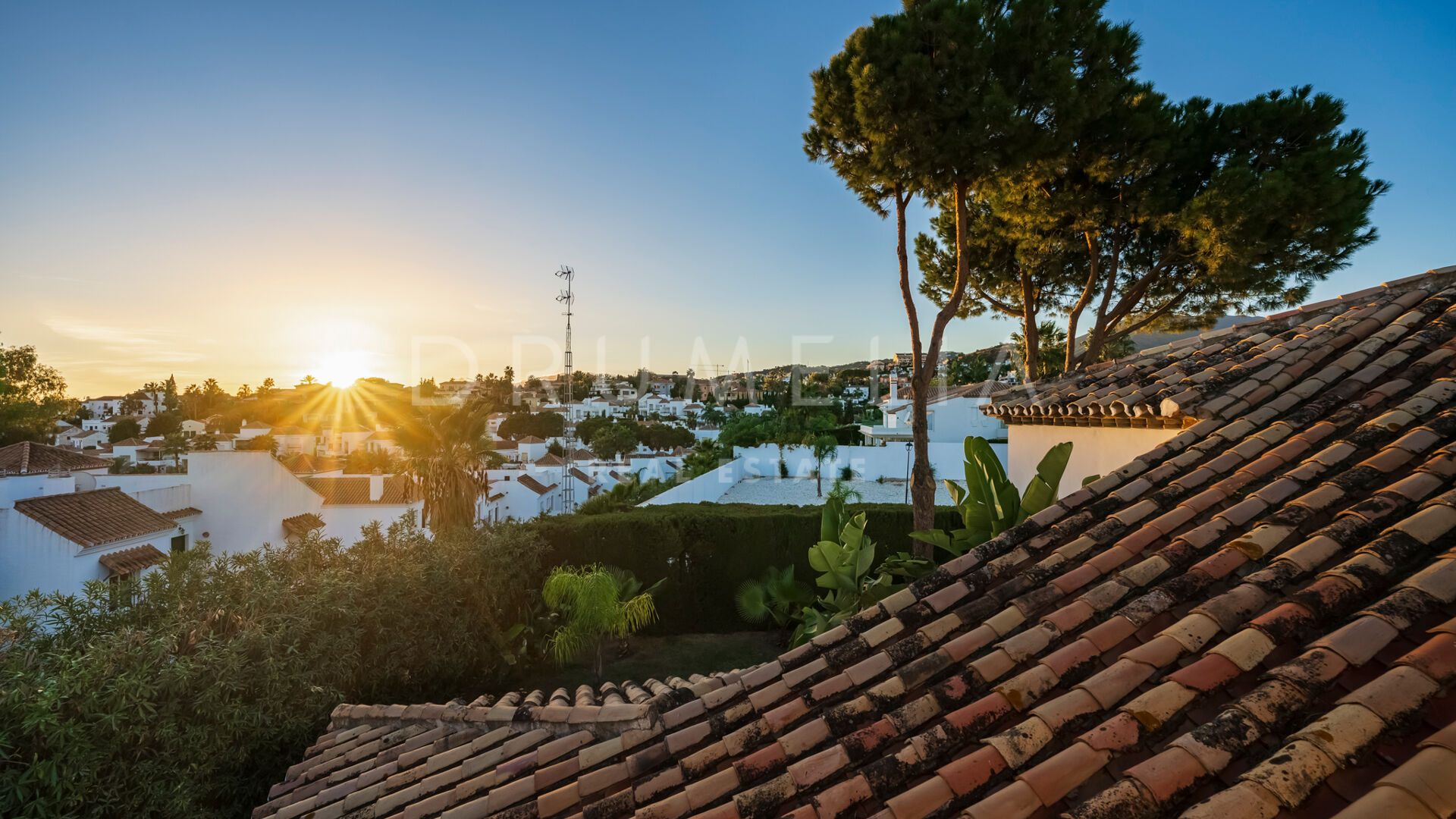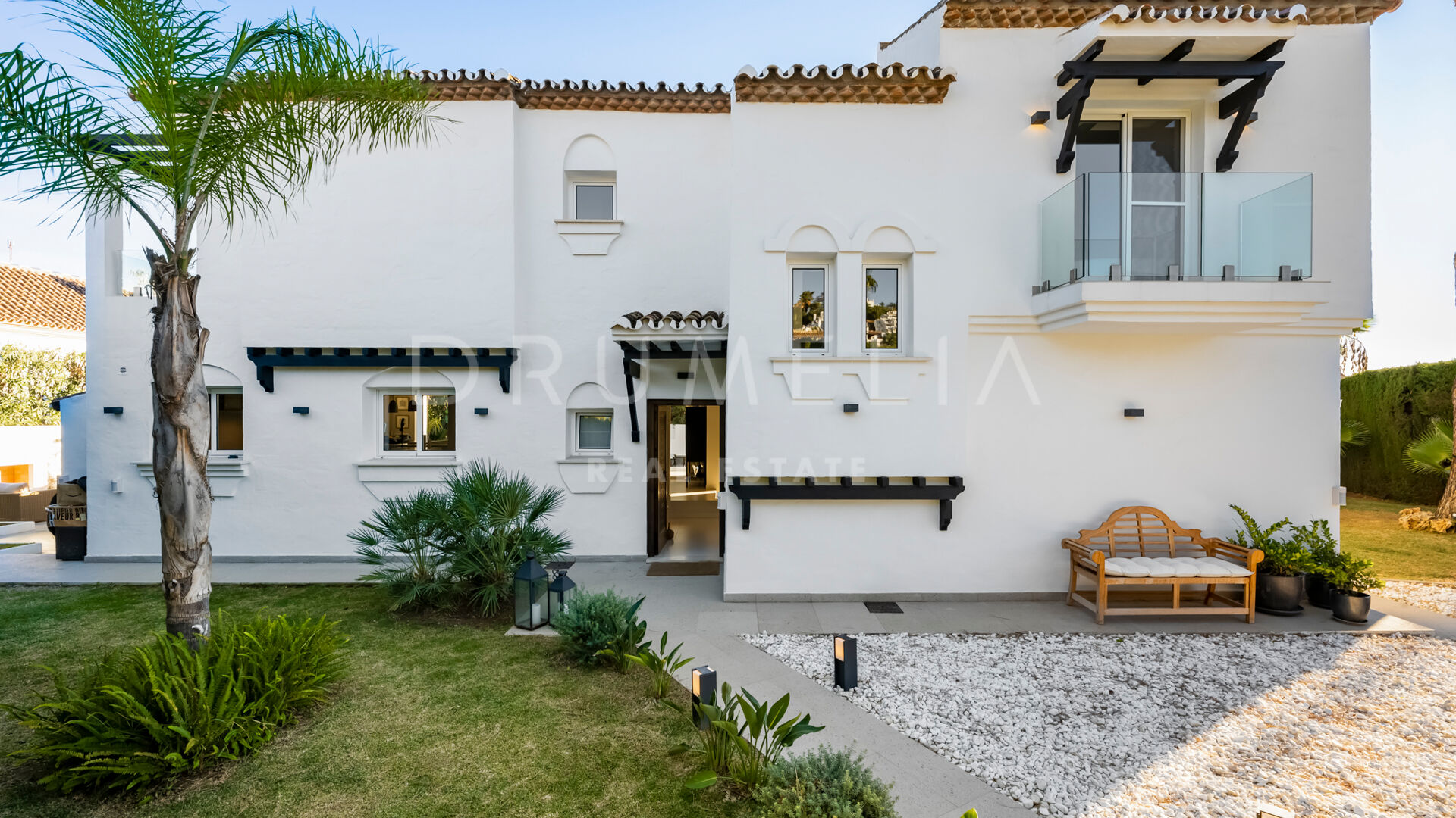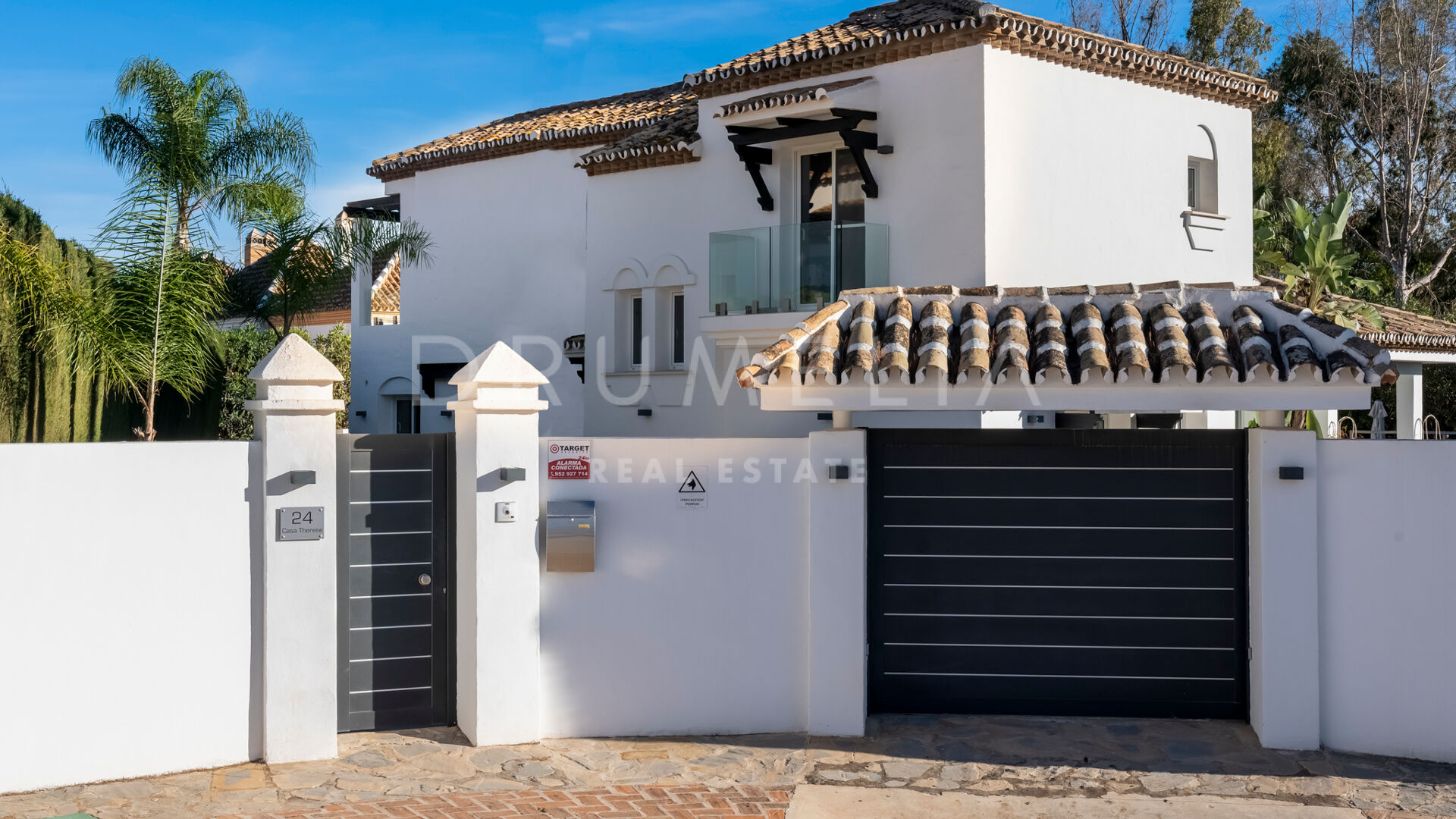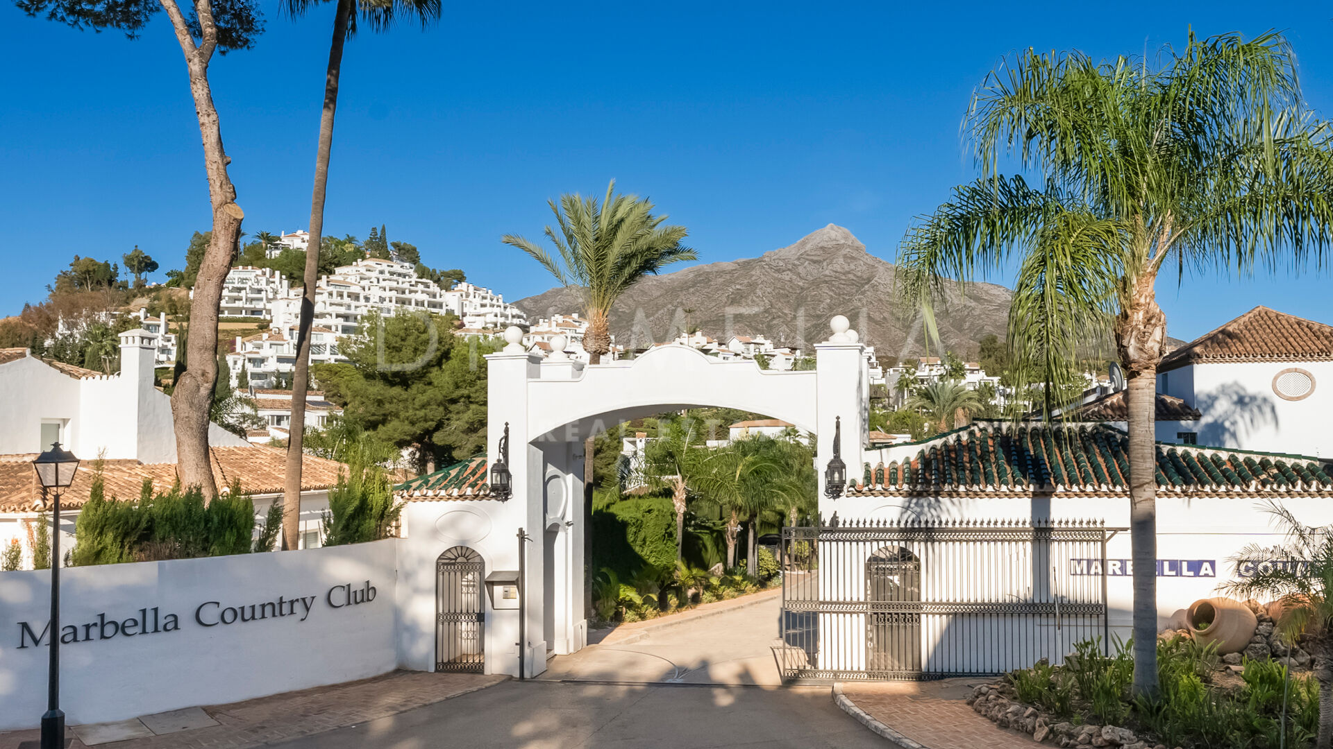 Dieses charmante, schlüsselfertige Haus im andalusischen Stil befindet sich in idealer Lage in Nueva Andalucia in einer ruhigen, bewachten und gesicherten Urbanisation des Marbella Country Club, einer gepflegten Anlage mit großartigen Nachbarn und elegant aussehenden Straßen. Sie liegt ca. 4 km vom legendären Puerto Banus, 5 km von den berühmten Luxushotels Puente Romano und Marbella Club an der Goldenen Meile, 10 km vom Zentrum Marbellas und 1,5 km vom Las Brisas Golf Club entfernt.