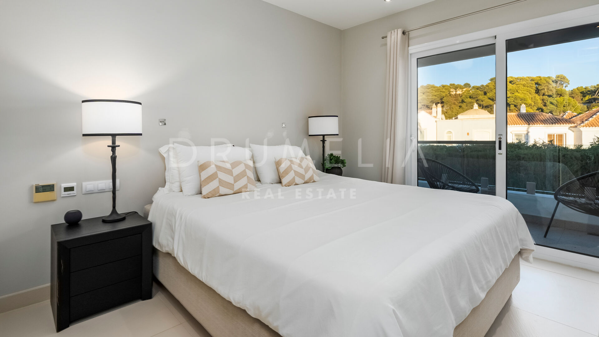 Was ist Nueva Andalucía?Nueva Andalucía ist ein Bezirk, der zur westlichen Gemeinde von Marbella gehört. Mit einer Fläche von mehreren Quadratkilometern ist er der größte Stadtteil von Marbella und hat fast den Stellenwert einer Kleinstadt. Er liegt in einem kleinen Tal, das inzwischen unter dem Namen The Golf Valley bekannt ist. Nueva Andalucía gilt allgemein als eine der beliebtesten Wohngegenden in Marbella; da die Bebauungsdichte gering ist, kann man die natürlichen Freiflächen Marbellas optimal nutzen. Es verfügt über breite Straßen und alle Einrichtungen und Annehmlichkeiten einer Stadt, jedoch ohne die große Hektik, den Verkehr und den Lärm. Dieses gut durchdachte Viertel bietet eine ruhigere, familienfreundliche Seite des Lebens an der Costa del Sol, obwohl es nur wenige Gehminuten von Puerto Banús entfernt ist und über lebendige Viertel wie das Centro Plaza und das neue Marbella Arena-Auditorium verfügt. Im Jahr 2023 leben in Nueva Andalucía etwa 21.530 Einwohner.