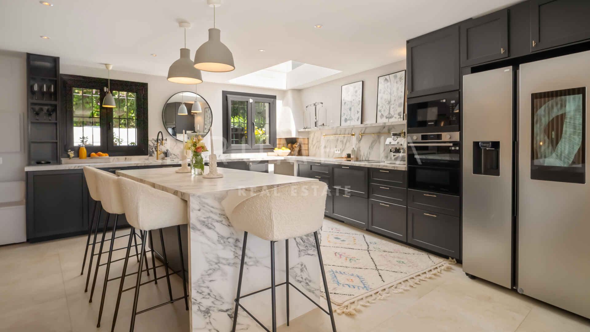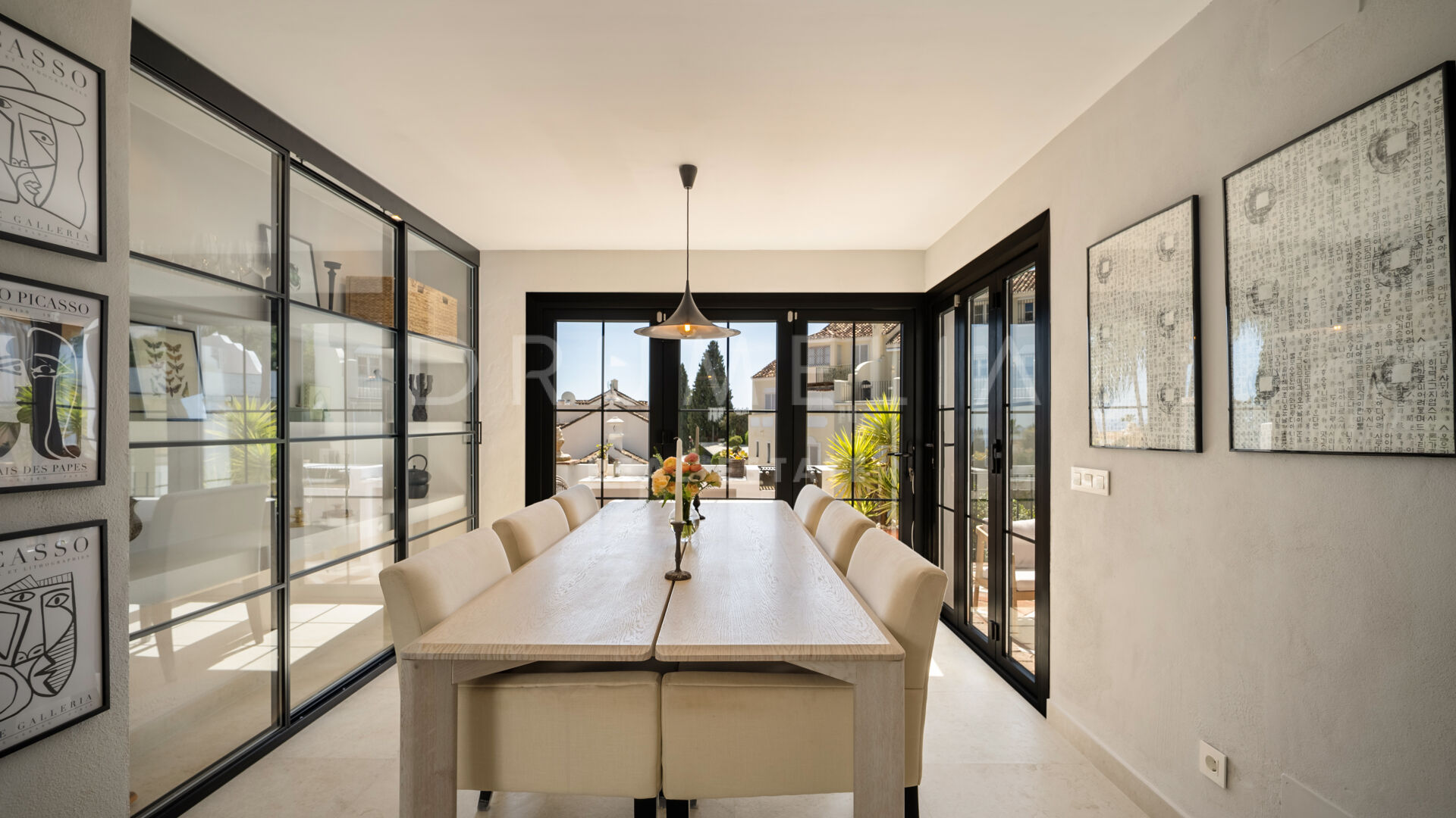 Eingebettet in die exklusive Goldene Meile von Marbella, repräsentiert dieses andalusische Stadthaus die perfekte Verbindung von Tradition und Moderne. Vollständig renoviert, bewahrt die Immobilie den Charme der typischen andalusischen Architektur und verbindet ihn mit einem zeitgenössischen, von nordischer Inspiration geprägten Innendesign, das eine gemütliche, elegante und funktionale Atmosphäre schafft und das Haus zu einem einzigartigen Zuhause macht.