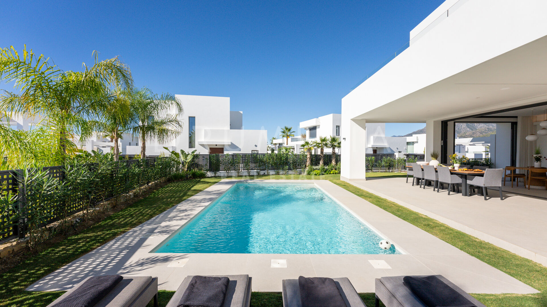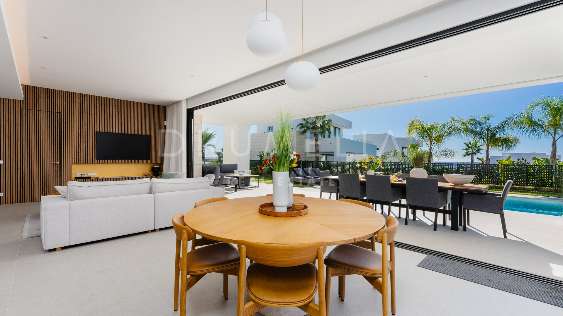 Entdecken Sie eine bemerkenswerte Villa, eingebettet in eine der exklusivsten Gegenden von Marbella, die das Konzept des komfortablen Lebens neu definiert. Mit ihrer zeitgenössischen Architektur und durchdachten Gestaltung bietet diese Residenz ein außergewöhnliches Lebensstil-Erlebnis.