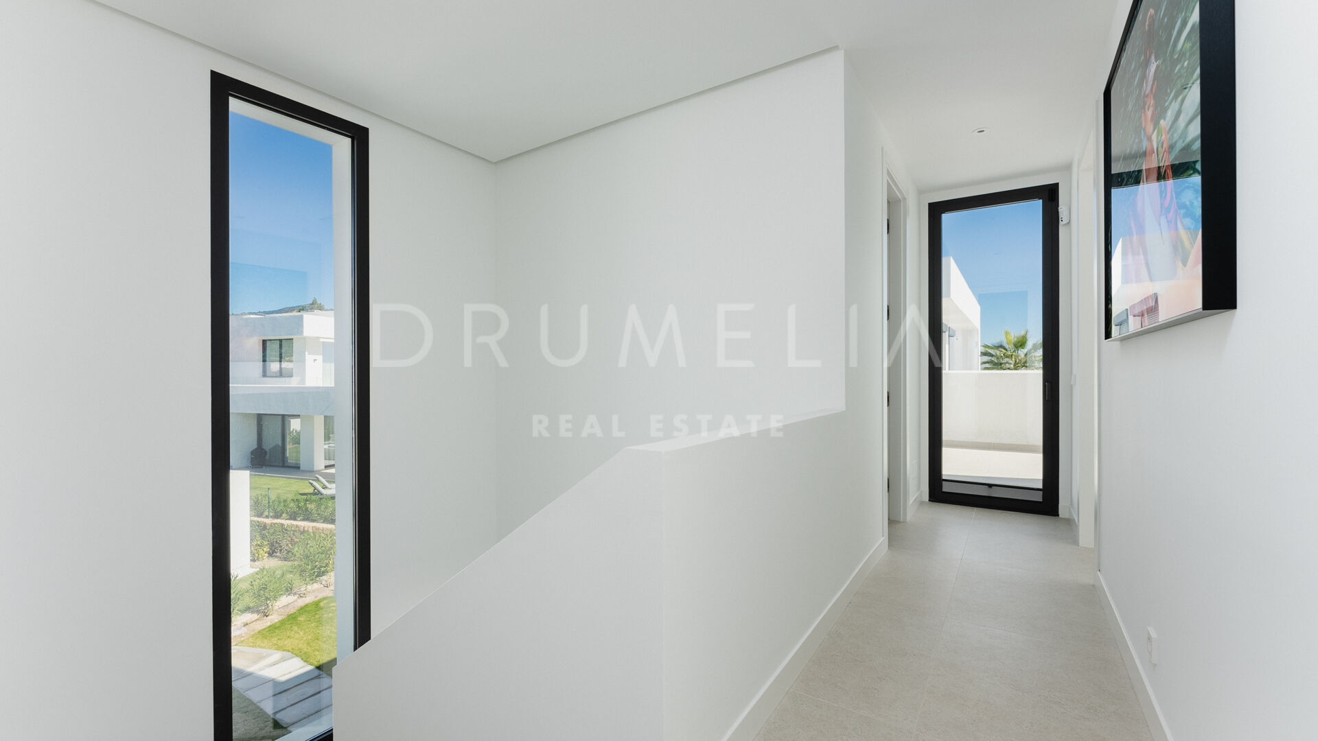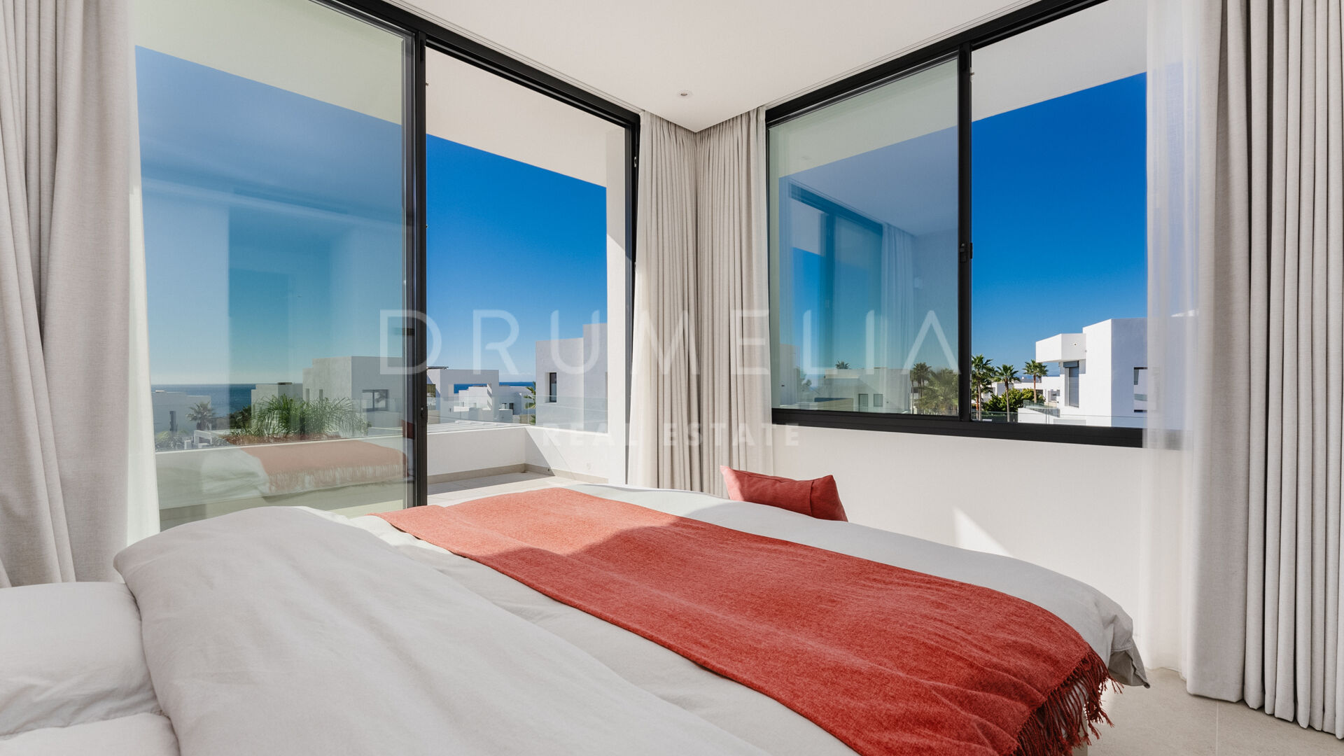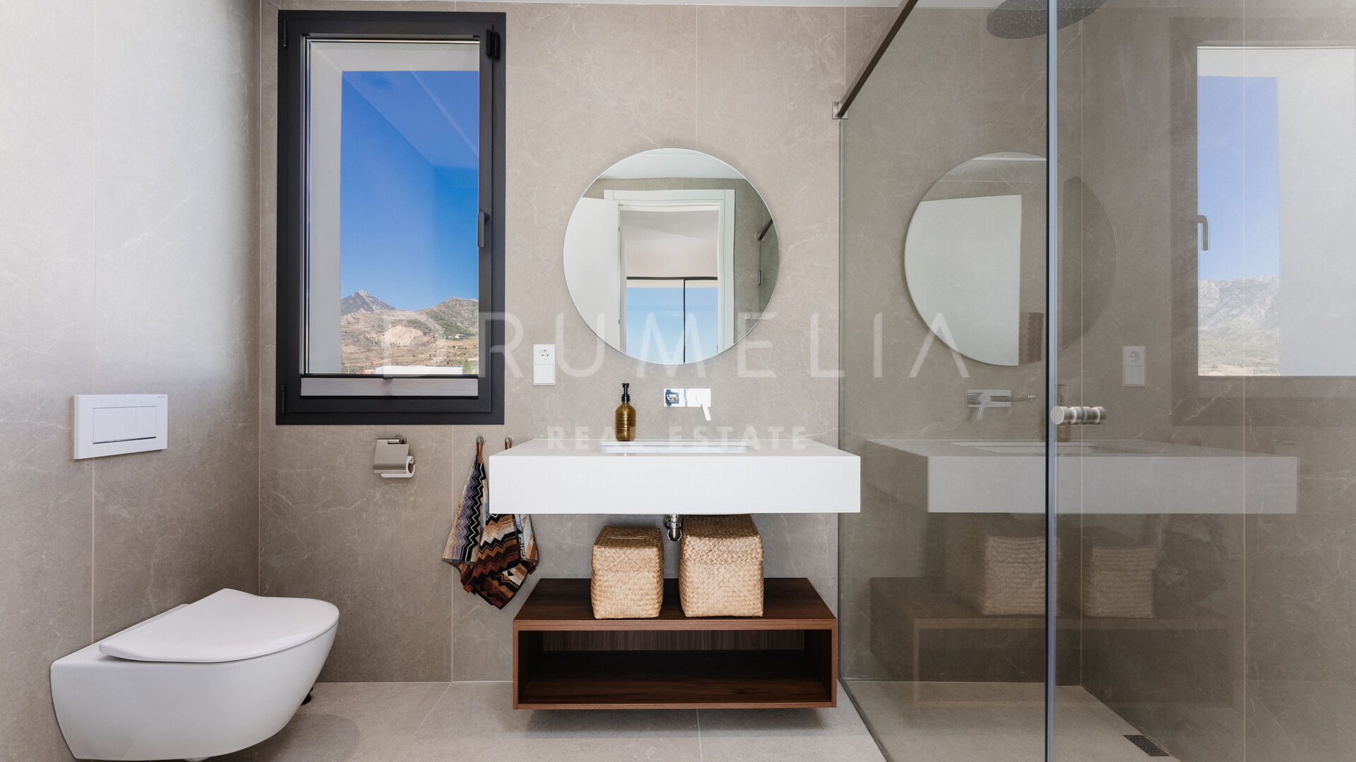Diese außergewöhnliche Villa verfügt über vier großzügige Schlafzimmer, die jeweils mit maßgeschneiderten Schränken ausgestattet sind. Die Hauptsuite im Erdgeschoss dient als ruhige Oase mit einem privaten Bad en-suite. Im oberen Stockwerk befindet sich ein weiteres Hauptschlafzimmer mit Bad en-suite sowie zwei zusätzliche Schlafzimmer, die sich ein stilvolles Familienbad teilen. Alle oberen Schlafzimmer öffnen sich zu einer weitläufigen Terrasse, die spektakuläre Panoramablicke bietet und den perfekten Rahmen für Entspannung unter dem offenen Himmel schafft.