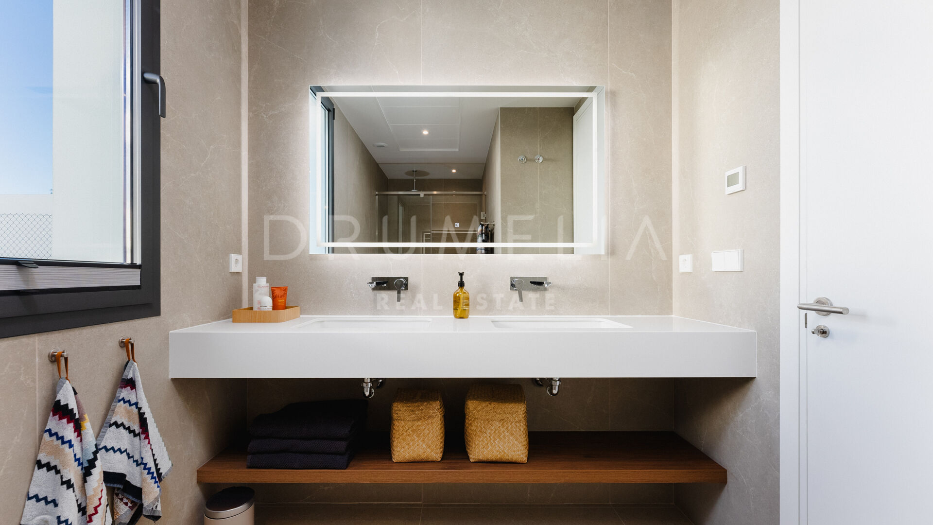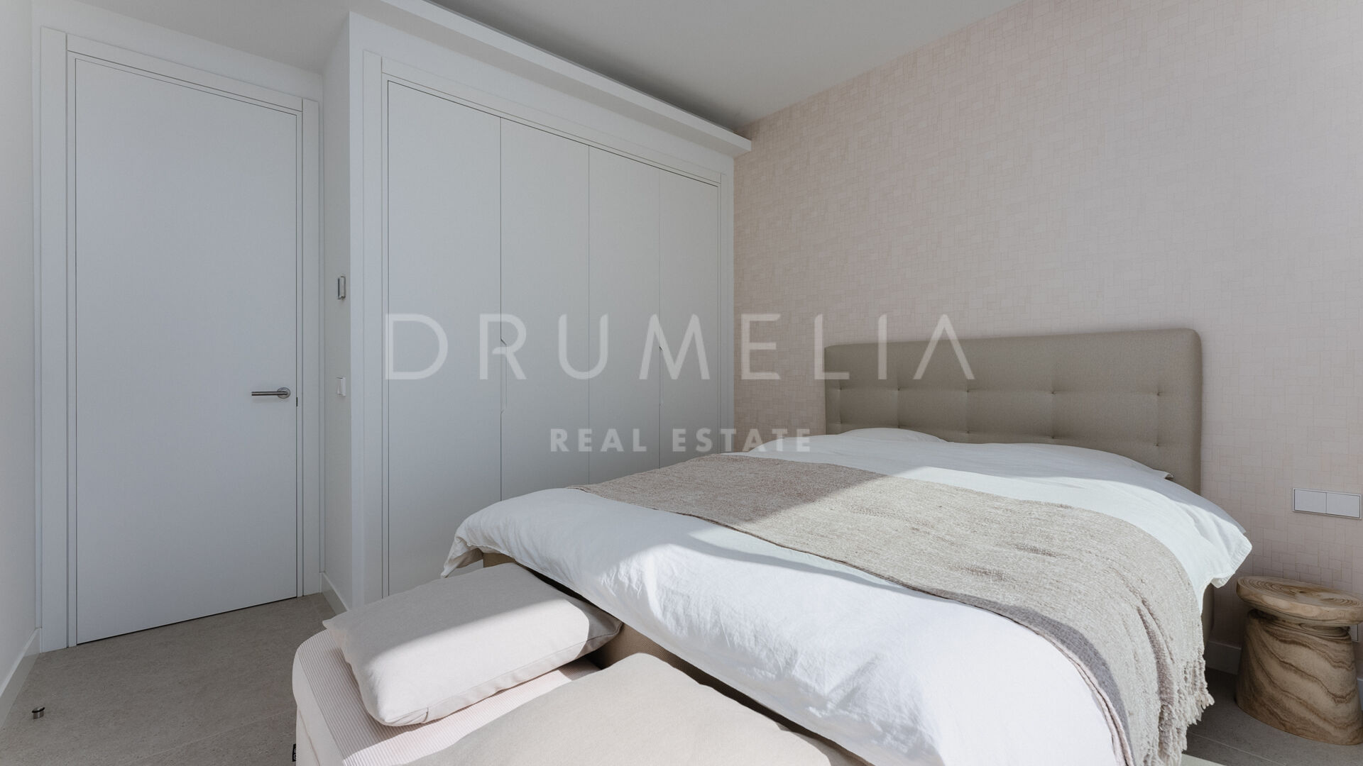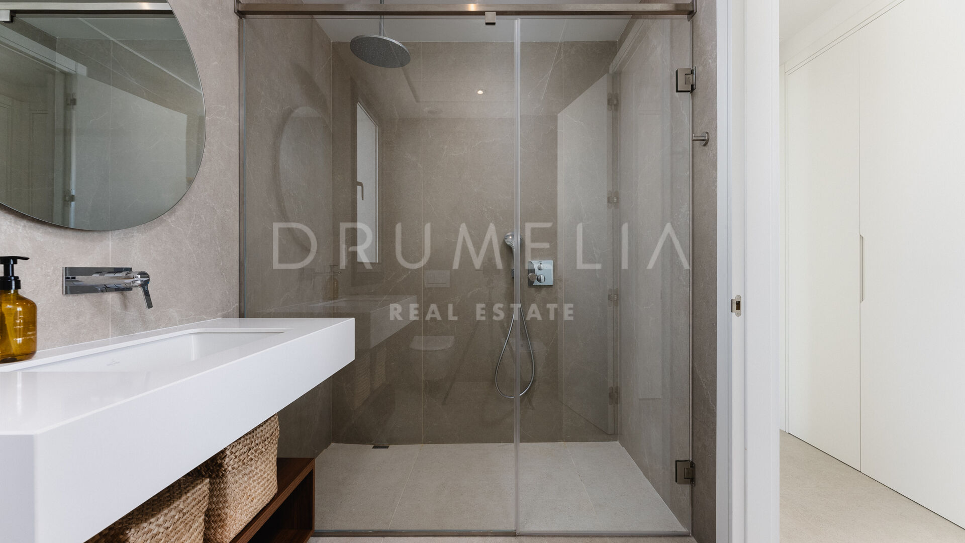 Diese außergewöhnliche Villa verfügt über vier großzügige Schlafzimmer, die jeweils mit maßgeschneiderten Schränken ausgestattet sind. Die Hauptsuite im Erdgeschoss dient als ruhige Oase mit einem privaten Bad en-suite. Im oberen Stockwerk befindet sich ein weiteres Hauptschlafzimmer mit Bad en-suite sowie zwei zusätzliche Schlafzimmer, die sich ein stilvolles Familienbad teilen. Alle oberen Schlafzimmer öffnen sich zu einer weitläufigen Terrasse, die spektakuläre Panoramablicke bietet und den perfekten Rahmen für Entspannung unter dem offenen Himmel schafft.