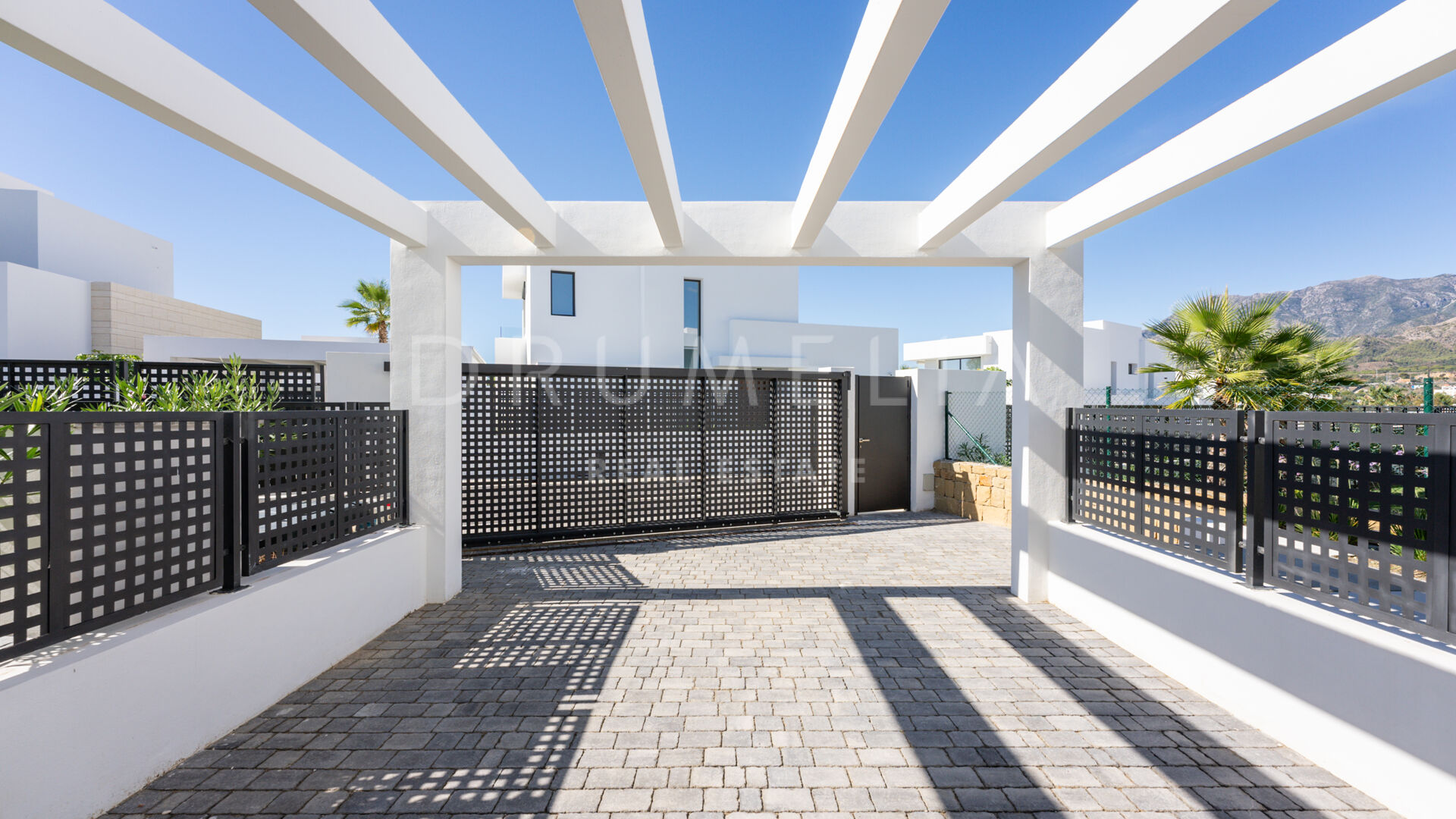 Zur Gewährleistung Ihrer Sicherheit ist die Immobilie mit einem umfassenden dreifachen Alarmsystem ausgestattet, das vier Videokameras, einen Perimeterschutz und Bewegungsmelder im Garten umfasst. Ein gated Eingang sorgt für Privatsphäre und Sicherheit, zusätzlich gibt es einen Sicherheitsdienst, der abends patrouilliert.
