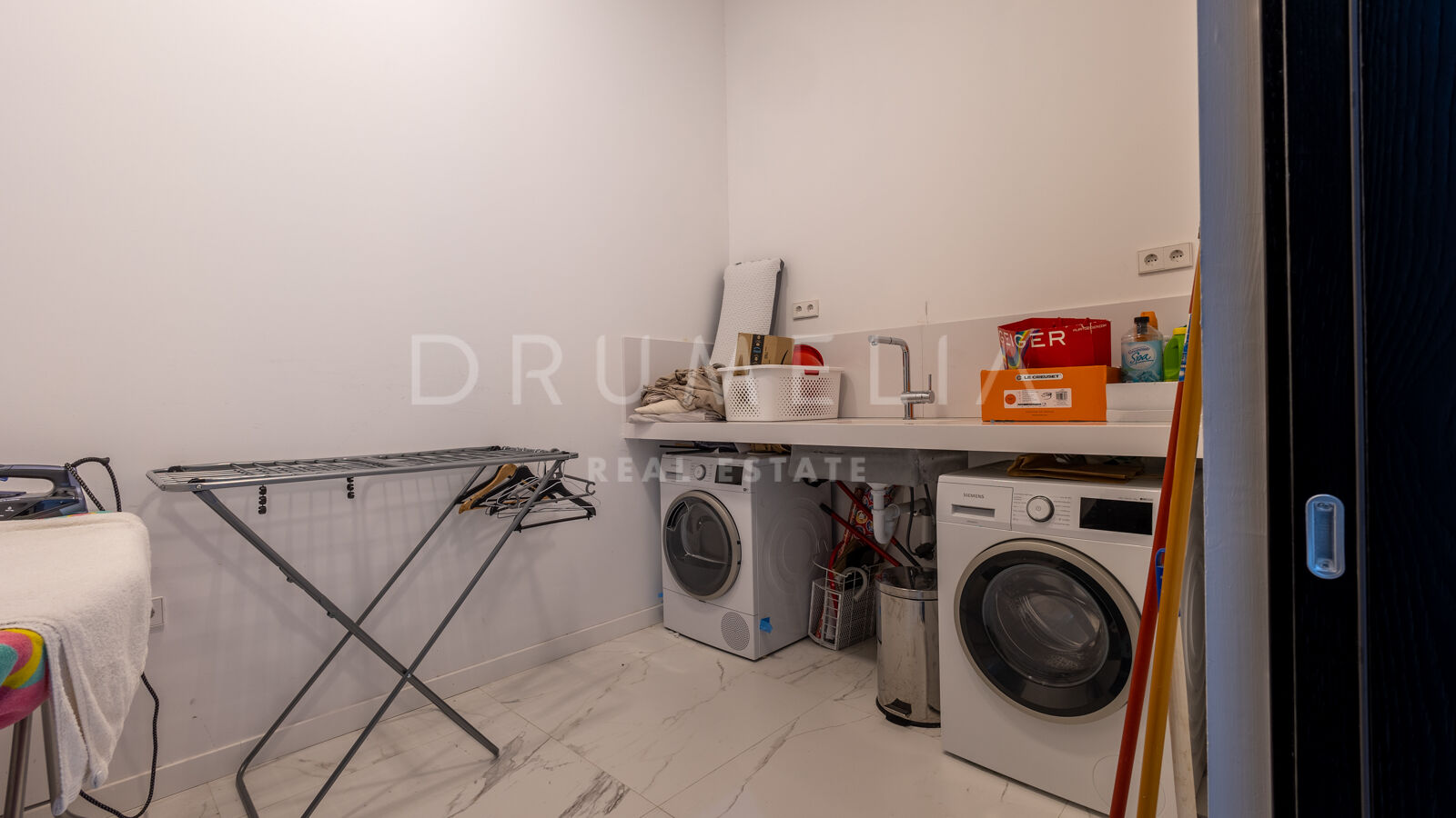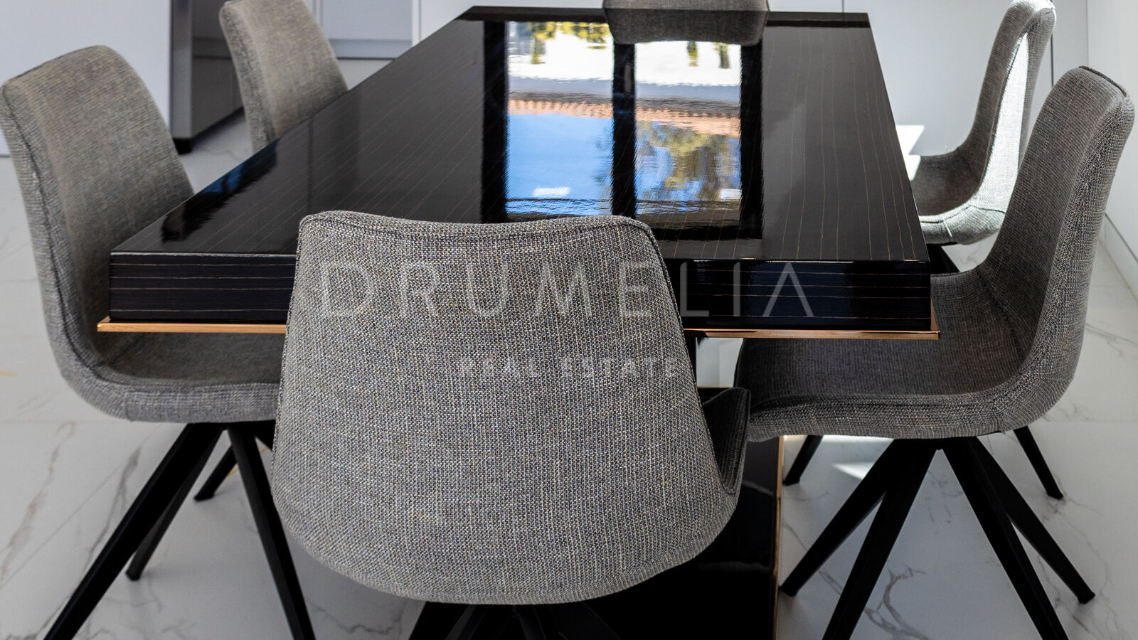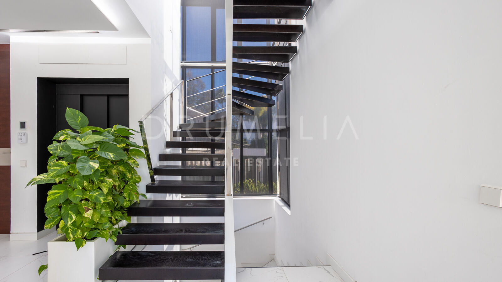 Die Villa ist makellos und nach höchsten Standards eingerichtet und bietet alles, was Sie für einen luxuriösen Aufenthalt benötigen, darunter hochwertige Bettwäsche, Küchenutensilien, Haartrockner, mehrere Fernseher und einen großen Kinoraum. Ein praktischer Aufzug verbindet alle Stockwerke, vom Untergeschoss mit Zugang zu einer privaten Garage für 2-3 Autos über das erste und zweite Obergeschoss bis hin zur Dachterrasse, auf der Sie sich im Whirlpool entspannen oder den Grillbereich genießen können.