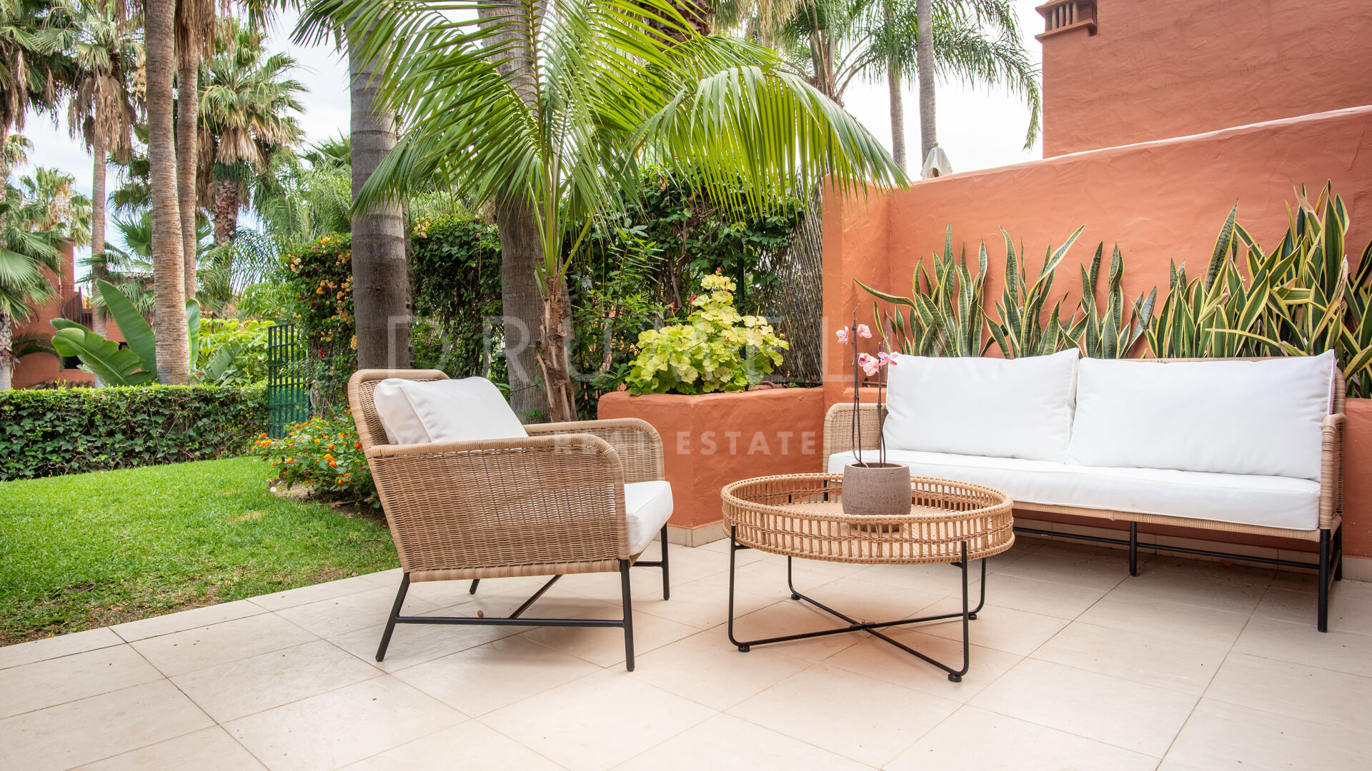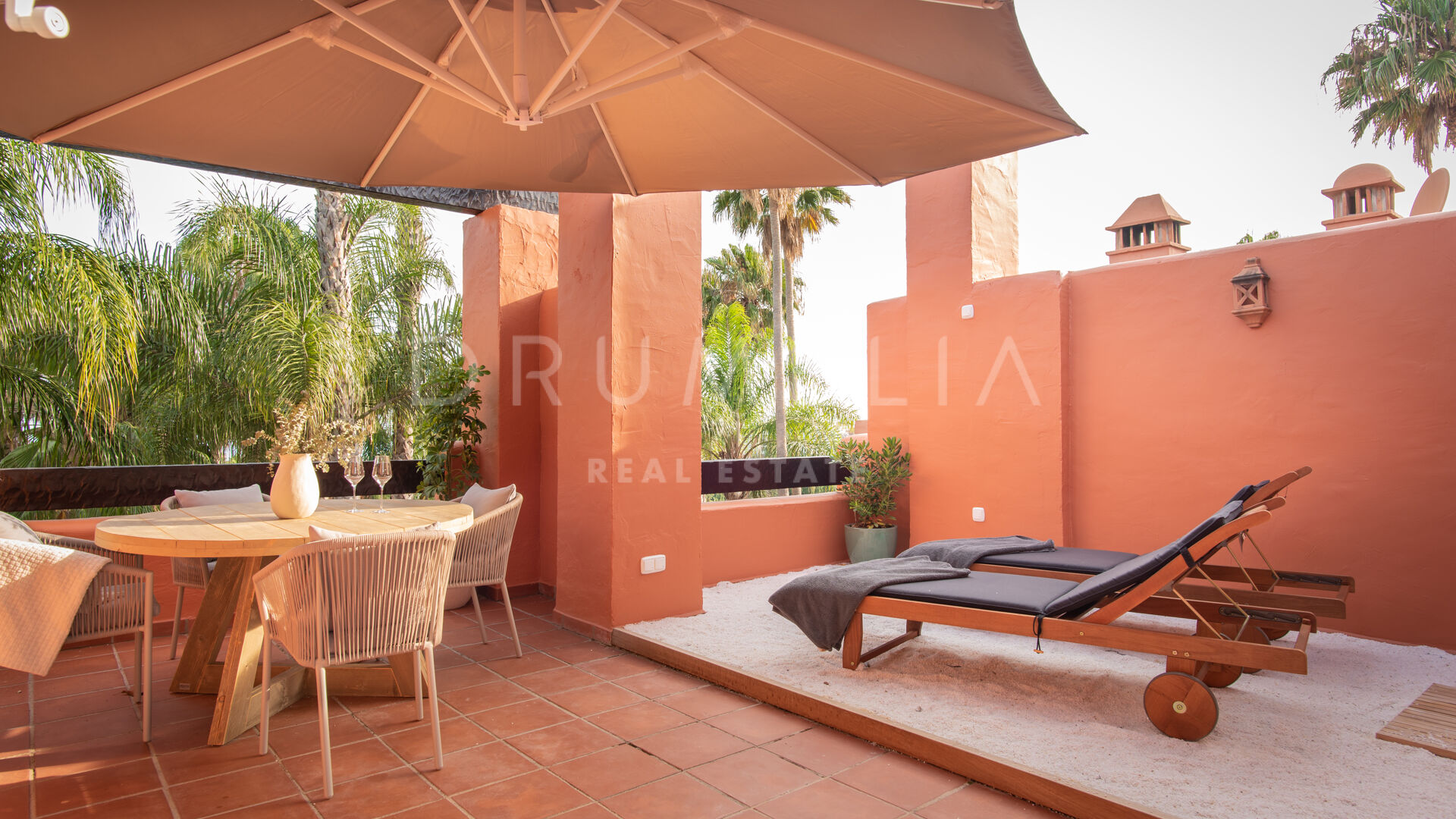 Dieses Stadthaus ist ein friedlicher Rückzugsort für seine Bewohner. Die idyllische Umgebung ist der perfekte Ort, um sich zu entspannen, die Sonne zu genießen und bei einem Glas Wein oder einem guten Buch die atemberaubende Aussicht zu bewundern. Ein besonderes Merkmal ist der große Außenbereich. Der geräumige Garten ist ideal, um im Freien zu speisen, Familienfeiern zu veranstalten oder einfach nur in der schönen Umgebung zu entspannen. Für diejenigen, die etwas höher hinaus wollen, bietet das Solarium auf dem Dach eine atemberaubende Aussicht (am besten ist die Ausrichtung nach Süden!). Die attraktive Immobilie ist bereit zum Einzug. Sie befindet sich in einem ausgezeichneten Zustand, ist geschmackvoll eingerichtet und gestylt (brandneue Möbel von Eichholtz sind im Preis inbegriffen) und verfügt über eine moderne Ausstattung mit hochwertigen Materialien und Oberflächen. Es verfügt über einen Kamin, Klimaanlage, Einbauschränke, Doppelverglasung, Internet – Wi-Fi, etc. Verpasse nicht die Gelegenheit, dieses außergewöhnliche Stadthaus in Altos de Puente Romano an der Goldenen Meile zu besitzen. Genieße die Annehmlichkeiten, die der Strand und die Weltklasse-Annehmlichkeiten vor deiner Tür bieten, und ziehe dich trotzdem in die Ruhe deiner privaten Oase zurück.