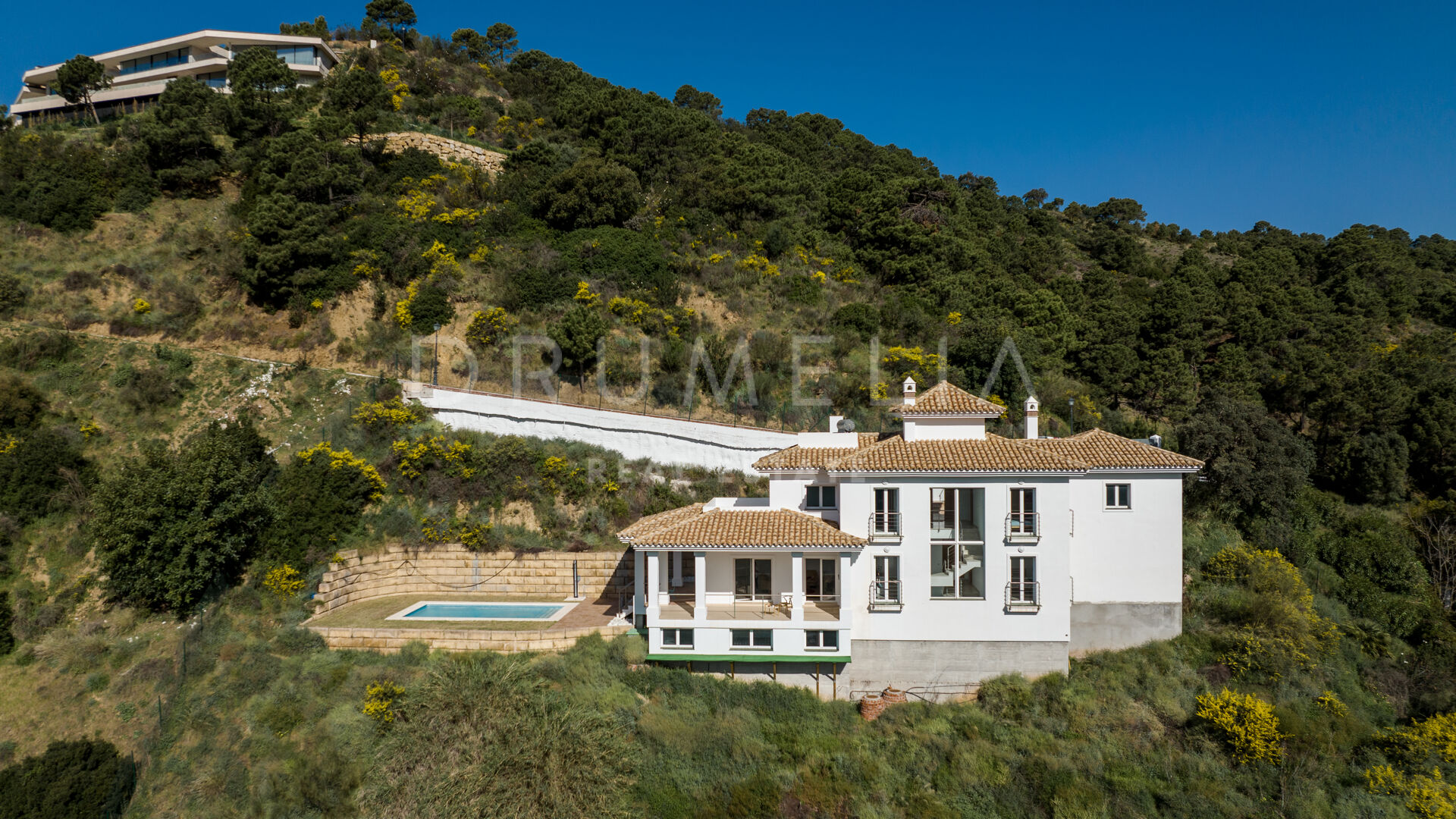 Die luxuriöse Immobilie wird in einem guten Zustand zum Verkauf angeboten und verfügt über eine private Garage, einen Hauswirtschaftsraum, ein Büro und viele weitere Annehmlichkeiten, die Ihnen das Leben angenehm machen werden. Es verfügt über eine hochwertige Ausstattung und Geräte, Klimaanlage, Einbauschränke, Doppelverglasung, etc. Dieses attraktive Haus mit spektakulärem Blick auf das Mittelmeer, Gibraltar und die afrikanische Küste ist ein idyllischer Rückzugsort, umgeben von der unberührten Natur des exklusiven Monte Mayor. Eine großartige Wahl, egal ob Sie nach einem ständigen Wohnsitz, einem Ferienhaus oder einer Investition suchen. Es kann ein ideales Projekt sein mit dem Potenzial, die untere Etage zu renovieren oder einfach nur ein paar letzte Handgriffe hinzuzufügen.