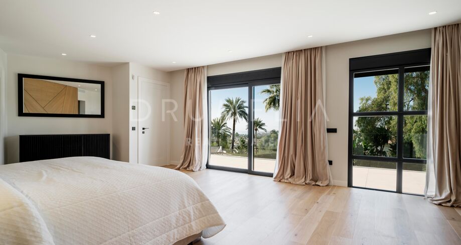 Diese Villa befindet sich in der exklusiven Gegend Nagüeles an der Goldenen Meile von Marbella und verbindet modernes Design mit Komfort in einer ruhigen Umgebung. Mit ihrem eleganten und dennoch funktionalen Stil ist sie das ideale Zuhause für alle, die Privatsphäre suchen und gleichzeitig in der Nähe der besten Angebote Marbellas sein möchten.