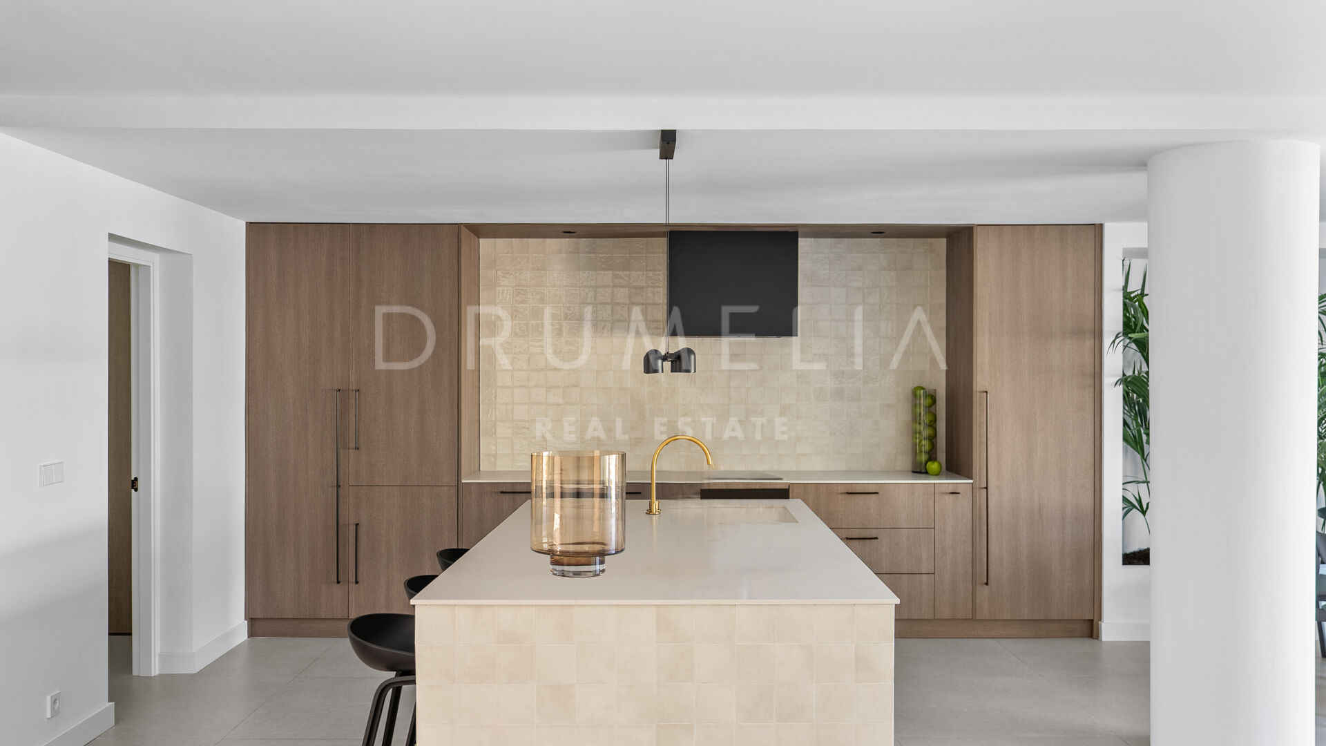 Dieses wunderschöne Stadthaus vereint mediterranen Charme mit modernem Design – perfekt geeignet für das ganze Jahr oder als Ferienresidenz. Die Innenräume sind in warmen Erdtönen mit geräuchertem Eichenholz, mattschwarzen Details, goldenen Akzenten und handgefertigten Fliesen gestaltet und schaffen ein elegantes, einladendes Ambiente. Große Fenster und offene Räume lassen viel Tageslicht herein und sorgen für ein Gefühl von Weite.