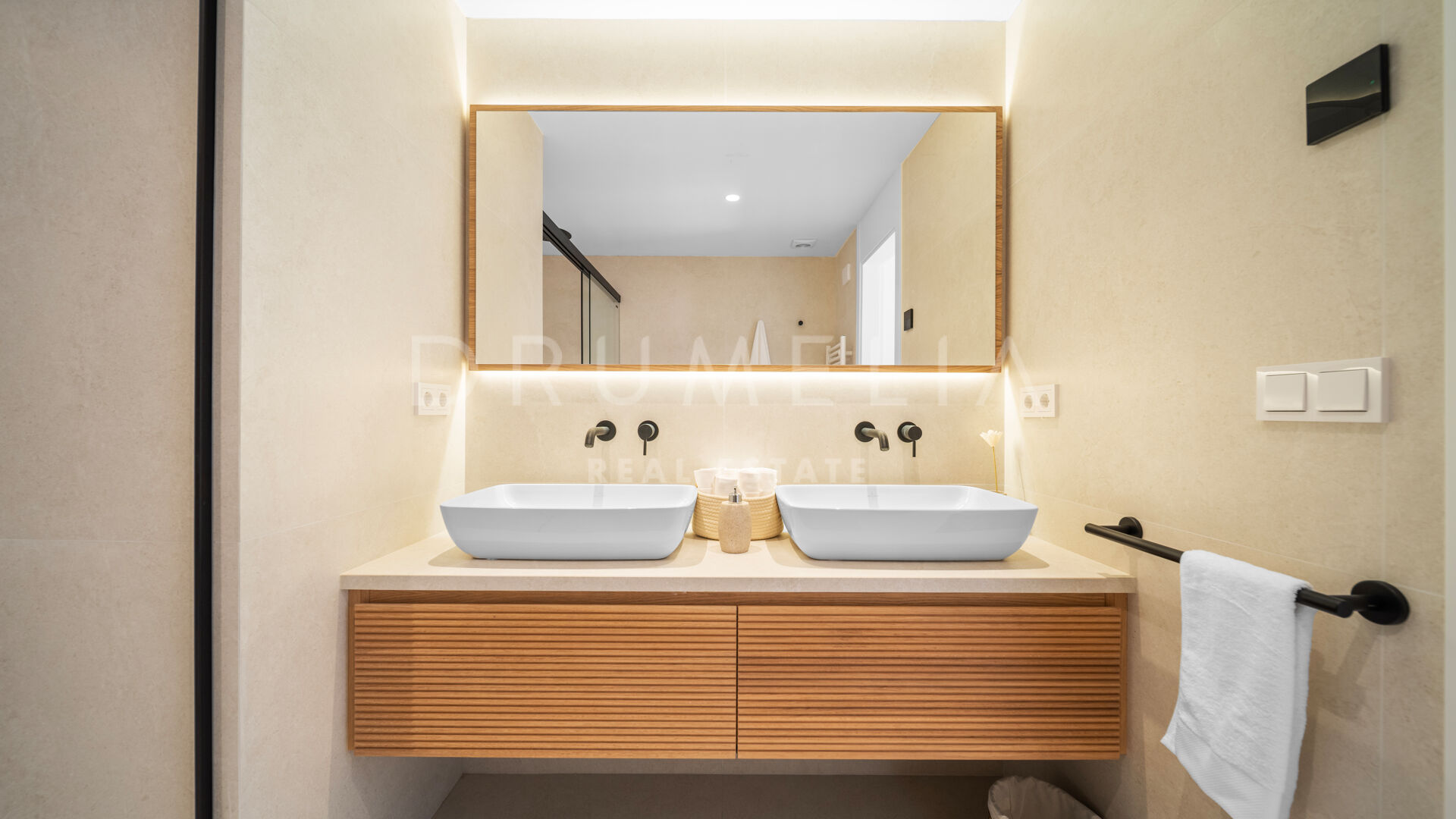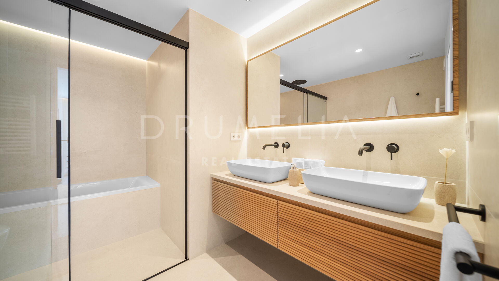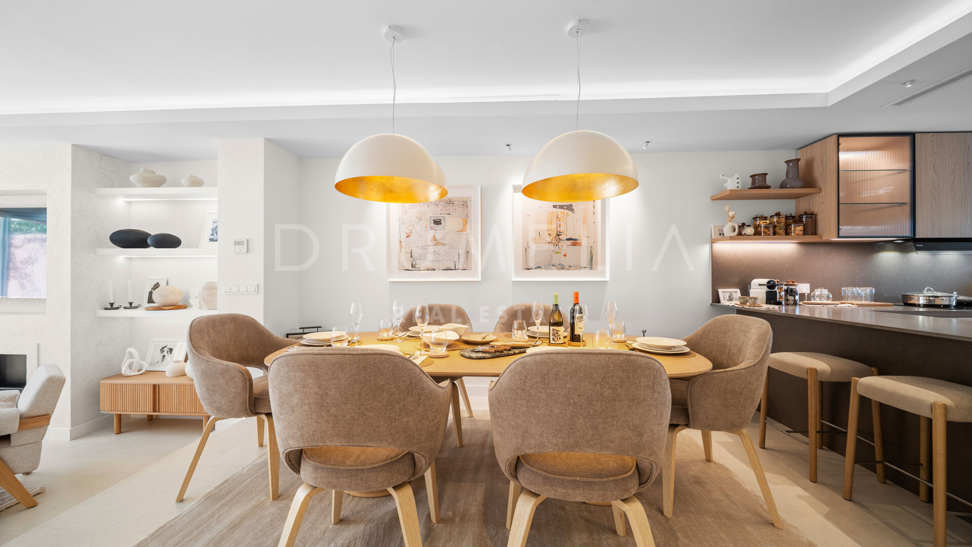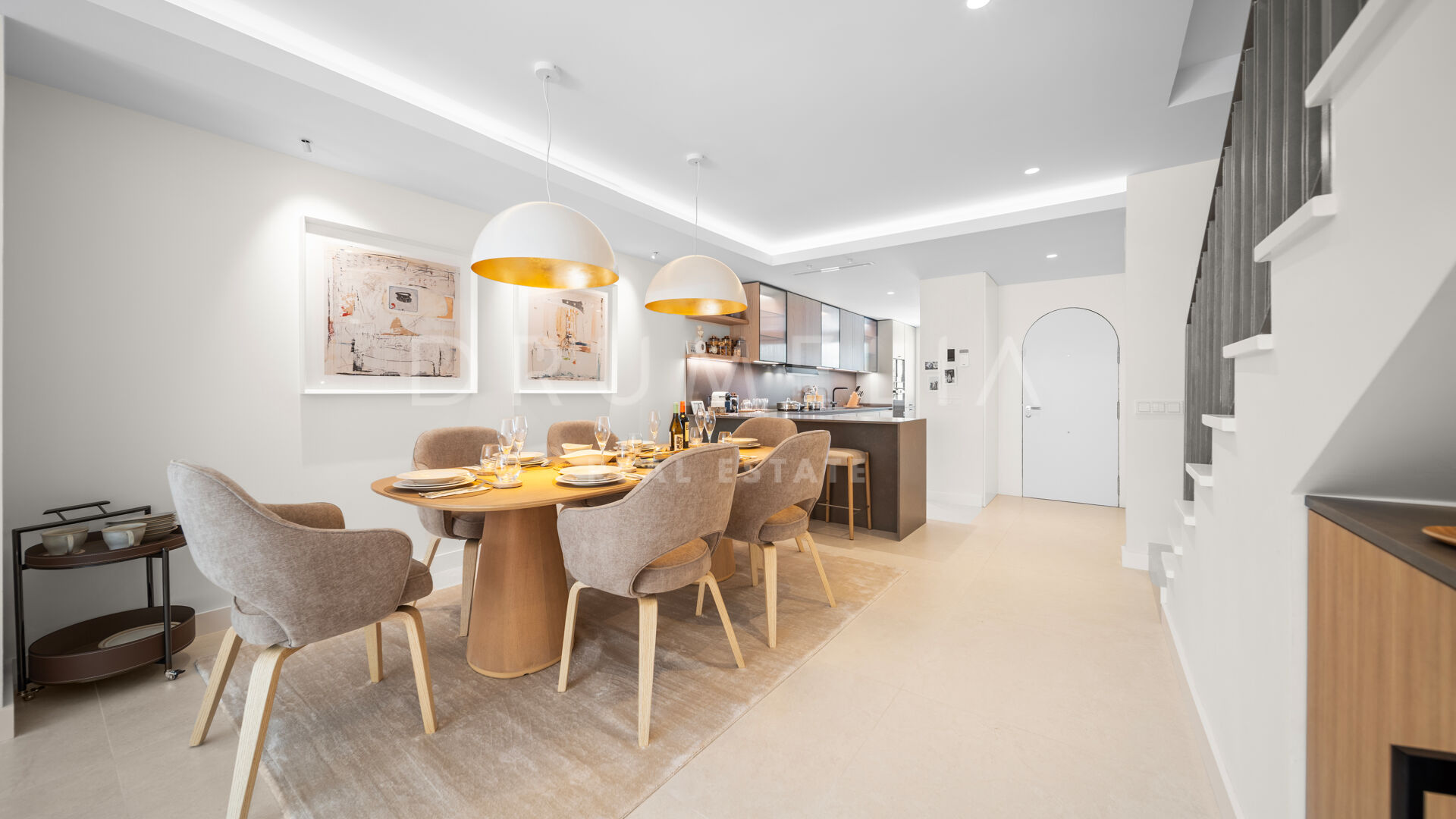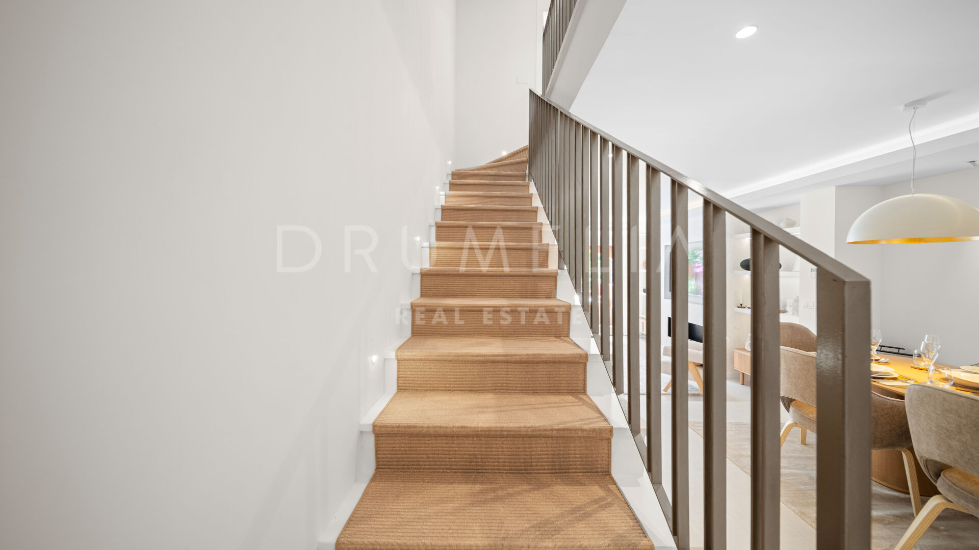 Dieses elegante, komplett renovierte Stadthaus, bezugsfertig und in der renommierten Wohnanlage El Palmeral in Nueva Andalucía, Marbella, gelegen, wurde in modernem Stil mit hochwertigen Materialien gestaltet. Es vereint Eleganz, Komfort und moderne Technologie. Jedes Detail wurde sorgfältig geplant, um ein anspruchsvolles Wohnerlebnis an der Costa del Sol zu bieten.