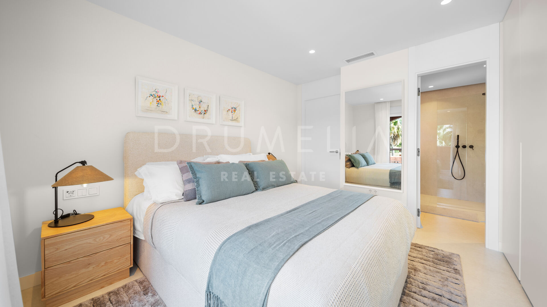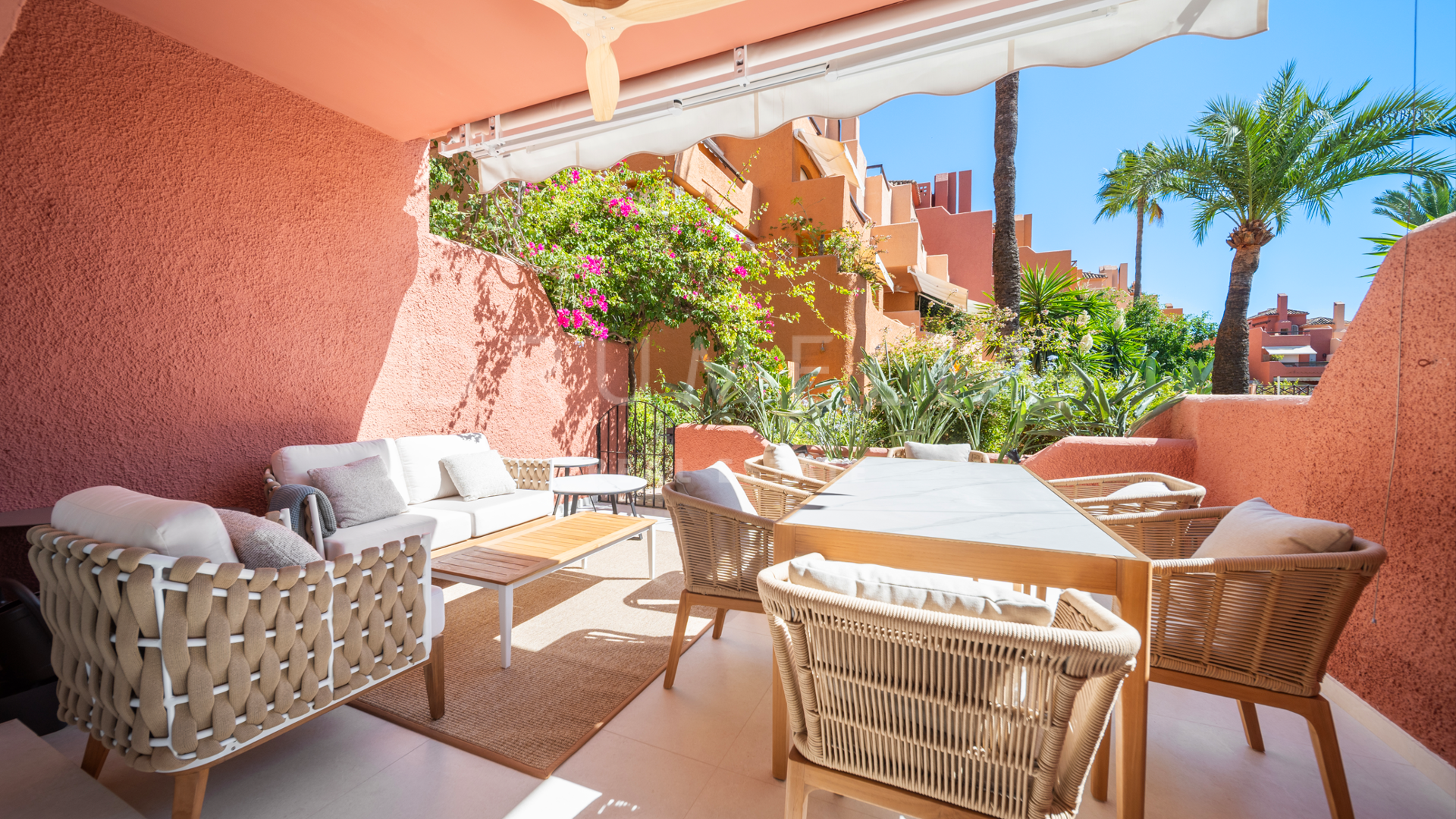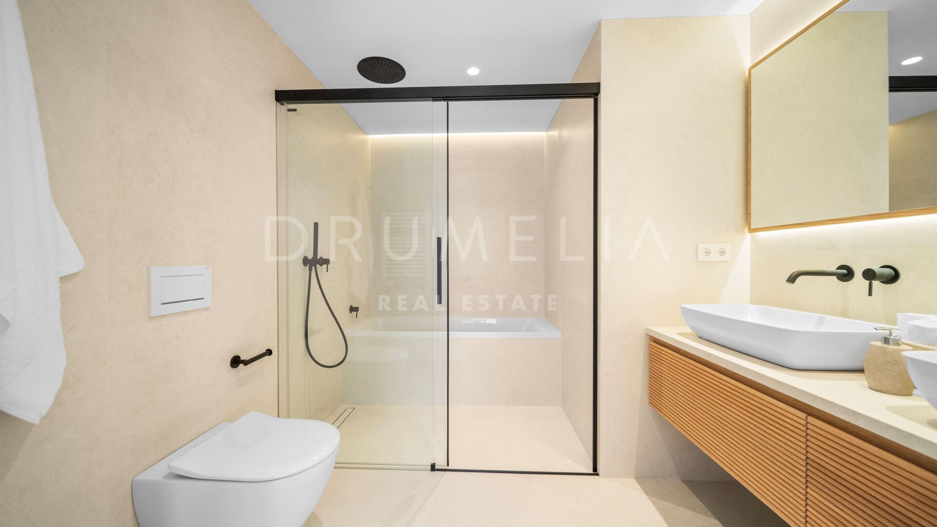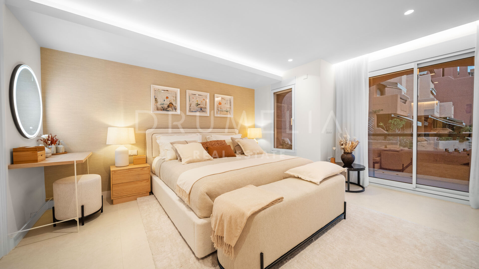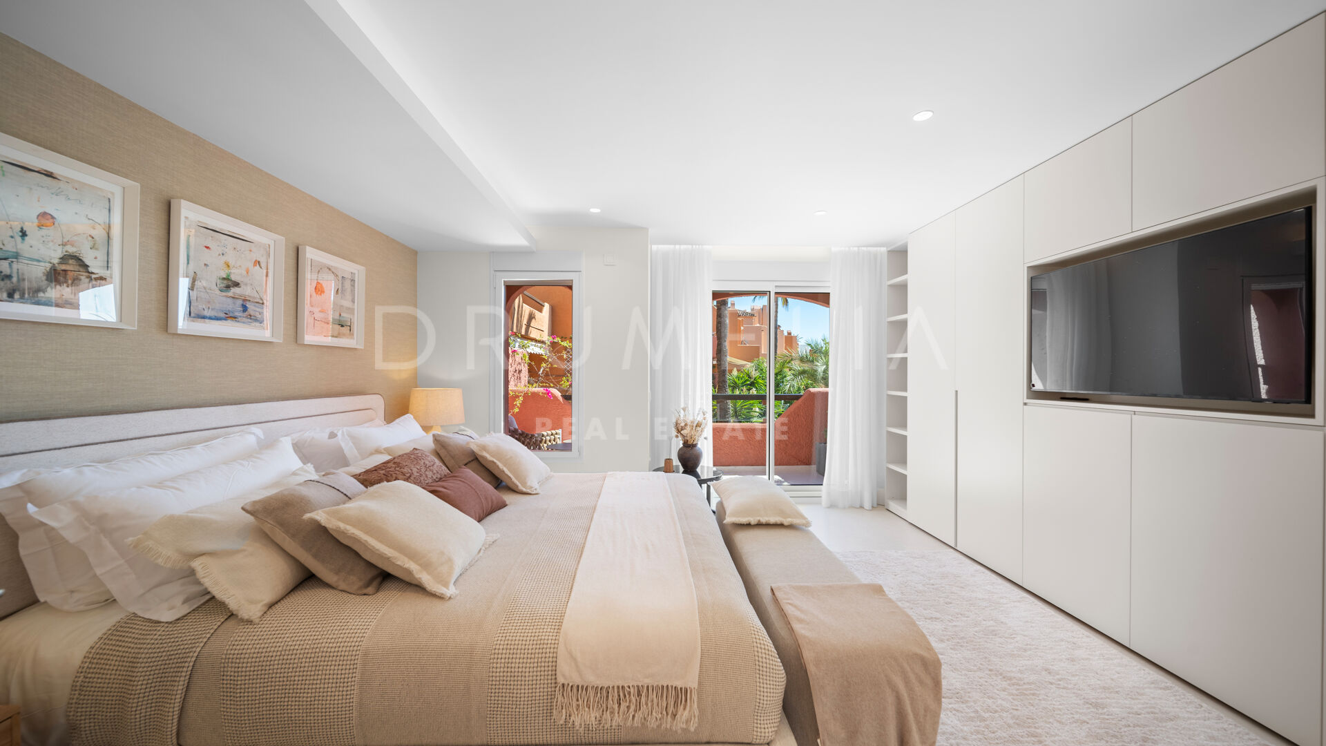 Dieses elegante, komplett renovierte Stadthaus, bezugsfertig und in der renommierten Wohnanlage El Palmeral in Nueva Andalucía, Marbella, gelegen, wurde in modernem Stil mit hochwertigen Materialien gestaltet. Es vereint Eleganz, Komfort und moderne Technologie. Jedes Detail wurde sorgfältig geplant, um ein anspruchsvolles Wohnerlebnis an der Costa del Sol zu bieten.