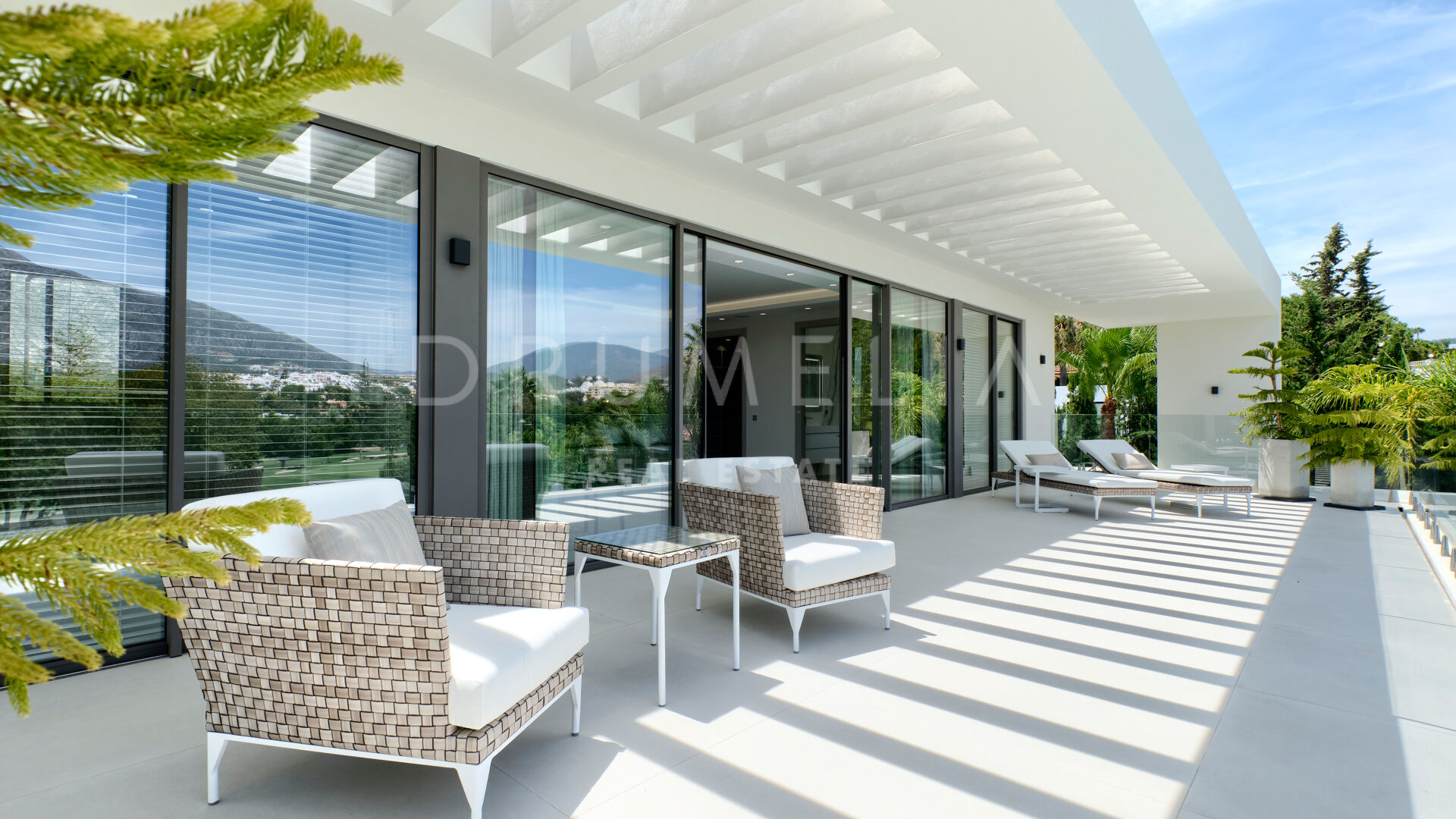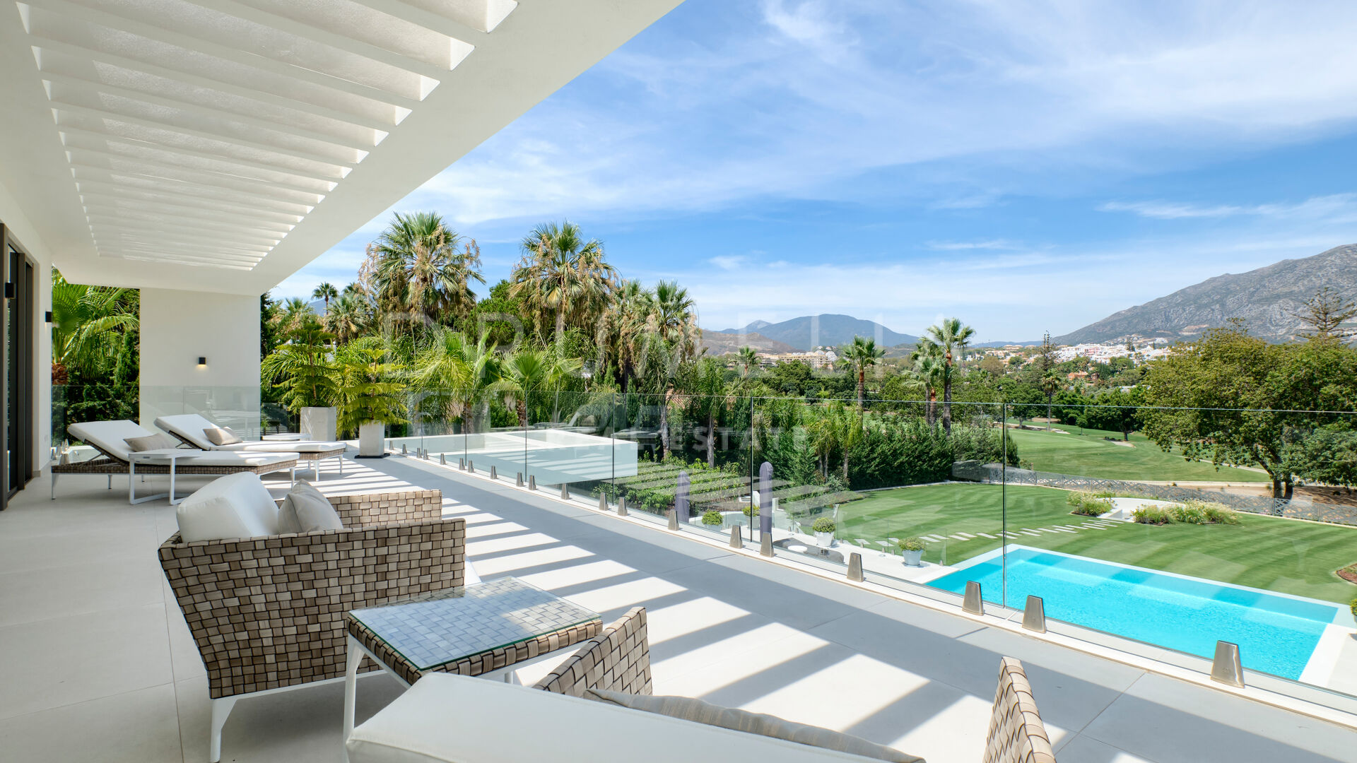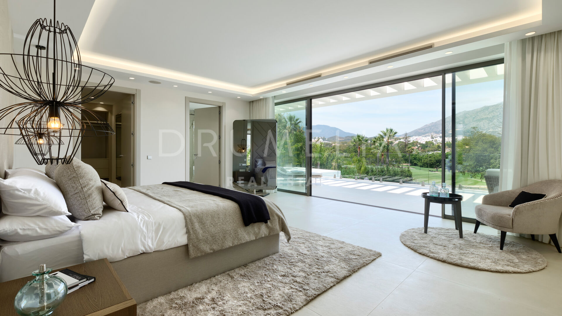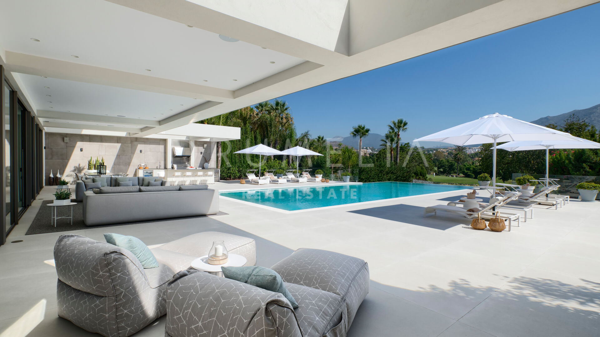 Diese absolut faszinierende, hochmoderne und spektakuläre Immobilie wird dein perfektes mediterranes Zuhause sein, wenn dein Lebensstil modernen Chic, Komfort, Sicherheit, Genuss und ein paar Extras beinhaltet. Du wirst es nicht bereuen! Die superexklusive moderne Villa von 1.197 m² mit großzügigem 2.580 m² großen Grundstück und malerischem Golf- und Bergblick hat alle möglichen und atemberaubenden Vorteile. Sie ist nicht nur eine wunderschöne mediterrane, moderne Villa, die als modernes Zuhause funktioniert. Es ist ein Statement und ein stressfreier, superbequemer Lebensstil, der vom Fortschritt und der besonderen Lage bestimmt wird.