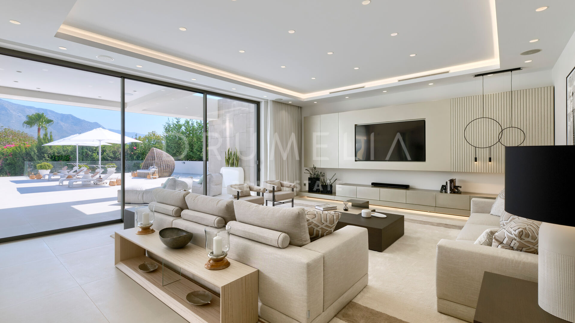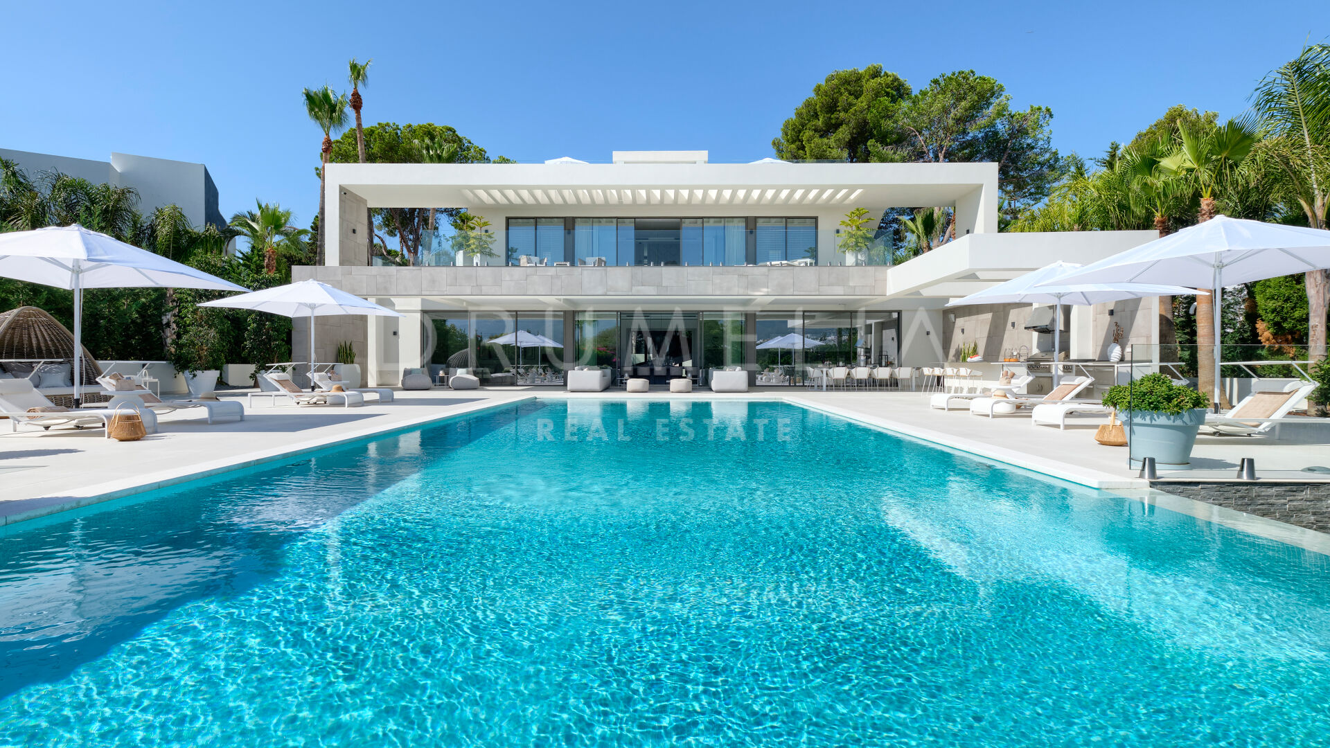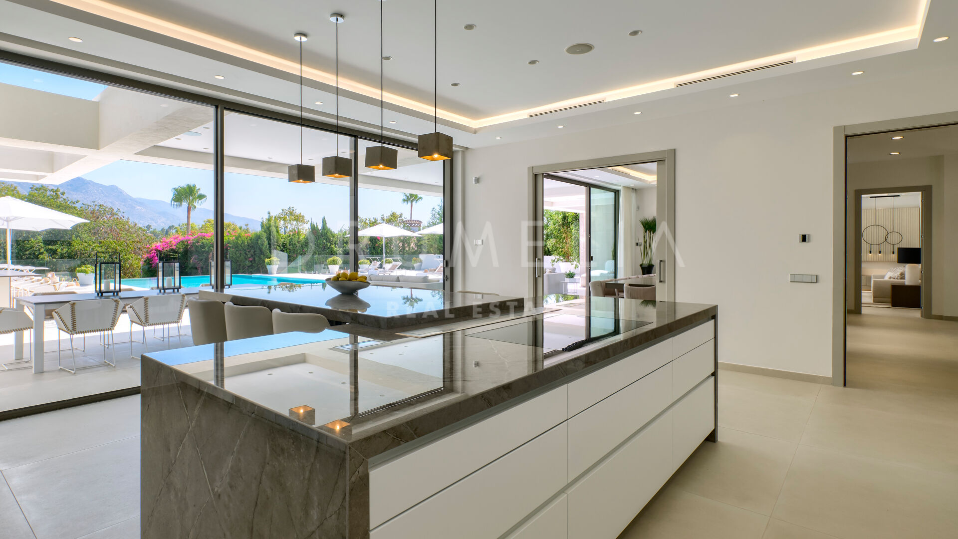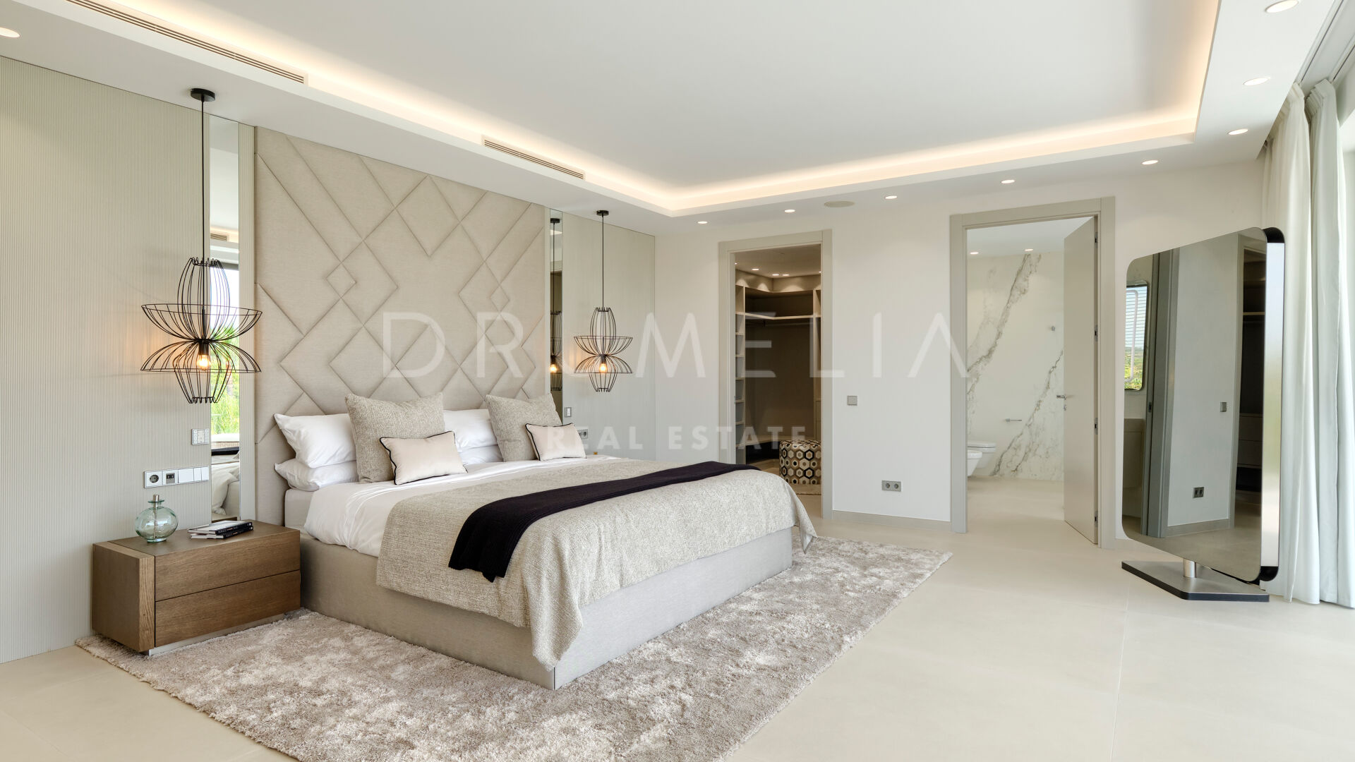 Diese absolut faszinierende, hochmoderne und spektakuläre Immobilie wird dein perfektes mediterranes Zuhause sein, wenn dein Lebensstil modernen Chic, Komfort, Sicherheit, Genuss und ein paar Extras beinhaltet. Du wirst es nicht bereuen! Die superexklusive moderne Villa von 1.197 m² mit großzügigem 2.580 m² großen Grundstück und malerischem Golf- und Bergblick hat alle möglichen und atemberaubenden Vorteile. Sie ist nicht nur eine wunderschöne mediterrane, moderne Villa, die als modernes Zuhause funktioniert. Es ist ein Statement und ein stressfreier, superbequemer Lebensstil, der vom Fortschritt und der besonderen Lage bestimmt wird.