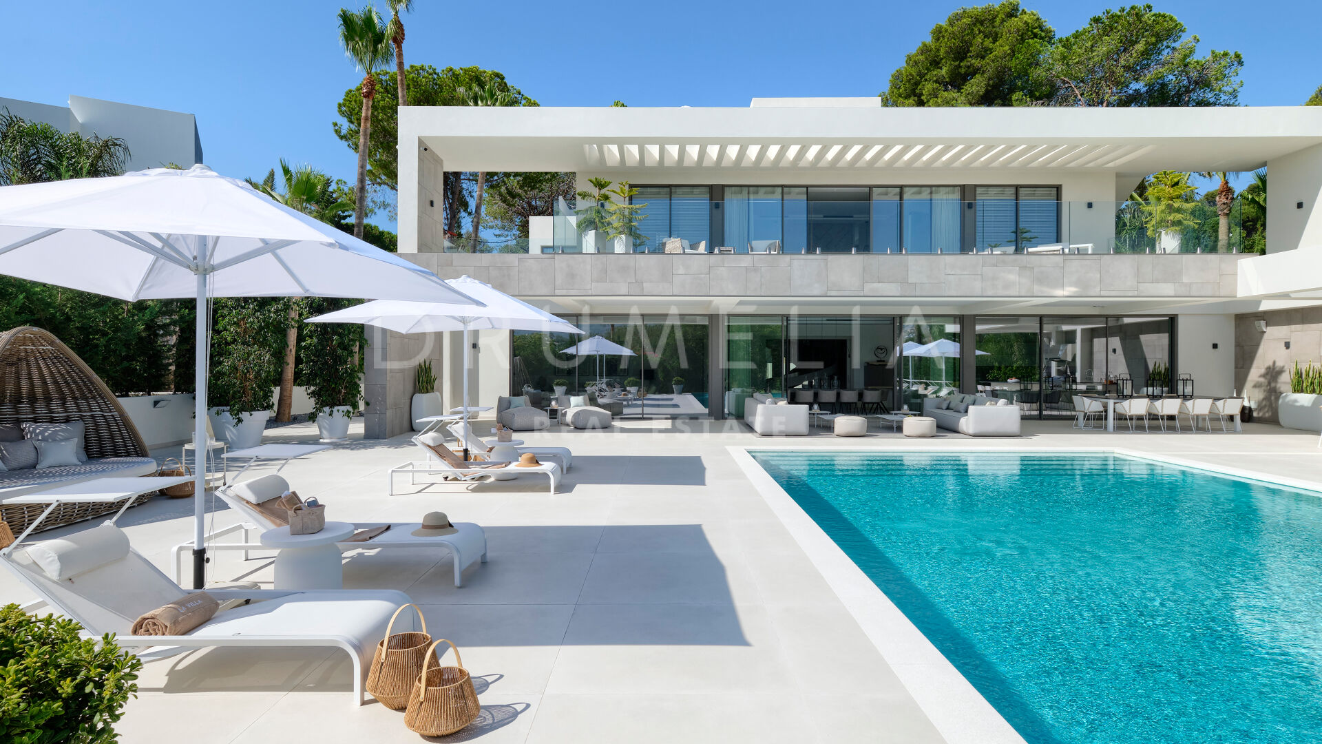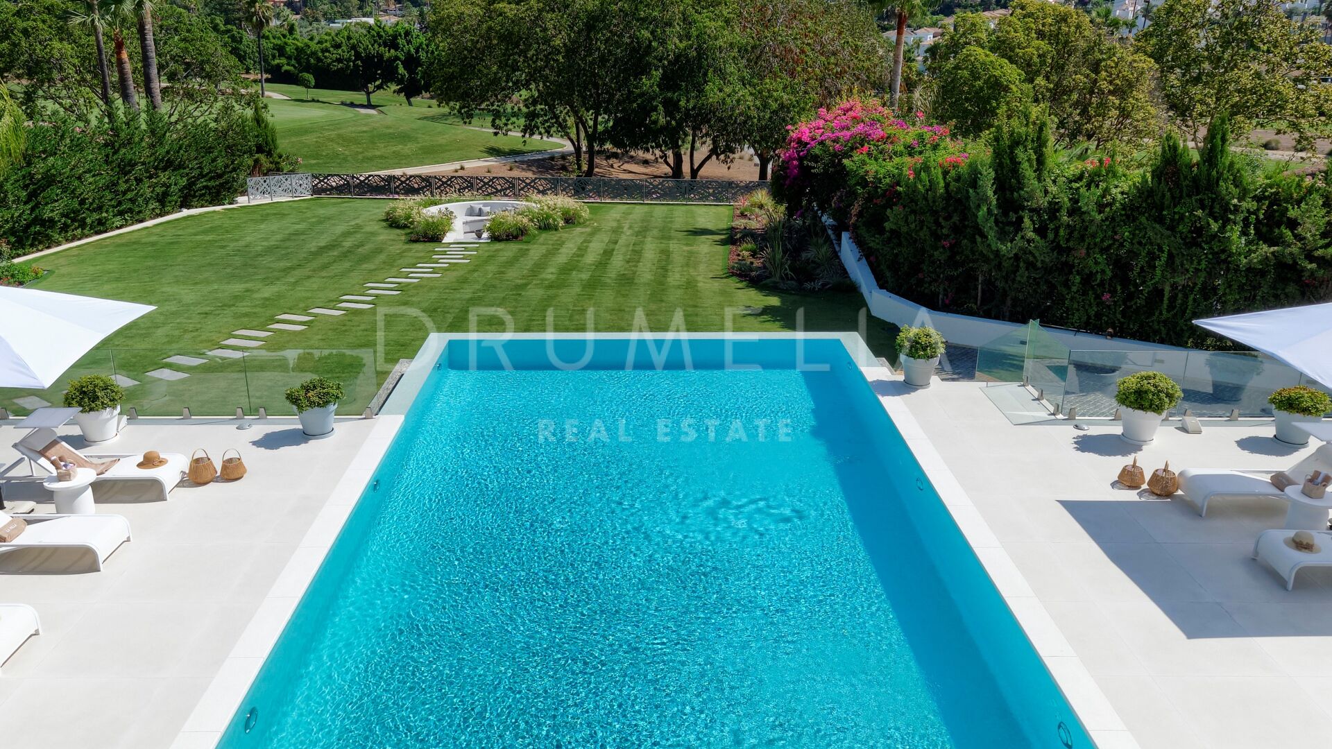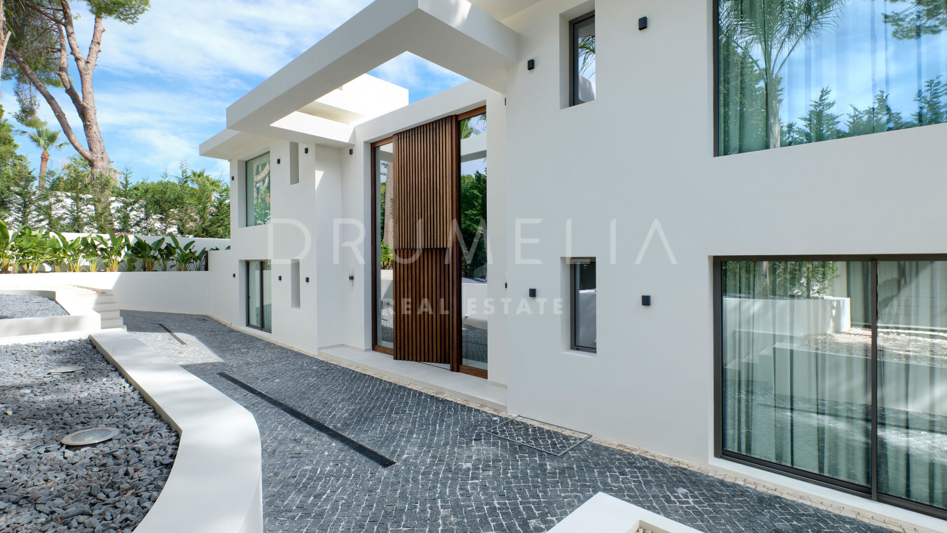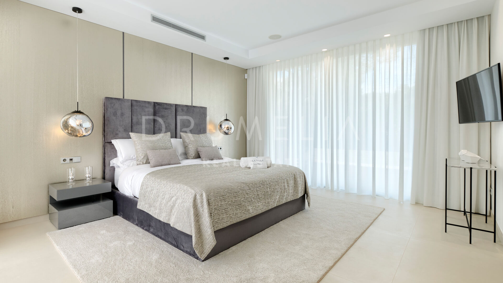 Diese absolut faszinierende, hochmoderne und spektakuläre Immobilie wird dein perfektes mediterranes Zuhause sein, wenn dein Lebensstil modernen Chic, Komfort, Sicherheit, Genuss und ein paar Extras beinhaltet. Du wirst es nicht bereuen! Die superexklusive moderne Villa von 1.197 m² mit großzügigem 2.580 m² großen Grundstück und malerischem Golf- und Bergblick hat alle möglichen und atemberaubenden Vorteile. Sie ist nicht nur eine wunderschöne mediterrane, moderne Villa, die als modernes Zuhause funktioniert. Es ist ein Statement und ein stressfreier, superbequemer Lebensstil, der vom Fortschritt und der besonderen Lage bestimmt wird.