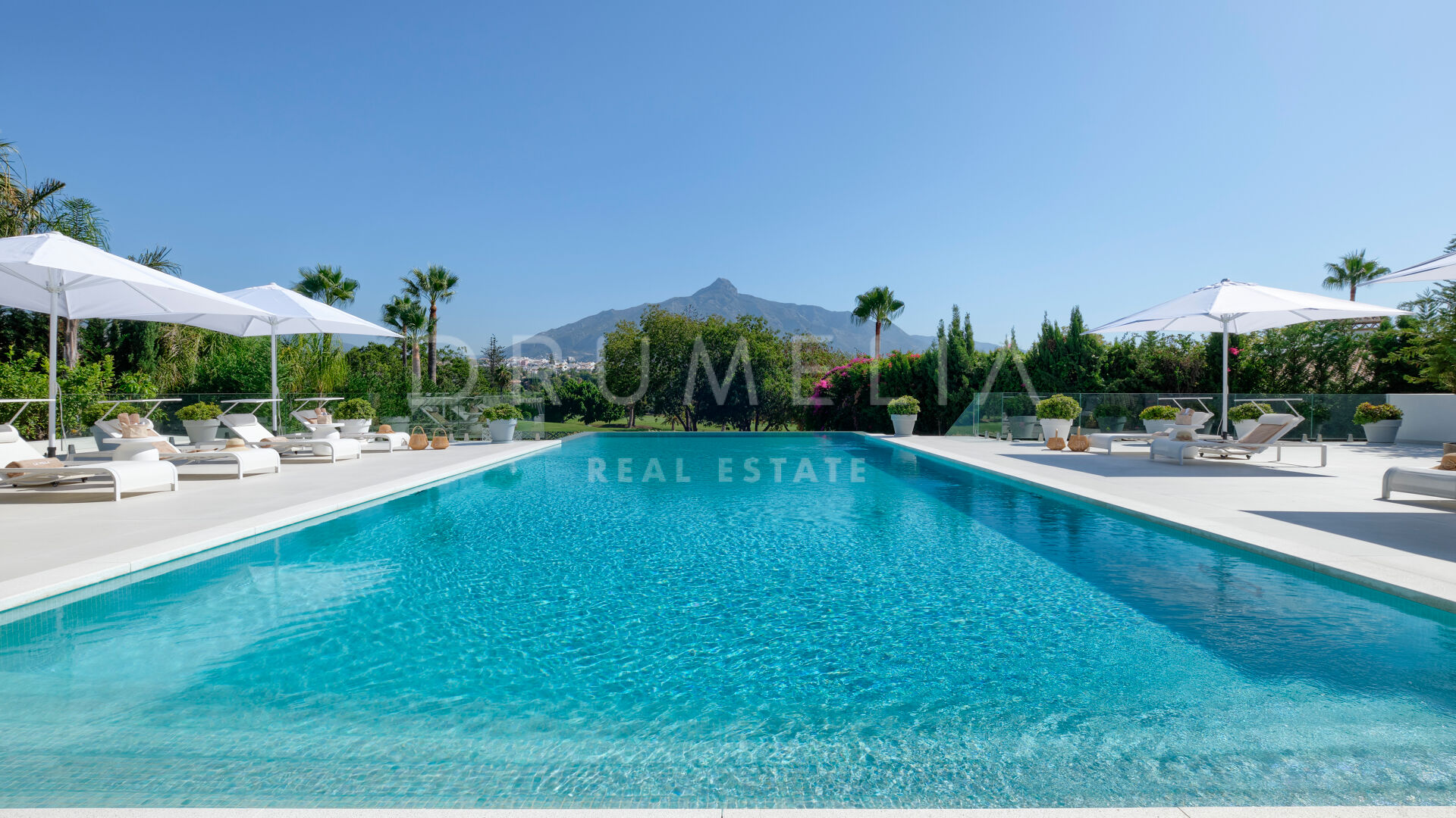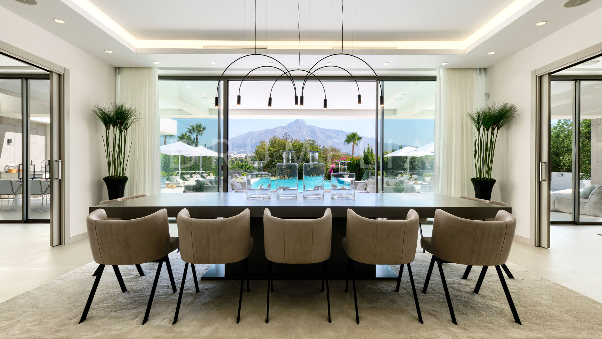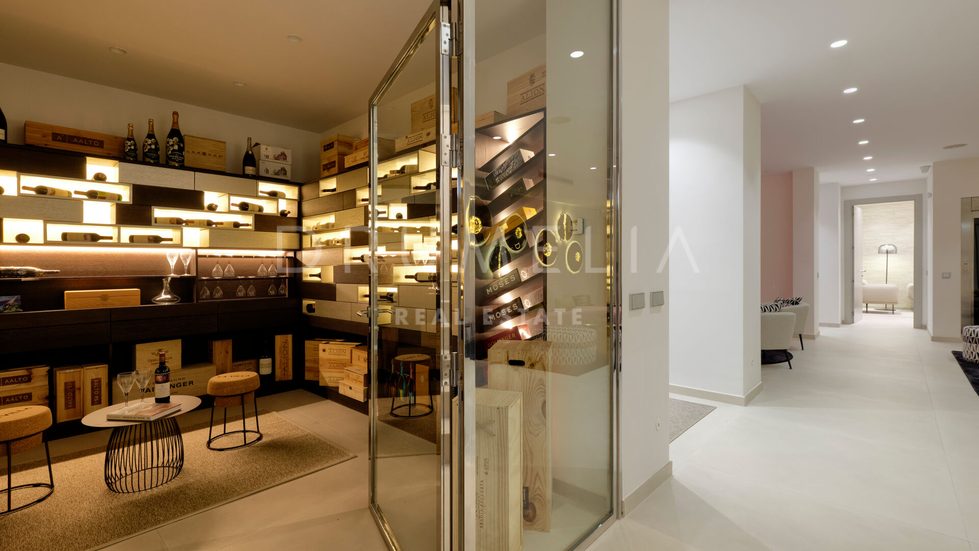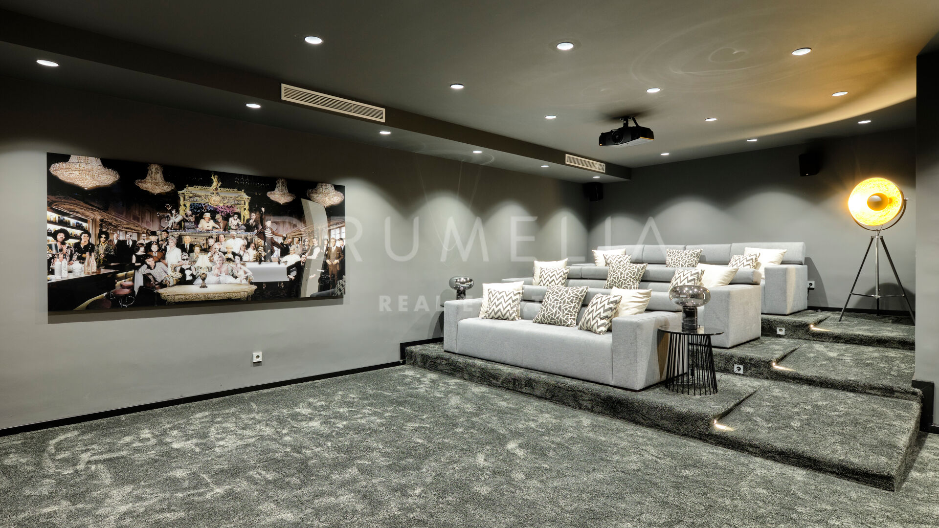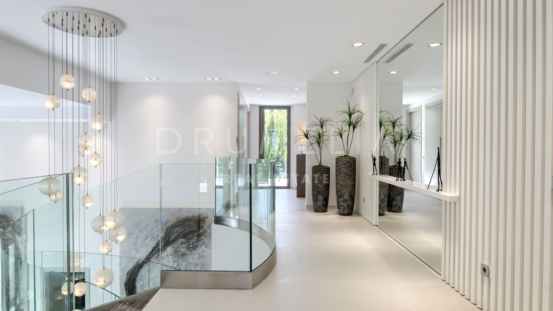 Das Haus verfügt über eine einladende Halle mit doppelt hohen Decken, 9 Schlafzimmer (die Master-Suite hat ein eigenes Bad und einen begehbaren Kleiderschrank, 6 Gästesuiten haben ein eigenes Bad), 10 Badezimmer und 1 Gästetoilette. Eine hochwertige, voll ausgestattete Küche mit Top-Geräten und Bar/Frühstücksbereich, ein Esszimmer und ein Wohnzimmer mit TV-Lounge sind miteinander verbunden und haben Glastüren zur großen Terrasse mit Blick auf den legendären Berg La Concha. Die private Garage bietet Platz für 7 Autos. Das Anwesen verfügt über ein Solarium auf der Dachterrasse, einen großen Keller, einen 12 m langen beheizten Innenpool, eine Sauna, ein Dampfbad, einen Fitnessraum, einen Entspannungsbereich mit Liegestühlen, einen Weinkeller mit Temperatur- und Feuchtigkeitskontrolle, einen Kinoraum usw. Ein separates Gästeapartment bietet 2 Schlafzimmer, ein Bad, eine offene Küche und einen Wohnbereich.