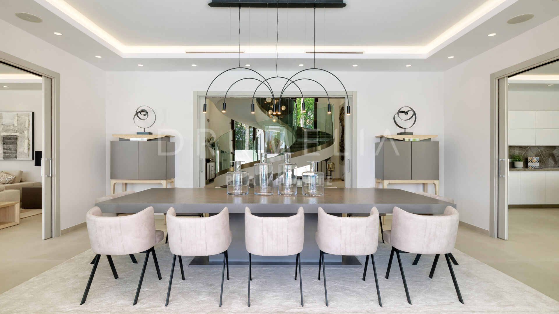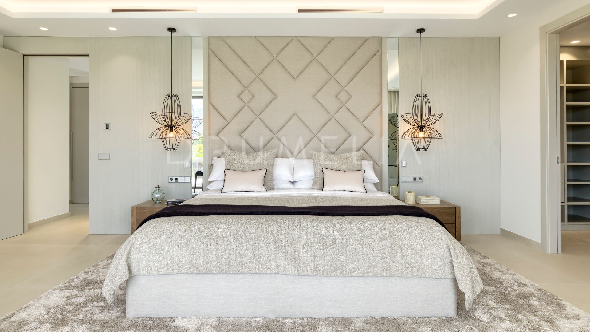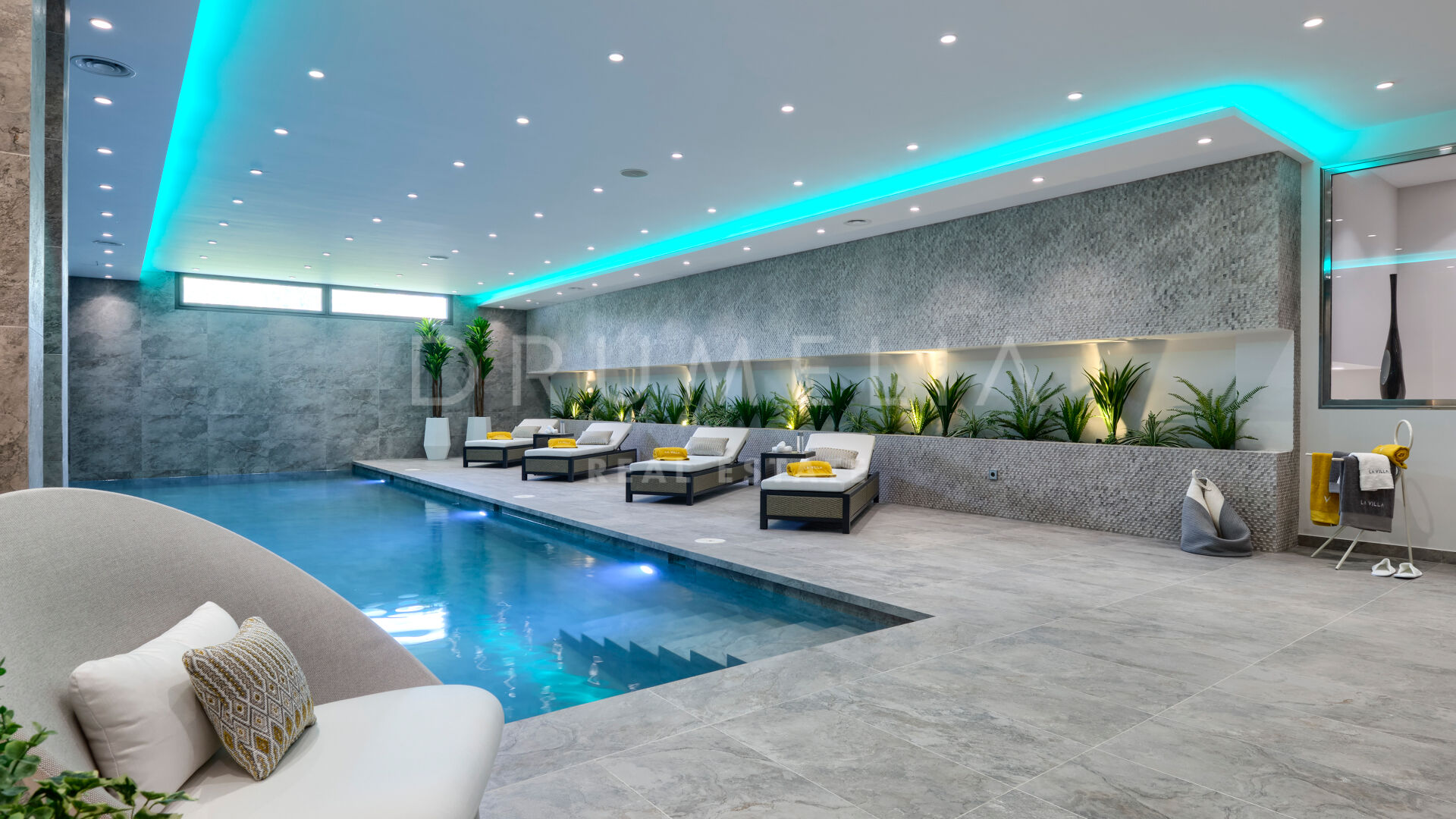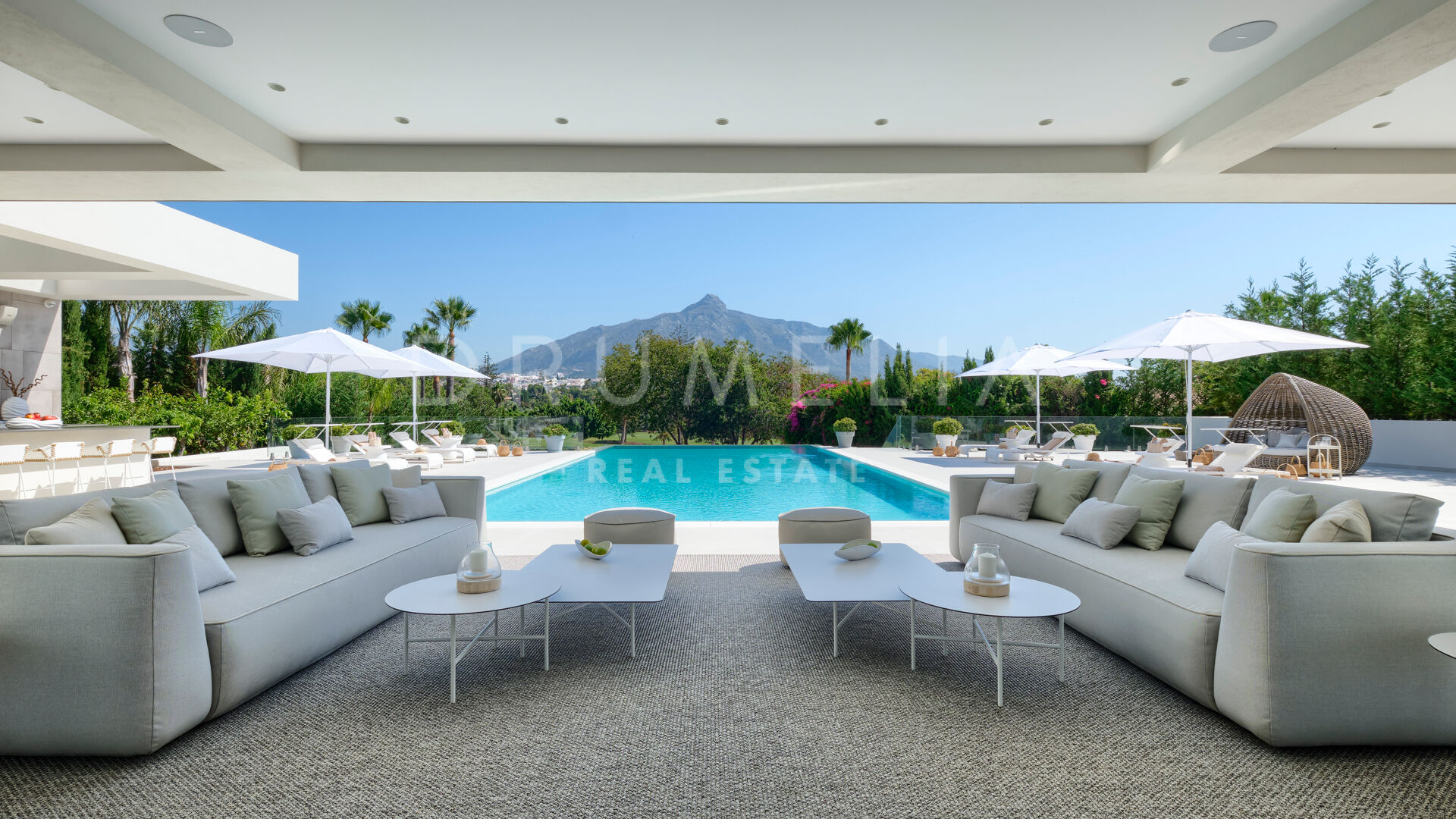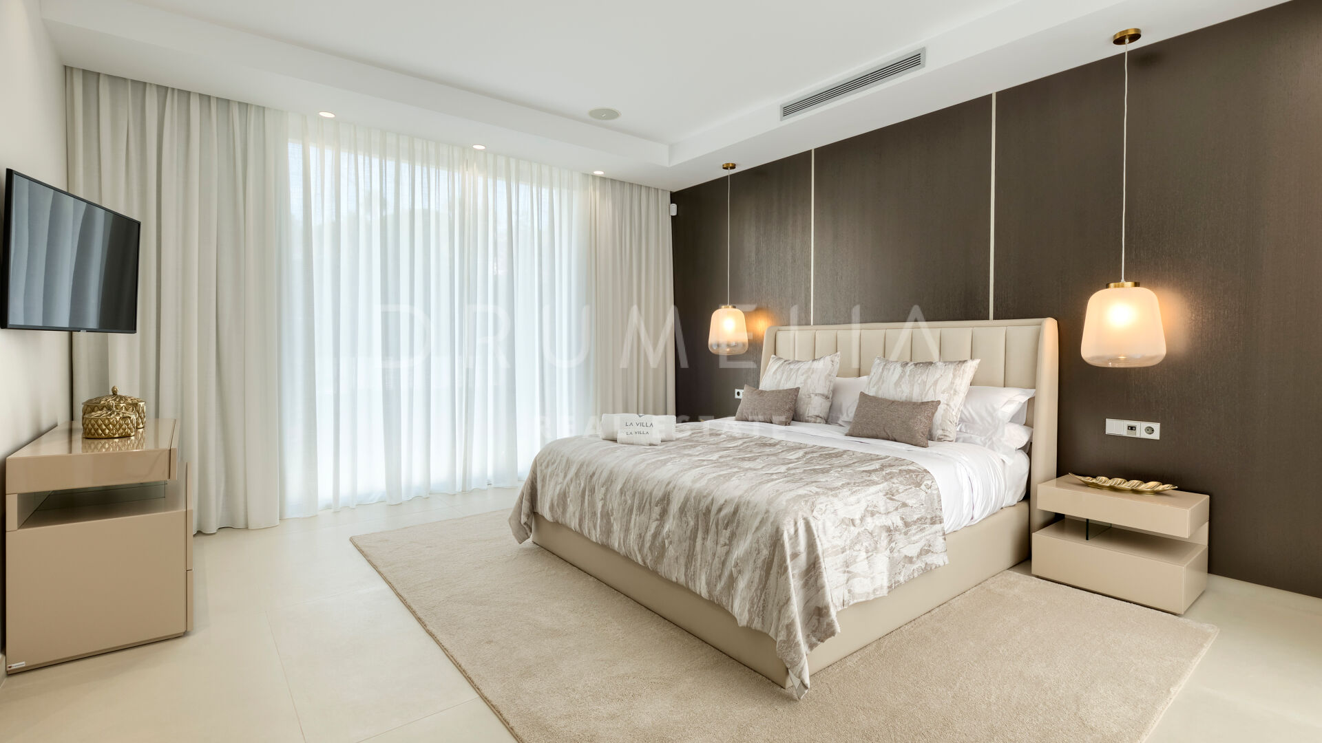 Das Haus verfügt über eine einladende Halle mit doppelt hohen Decken, 9 Schlafzimmer (die Master-Suite hat ein eigenes Bad und einen begehbaren Kleiderschrank, 6 Gästesuiten haben ein eigenes Bad), 10 Badezimmer und 1 Gästetoilette. Eine hochwertige, voll ausgestattete Küche mit Top-Geräten und Bar/Frühstücksbereich, ein Esszimmer und ein Wohnzimmer mit TV-Lounge sind miteinander verbunden und haben Glastüren zur großen Terrasse mit Blick auf den legendären Berg La Concha. Die private Garage bietet Platz für 7 Autos. Das Anwesen verfügt über ein Solarium auf der Dachterrasse, einen großen Keller, einen 12 m langen beheizten Innenpool, eine Sauna, ein Dampfbad, einen Fitnessraum, einen Entspannungsbereich mit Liegestühlen, einen Weinkeller mit Temperatur- und Feuchtigkeitskontrolle, einen Kinoraum usw. Ein separates Gästeapartment bietet 2 Schlafzimmer, ein Bad, eine offene Küche und einen Wohnbereich.