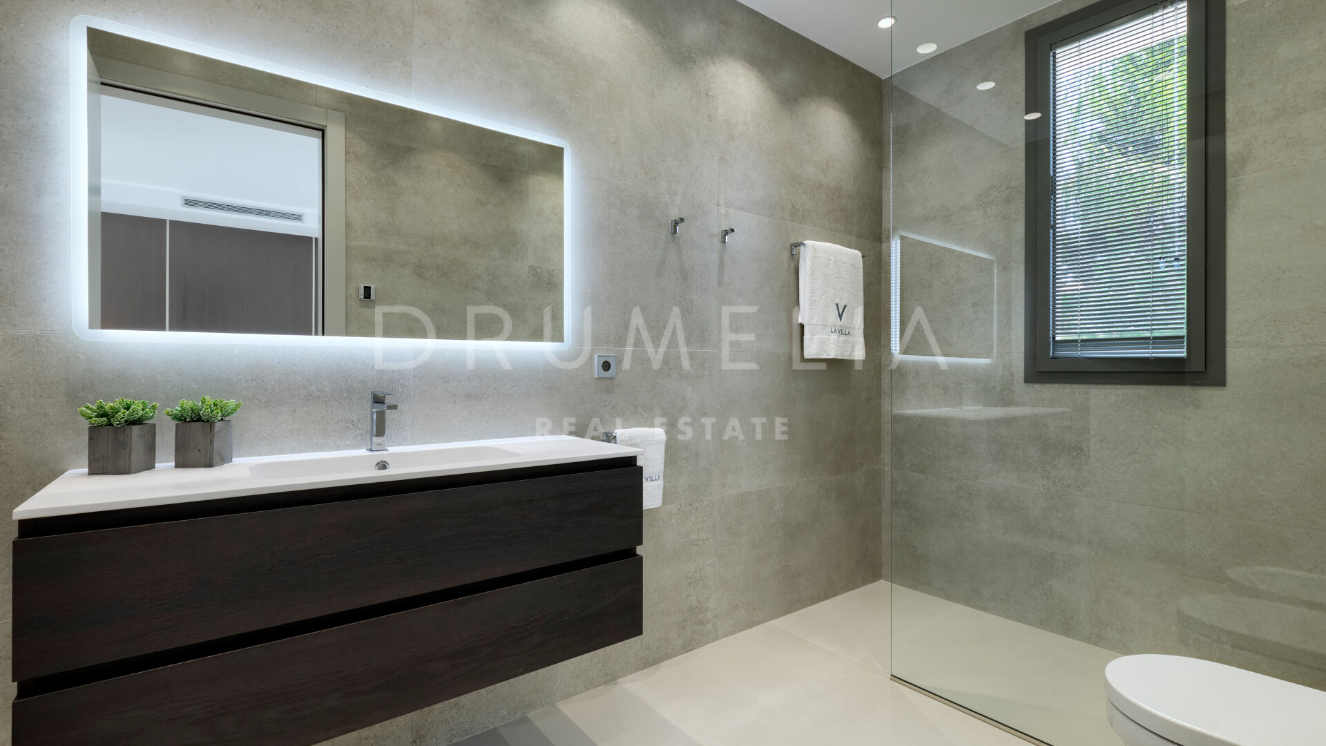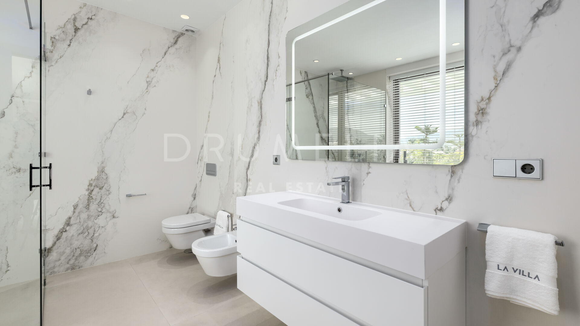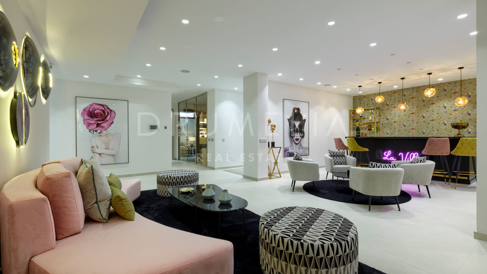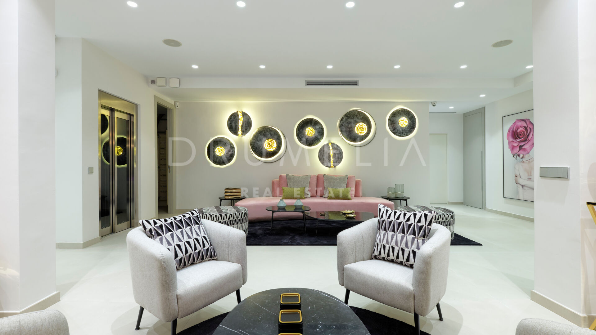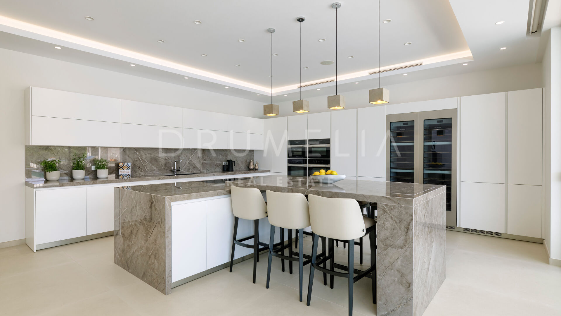 Das Haus verfügt über eine einladende Halle mit doppelt hohen Decken, 9 Schlafzimmer (die Master-Suite hat ein eigenes Bad und einen begehbaren Kleiderschrank, 6 Gästesuiten haben ein eigenes Bad), 10 Badezimmer und 1 Gästetoilette. Eine hochwertige, voll ausgestattete Küche mit Top-Geräten und Bar/Frühstücksbereich, ein Esszimmer und ein Wohnzimmer mit TV-Lounge sind miteinander verbunden und haben Glastüren zur großen Terrasse mit Blick auf den legendären Berg La Concha. Die private Garage bietet Platz für 7 Autos. Das Anwesen verfügt über ein Solarium auf der Dachterrasse, einen großen Keller, einen 12 m langen beheizten Innenpool, eine Sauna, ein Dampfbad, einen Fitnessraum, einen Entspannungsbereich mit Liegestühlen, einen Weinkeller mit Temperatur- und Feuchtigkeitskontrolle, einen Kinoraum usw. Ein separates Gästeapartment bietet 2 Schlafzimmer, ein Bad, eine offene Küche und einen Wohnbereich.
