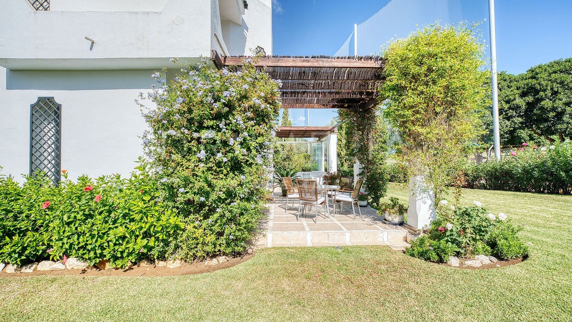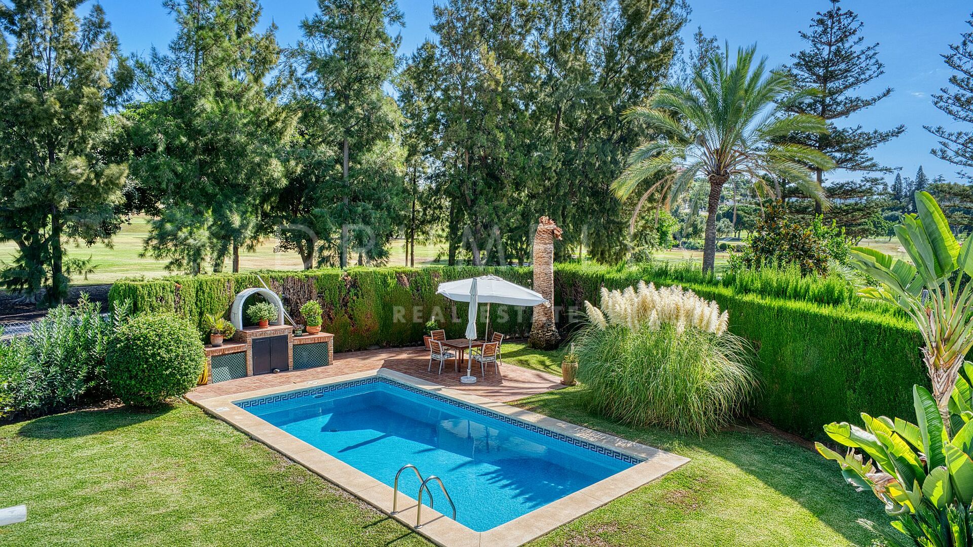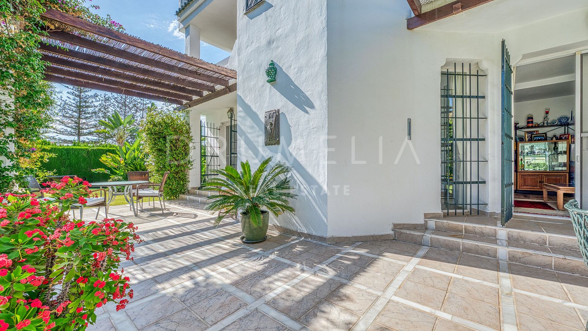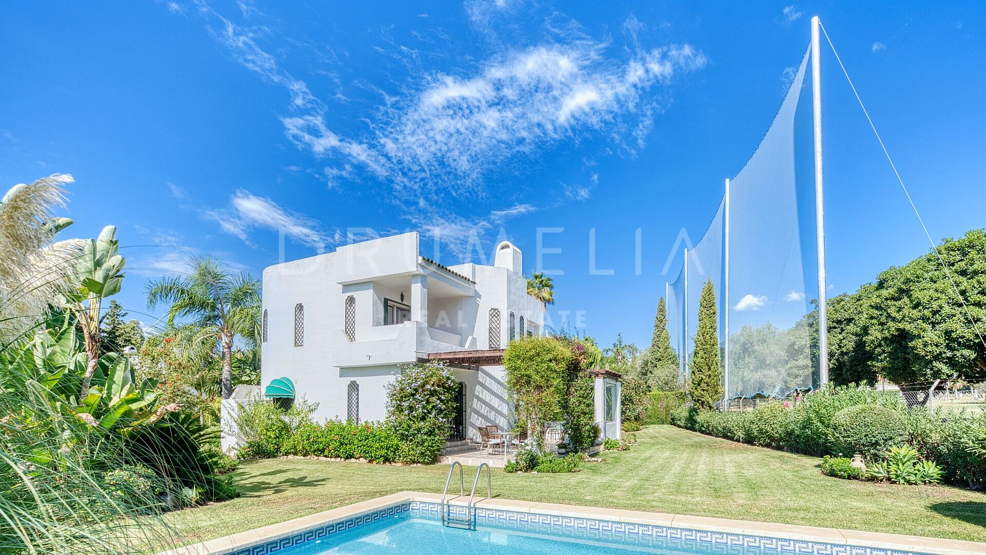 Diese Villa befindet sich in der prestigeträchtigen Gegend von Nueva Andalucía, Marbella, und genießt eine privilegierte Lage in erster Golflinie am Golfplatz Los Naranjos, in einer ruhigen Sackgasse, die Privatsphäre und Ruhe garantiert. Das Grundstück wurde sorgfältig gestaltet und verfügt über eine breite Fassade zum Golfplatz hin, die größer ist als der Eingangsbereich, was ein Gefühl von Großzügigkeit, offene Ausblicke und Privatsphäre in natürlicher Umgebung schafft.