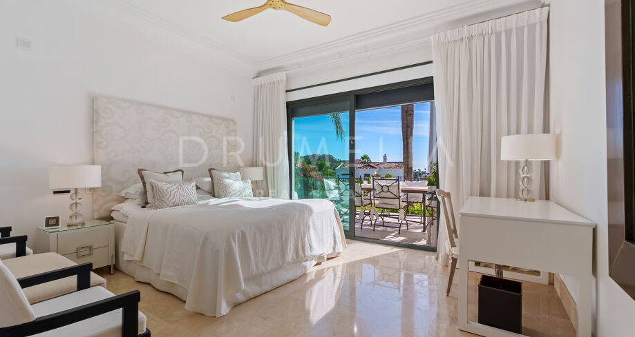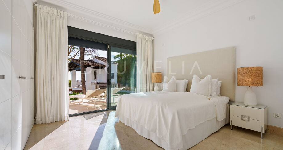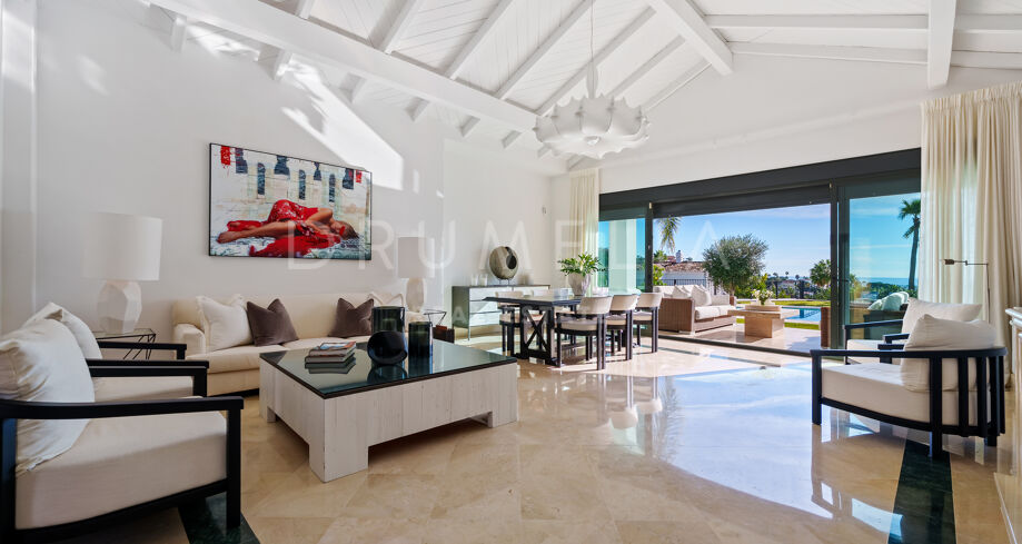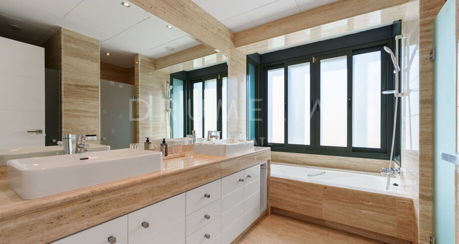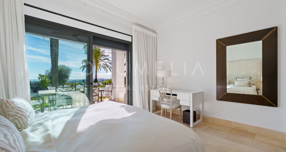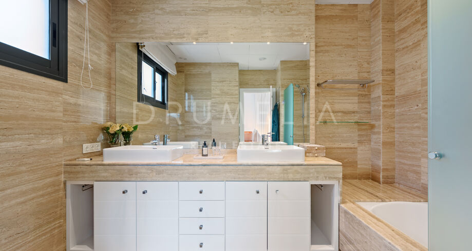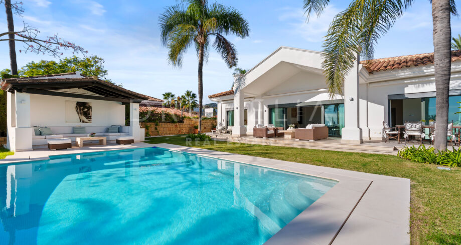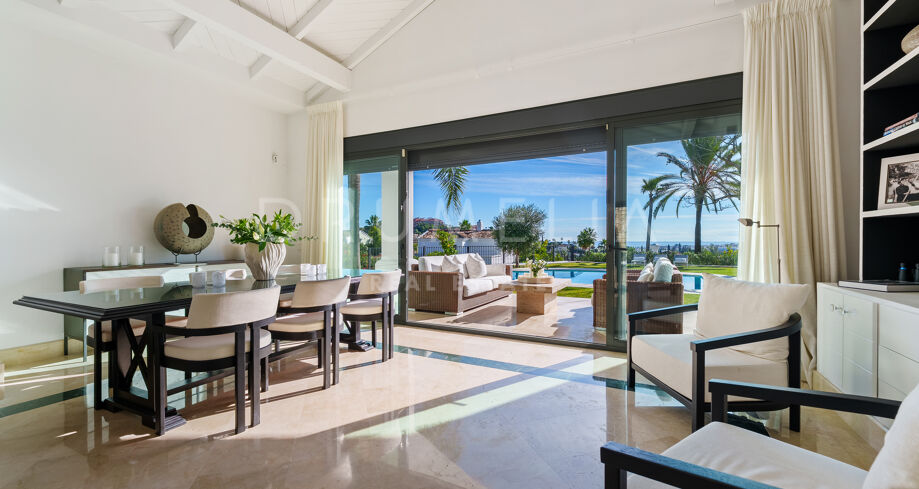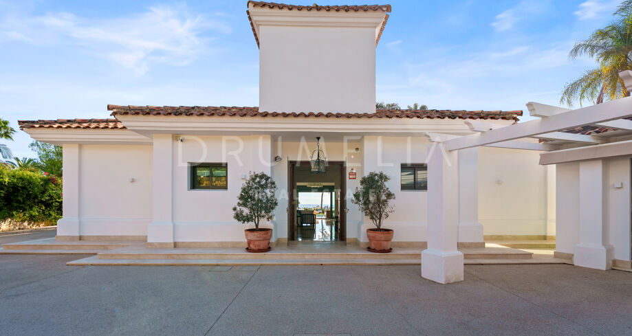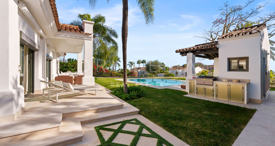 Villa mit 4 Schlafzimmern auf einem erhöhten Grundstück von 1.265 m² mit Meerblick, privatem Pool und angelegtem Garten in Nueva Andalucía, Marbella.