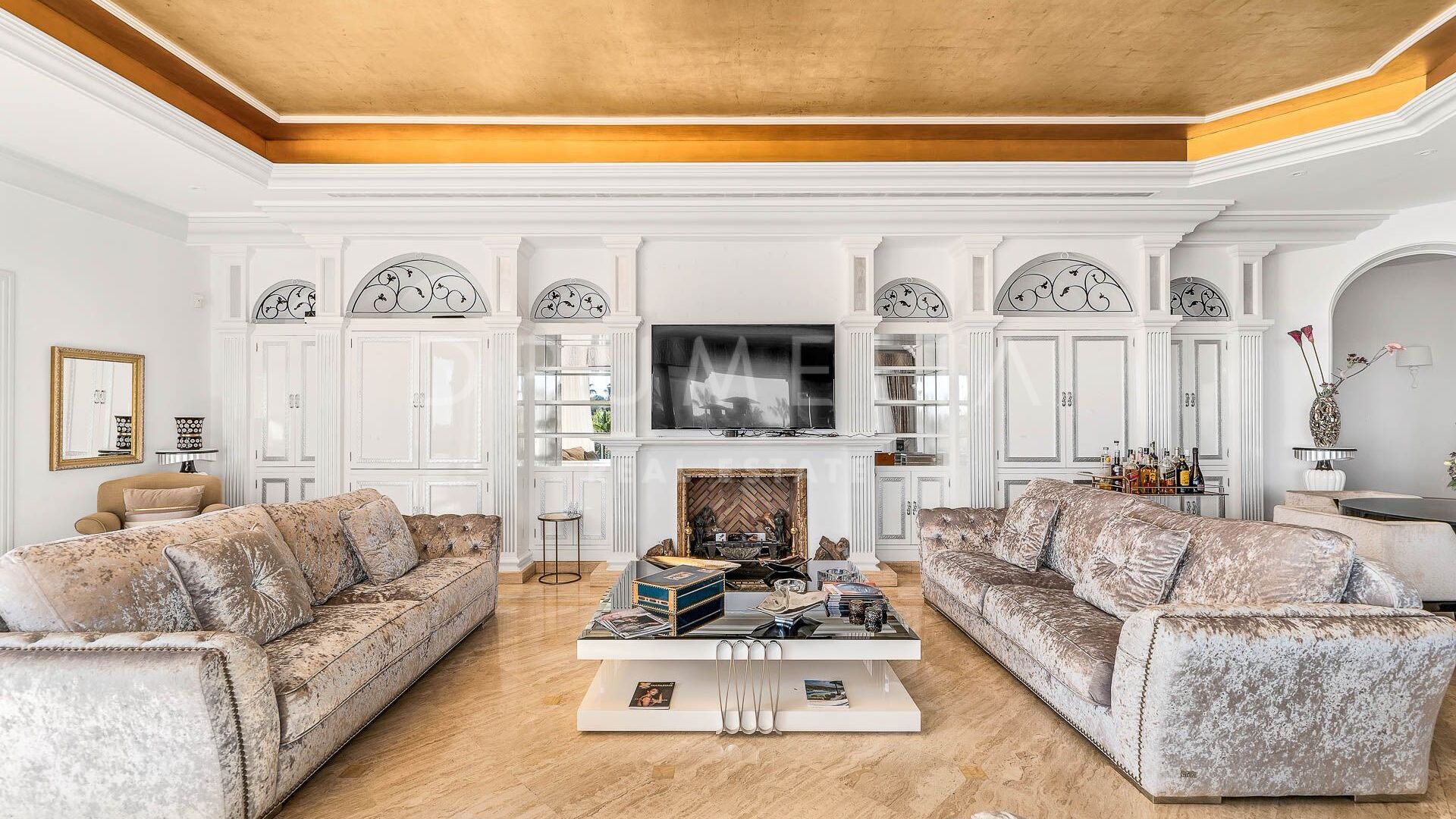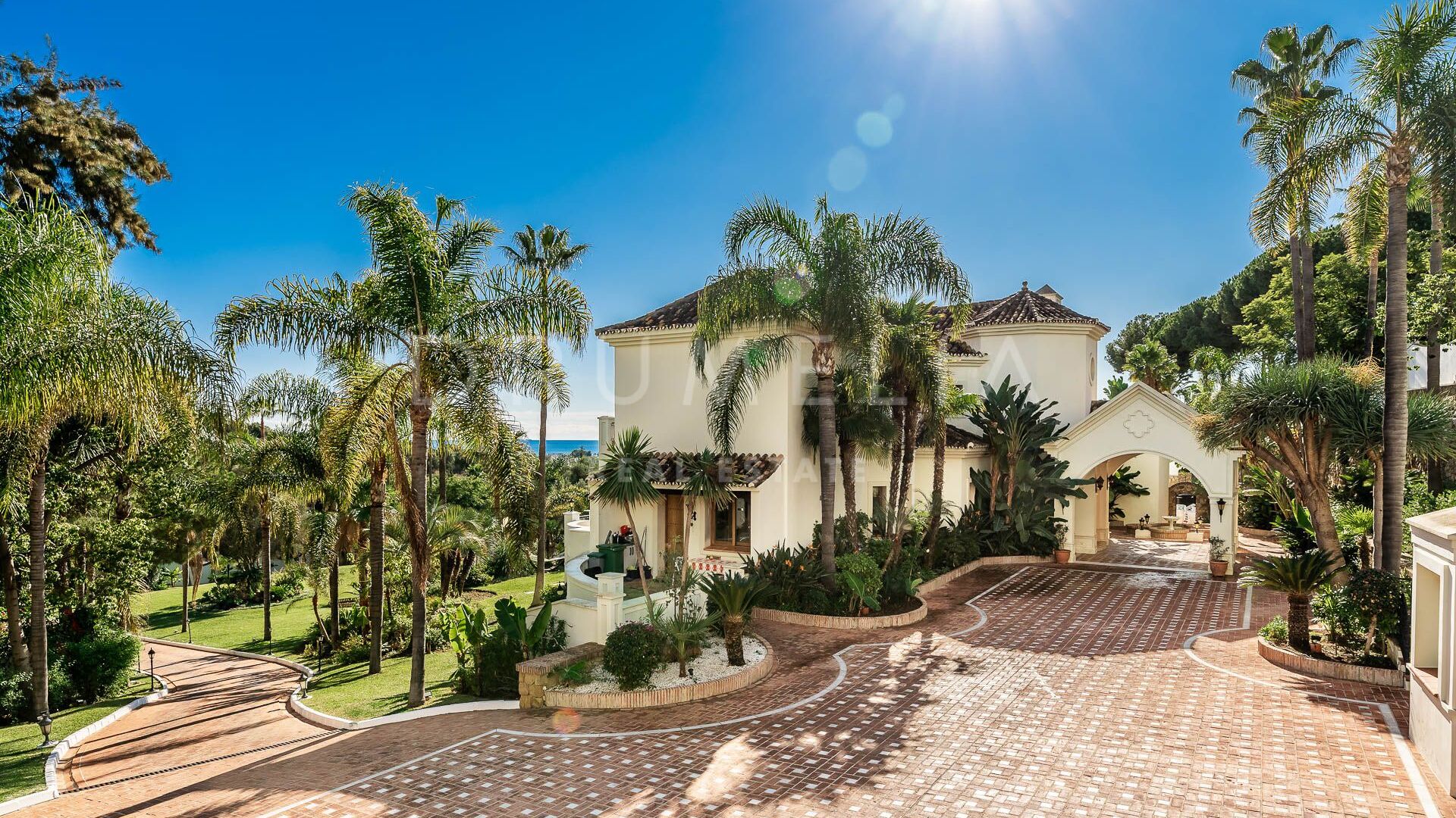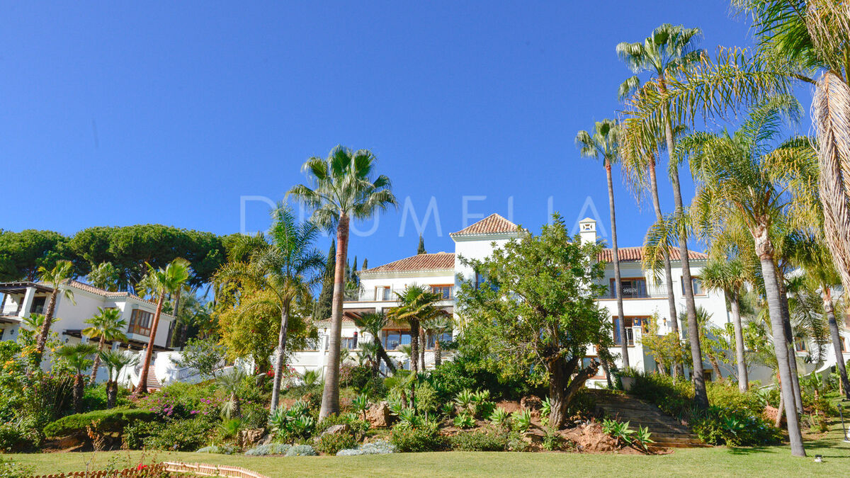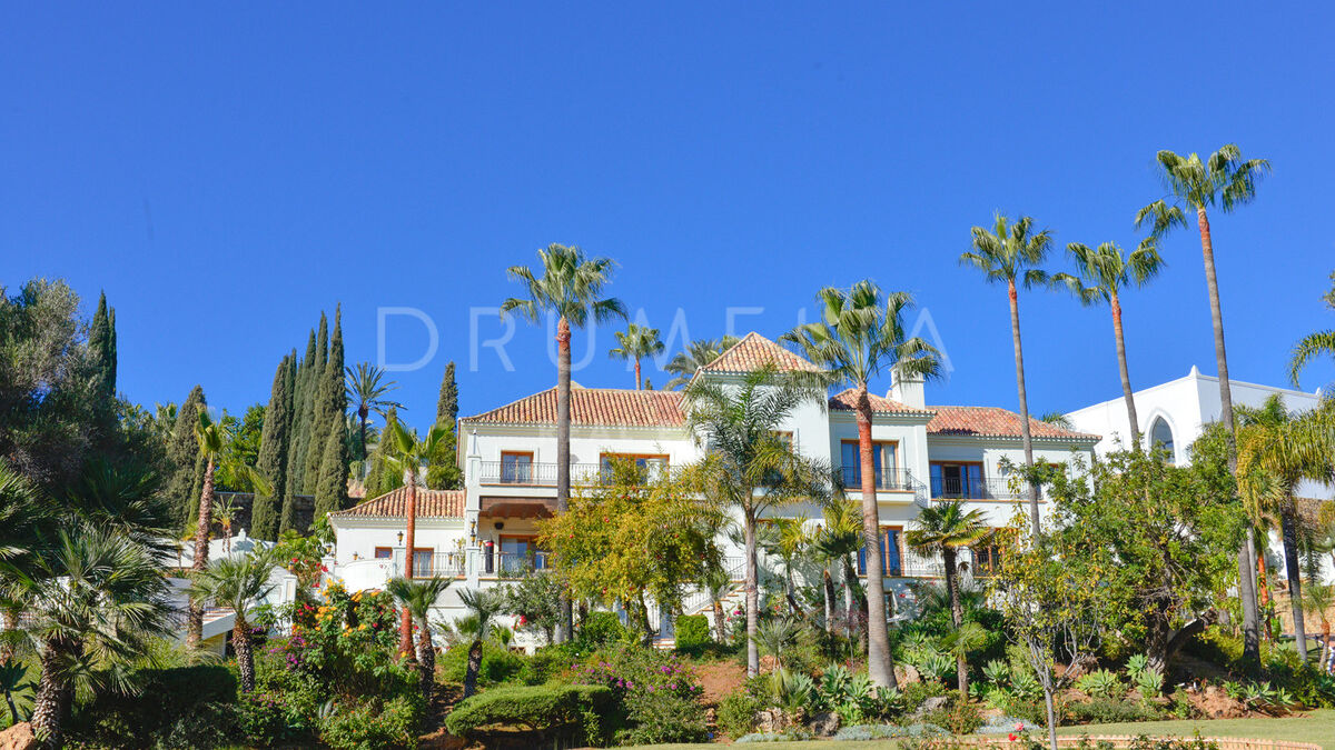 Die prächtige Villa bietet 16 luxuriöse Schlafzimmer und 16 Bäder, Wohn-, Ess- und Unterhaltungsbereiche, die so schön sind, dass sie Könige und Königinnen einladen. Es glänzt mit einer wunderschönen Fassade und traditioneller mediterraner Architektur. Eine geräumige Eingangshalle mit einer exquisiten Treppe führt zu einem eleganten Wohnzimmer mit einer Kaminlounge und einem separaten Essbereich mit Zugang zu den Terrassen und dem Garten. Die Außenbereiche sind ebenso bemerkenswert. Sie wurden sorgfältig angelegt, um den atemberaubenden Panoramablick auf die Berge und das Meer (Südausrichtung) voll auszunutzen. Der perfekt gepflegte, parkähnliche Garten, die imposanten Grünflächen und romantischen Ecken, der große Pool, die stilvollen Chill-out- und Al fresco-Essbereiche werden dich beeindrucken.