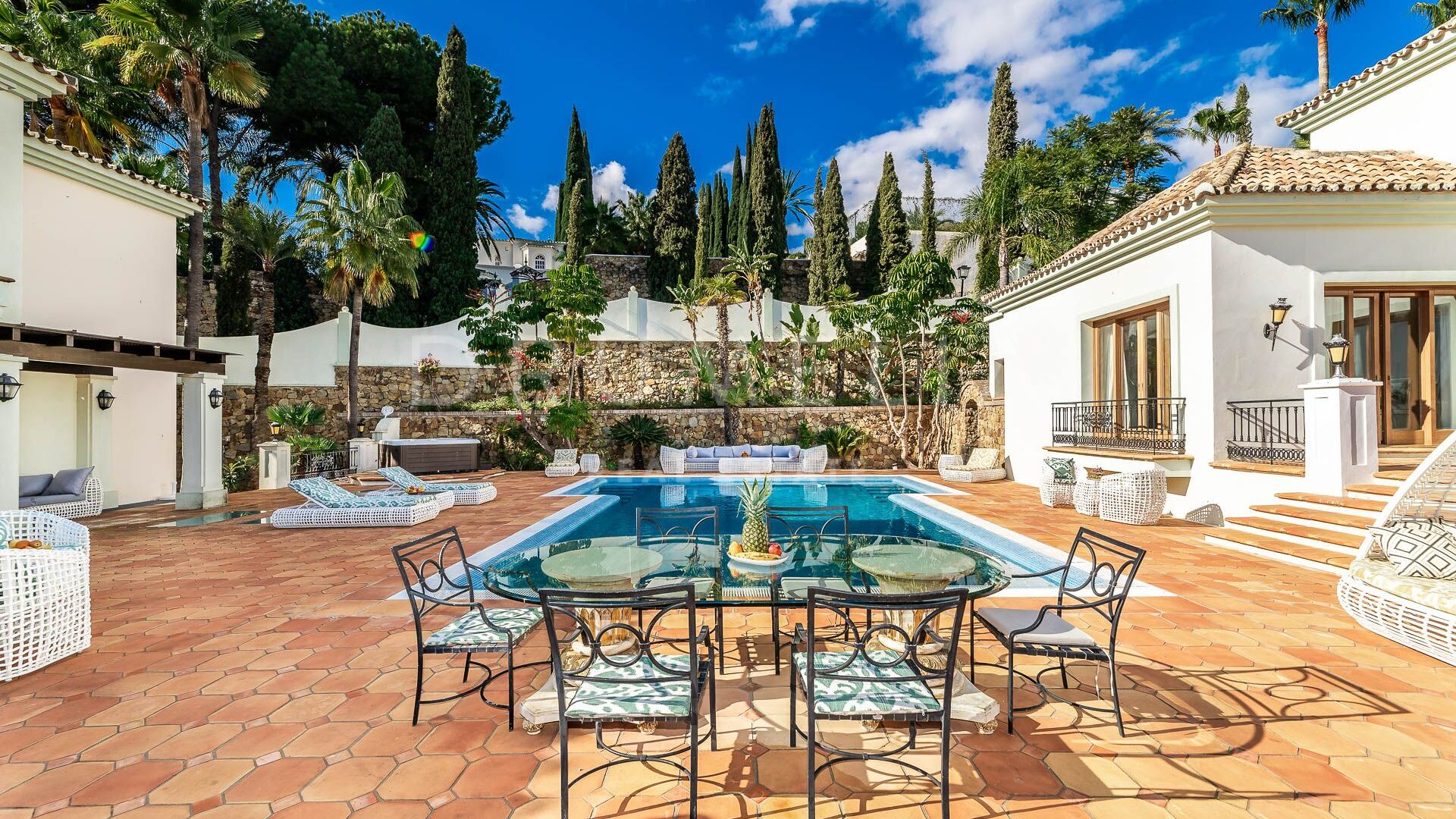 Diese außergewöhnliche Villa wird in hervorragendem Zustand verkauft, mit prächtigen Marmorböden, raffinierter und schöner Deckengestaltung, Klimaanlage, Glastüren, Einbauschränken, Doppelverglasung, maßgeschneiderten und kunstvoll gefertigten Elementen. Zweifelsohne ist Rancho Paraiso eine ganz besondere Immobilie für den anspruchsvollen Kunden mit gutem Geschmack!
