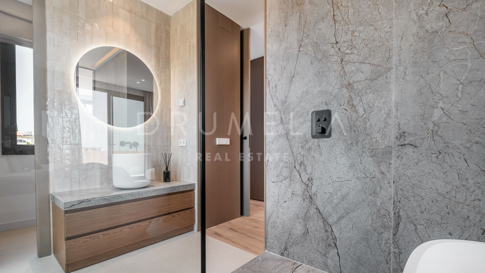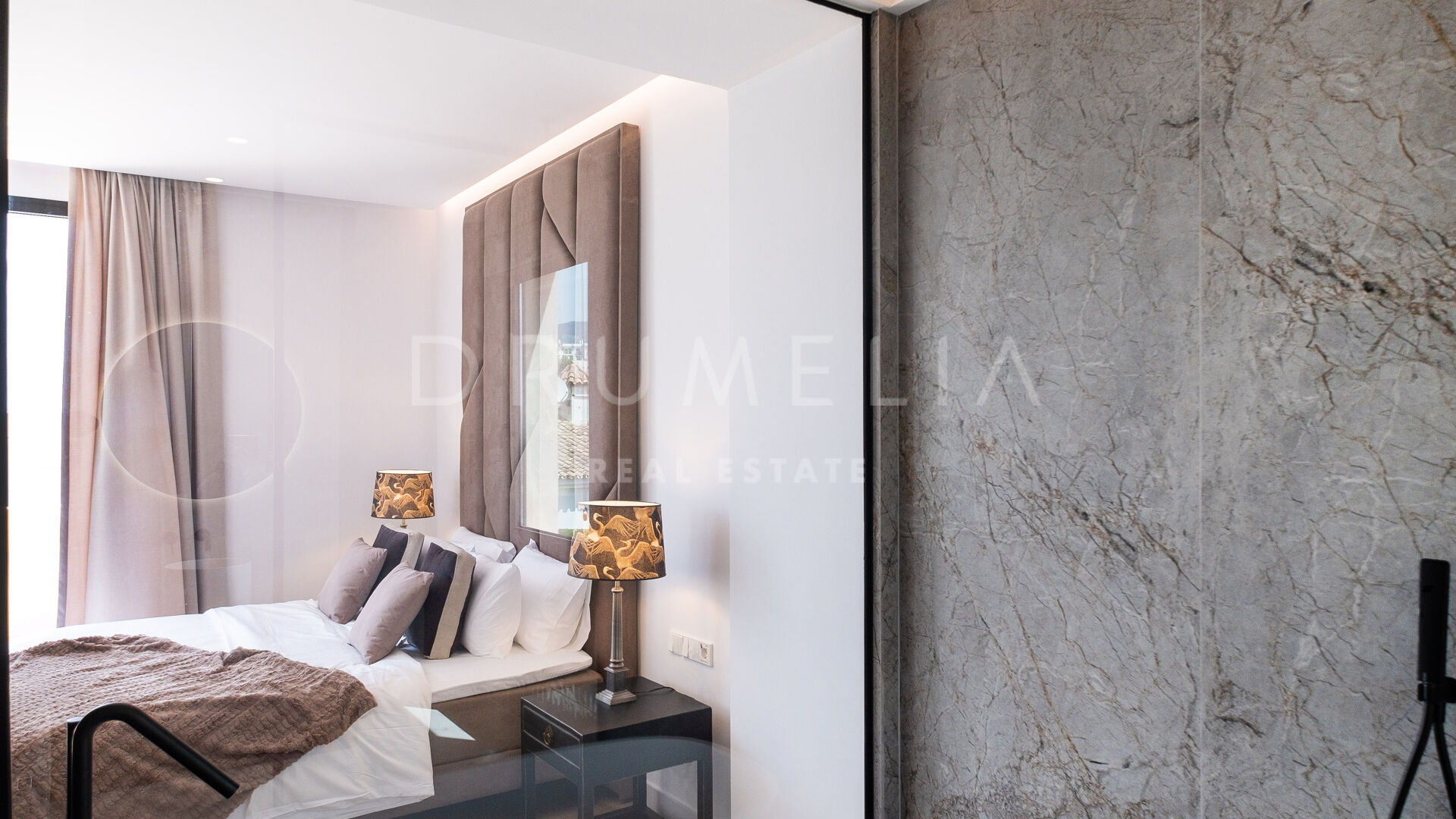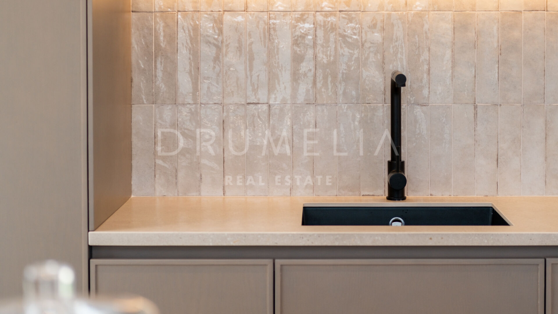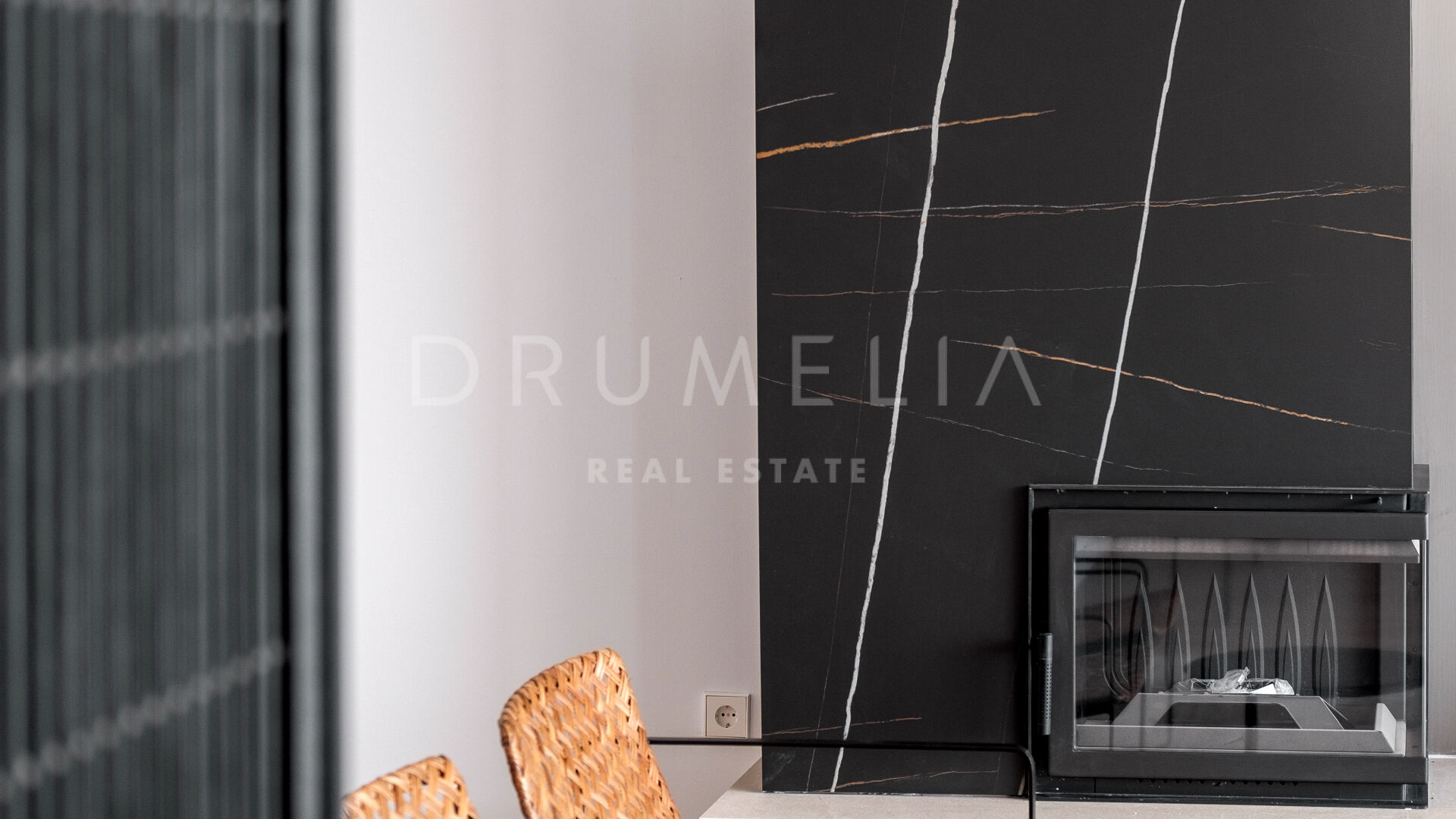 Die Außenbereiche sind sorgfältig für Entspannung und Unterhaltung gestaltet und verfügen über einen Infinity-Pool mit integrierten Sonnenliegen, eine Sonnenterrasse, eine Pergola mit Grill sowie Ess- und Chill-out-Bereiche und eine überdachte Terrasse, die zum Garten führt. Die Villa verfügt über Fußbodenheizung in den Badezimmern und ein umfassendes Sicherheitssystem. Eine einzigartige Terrasse mit Mondlichtkino bietet einen idealen Rückzugsort, um sich zu entspannen und den atemberaubenden Meerblick zu genießen.
