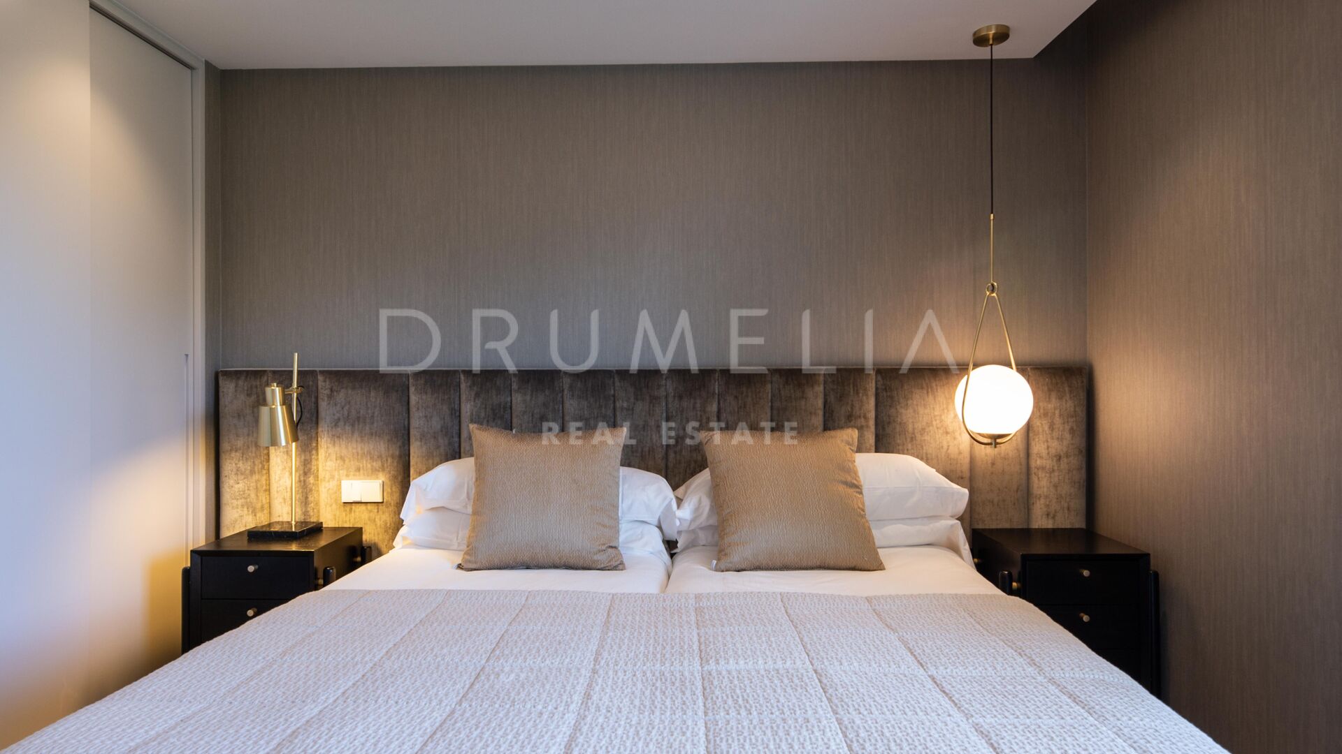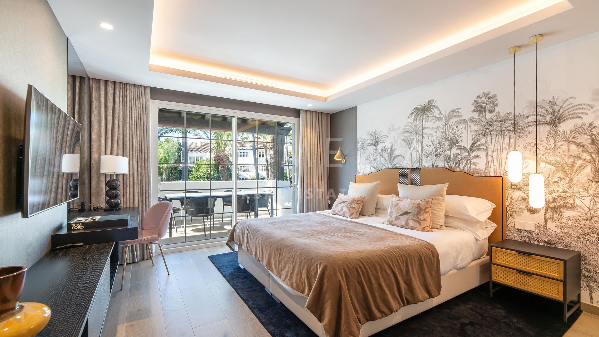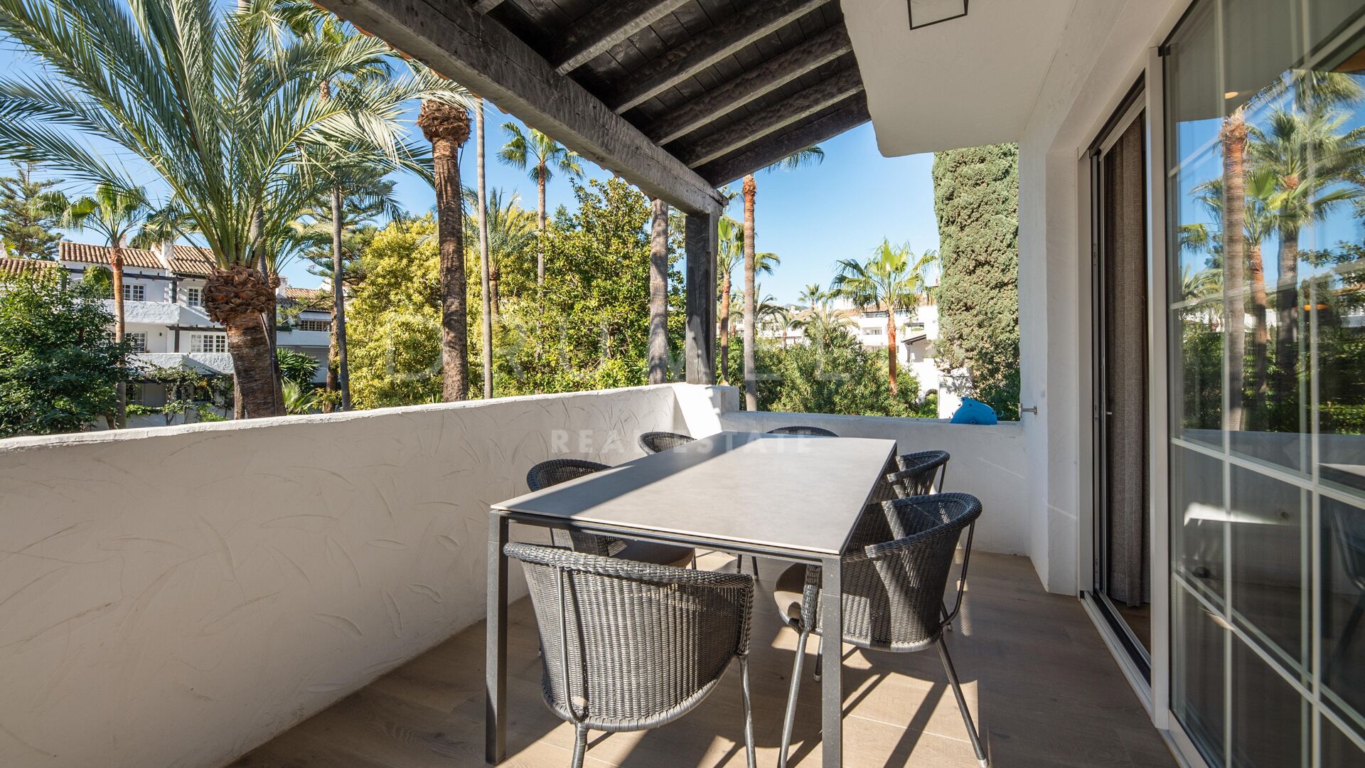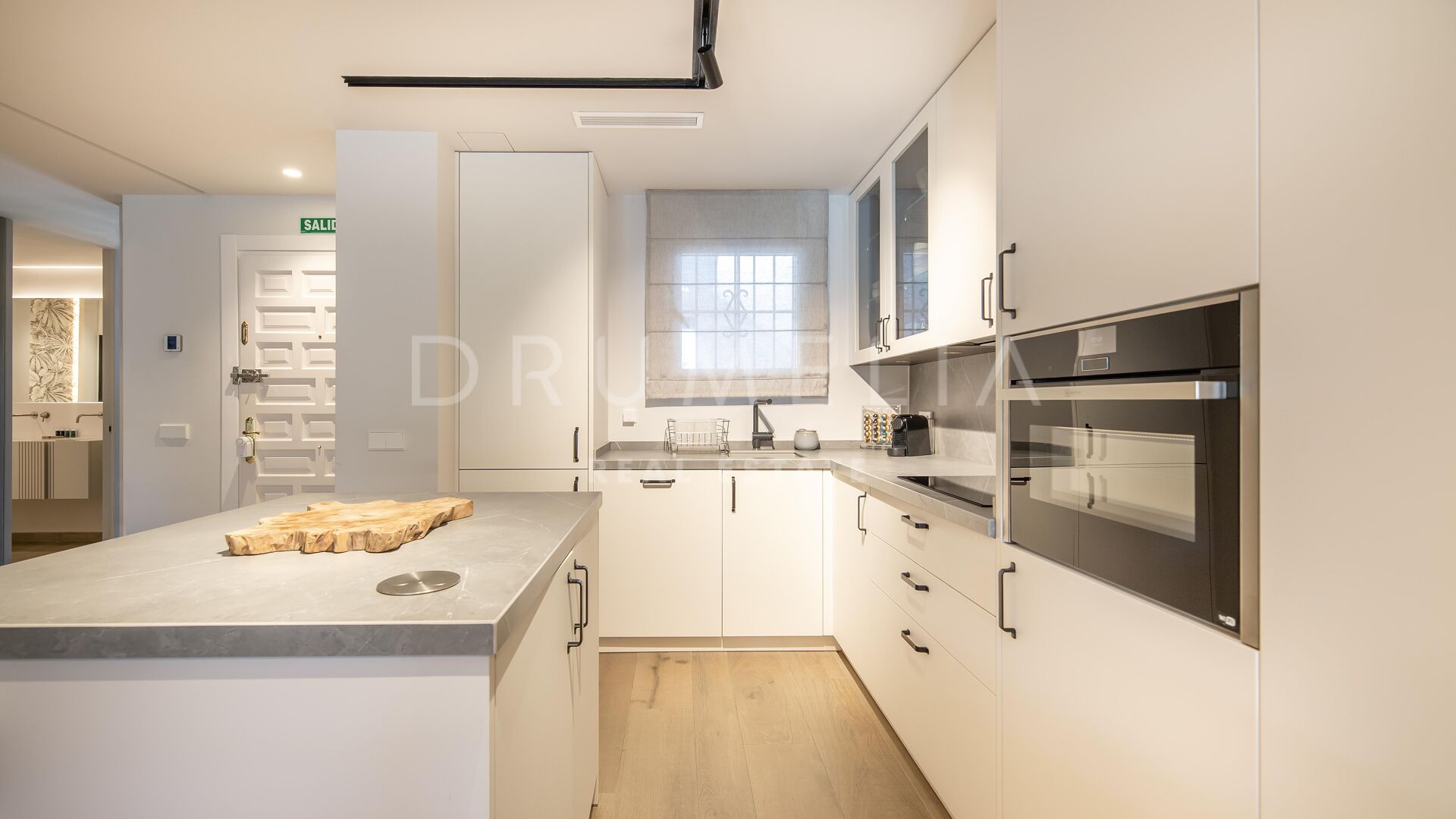 Diese luxuriöse, komplett renovierte 2-Schlafzimmer-Wohnung zum Verkauf befindet sich in der legendären 5-Sterne-Anlage Puente Romano im Herzen der berühmten Goldenen Meile von Marbella. Mit dem glitzernden Mittelmeer vor der Nase und den dramatischen andalusischen Bergen im Rücken, nur wenige Minuten von der Altstadt von Marbella und dem glamourösen Puerto Banús entfernt, ist die Gegend einfach fabelhaft. Die große Auswahl an luxuriösen Annehmlichkeiten und erstklassigen Einrichtungen ist nur einen Katzensprung entfernt, darunter Michelin-Stern-Restaurants, goldene Strände, trendige Nachtclubs, Designer-Boutiquen und der Puente Romano Tennis Club, einer der wichtigsten Tennisclubs in Südeuropa.