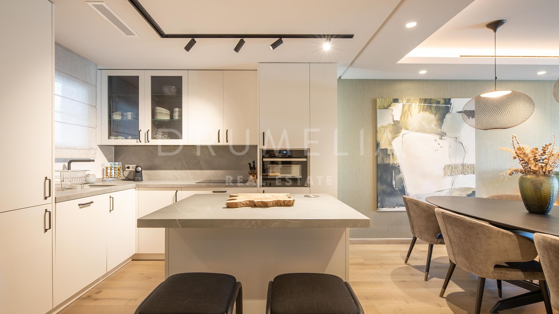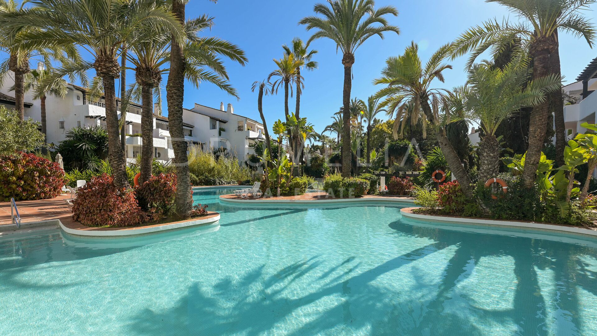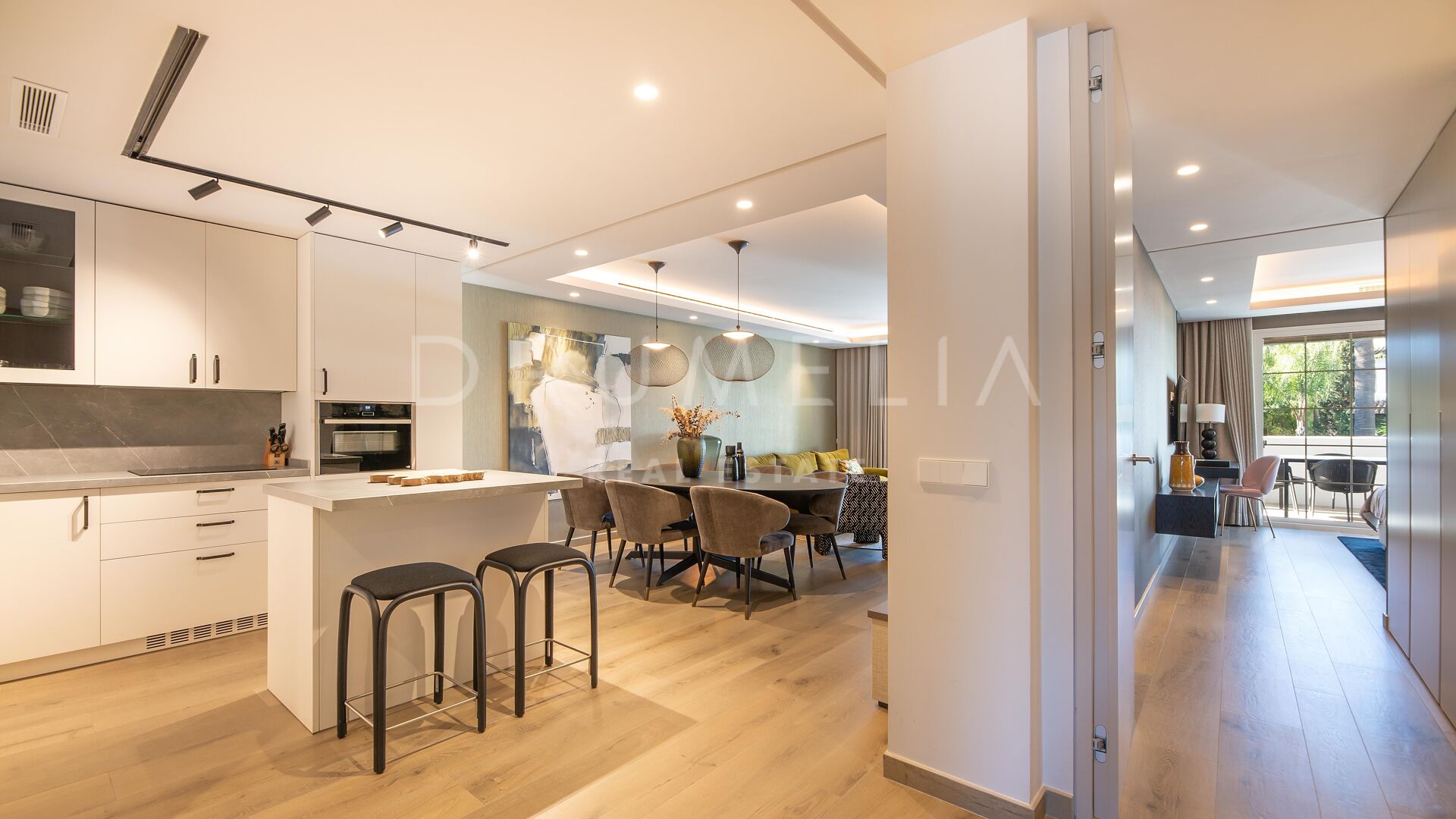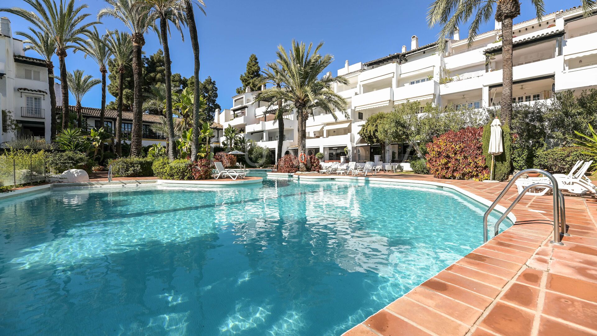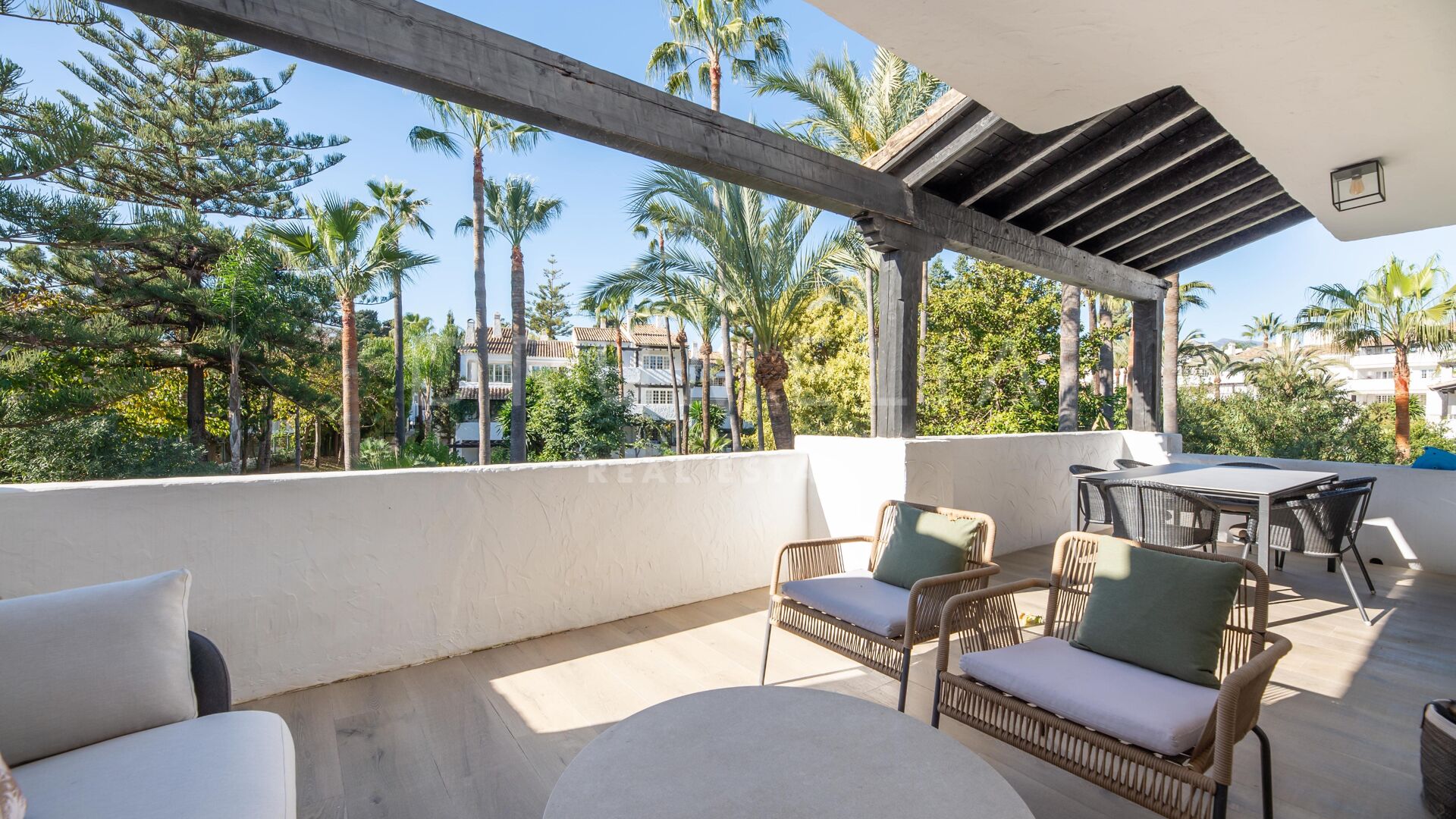 Diese luxuriöse, komplett renovierte 2-Schlafzimmer-Wohnung zum Verkauf befindet sich in der legendären 5-Sterne-Anlage Puente Romano im Herzen der berühmten Goldenen Meile von Marbella. Mit dem glitzernden Mittelmeer vor der Nase und den dramatischen andalusischen Bergen im Rücken, nur wenige Minuten von der Altstadt von Marbella und dem glamourösen Puerto Banús entfernt, ist die Gegend einfach fabelhaft. Die große Auswahl an luxuriösen Annehmlichkeiten und erstklassigen Einrichtungen ist nur einen Katzensprung entfernt, darunter Michelin-Stern-Restaurants, goldene Strände, trendige Nachtclubs, Designer-Boutiquen und der Puente Romano Tennis Club, einer der wichtigsten Tennisclubs in Südeuropa.