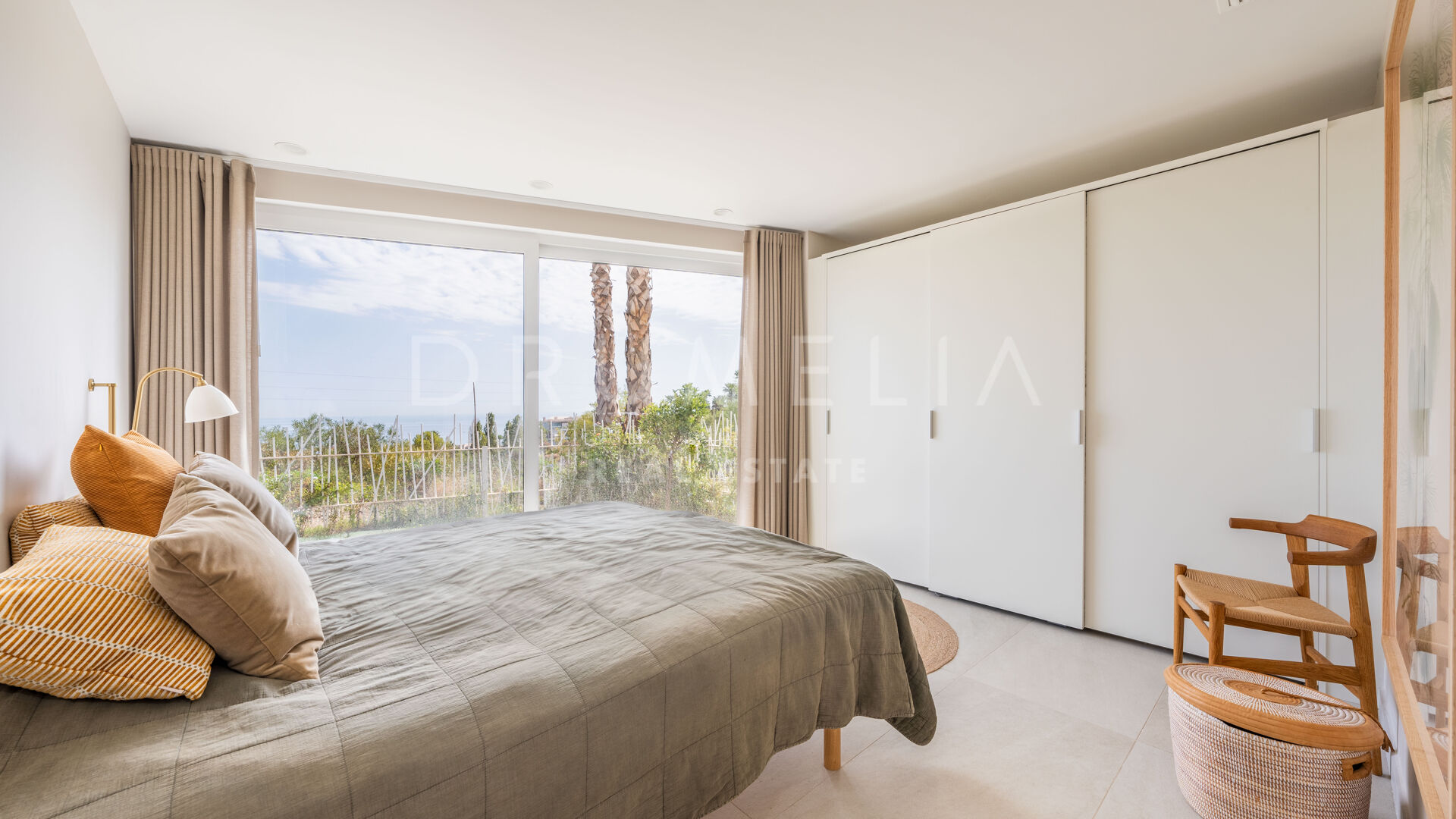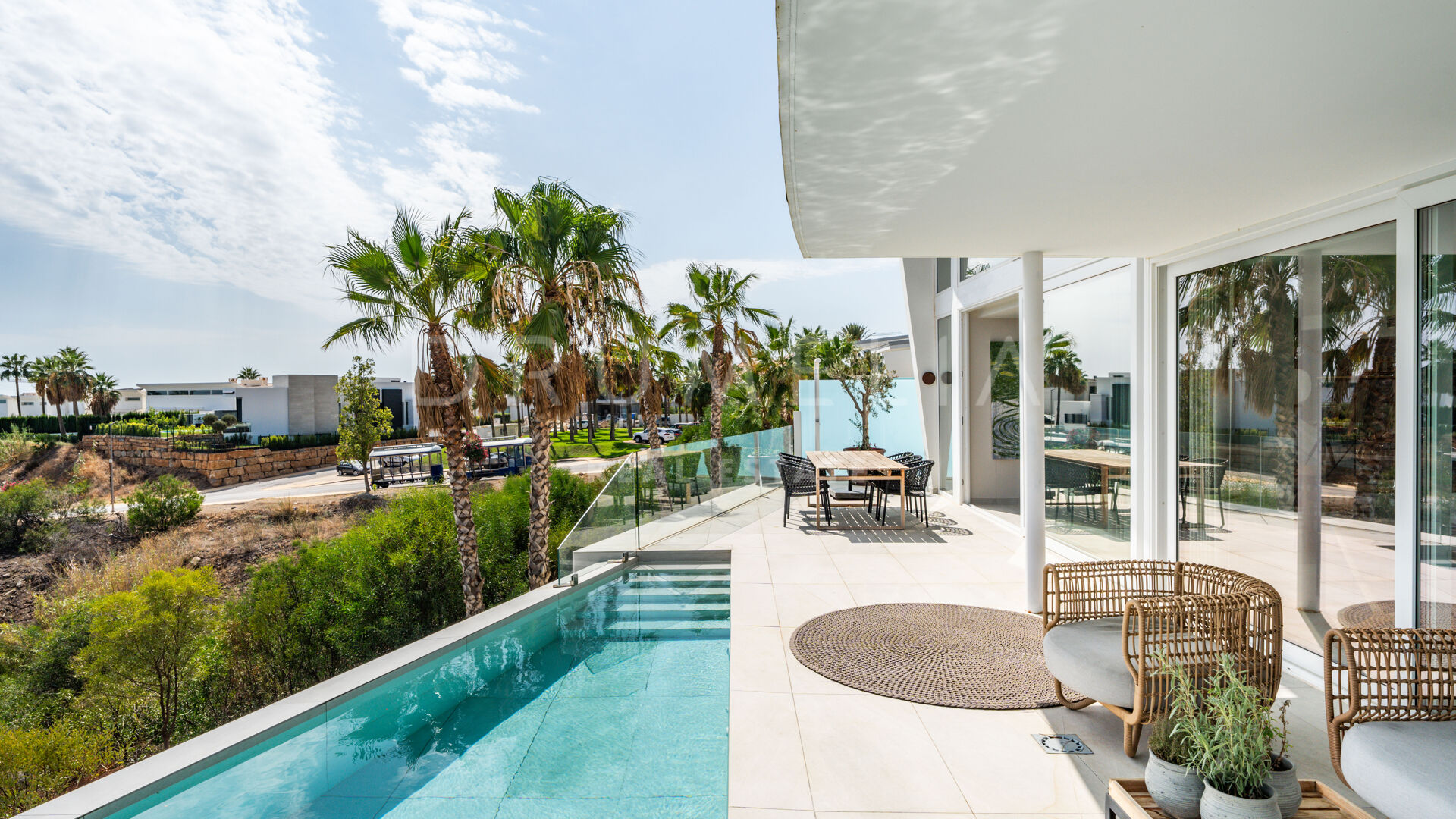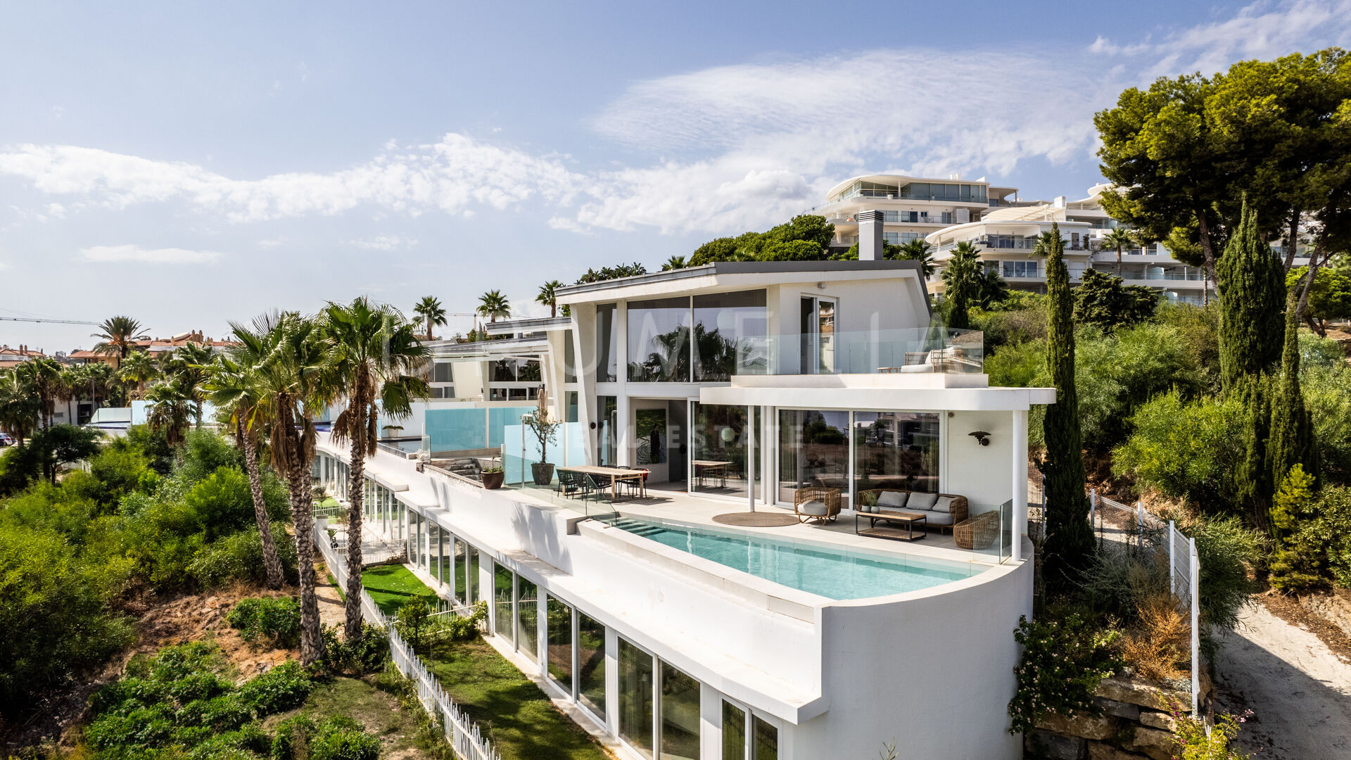 Das spektakuläre, minimalistische Haus von 340 m² mit 82 m² Terrassen ist von ähnlich attraktiven Immobilien umgeben und nutzt seine Lage und Südausrichtung optimal aus. Das Haus zeichnet sich durch die visuelle Stärke des modernen Stils und den spektakulären Blick auf die Berge und das Meer aus und ist die Immobilie, die den Unterschied macht. Die Fassade mit viel Glas ermöglicht es Ihnen, Ihr Haus zur Umgebung hin zu öffnen, ohne dabei Ihre Privatsphäre aufzugeben. Das Projekt wurde so entworfen, dass das natürliche Licht in allen Räumen maximiert wird und Sie die Sonne und die Natur genießen können.