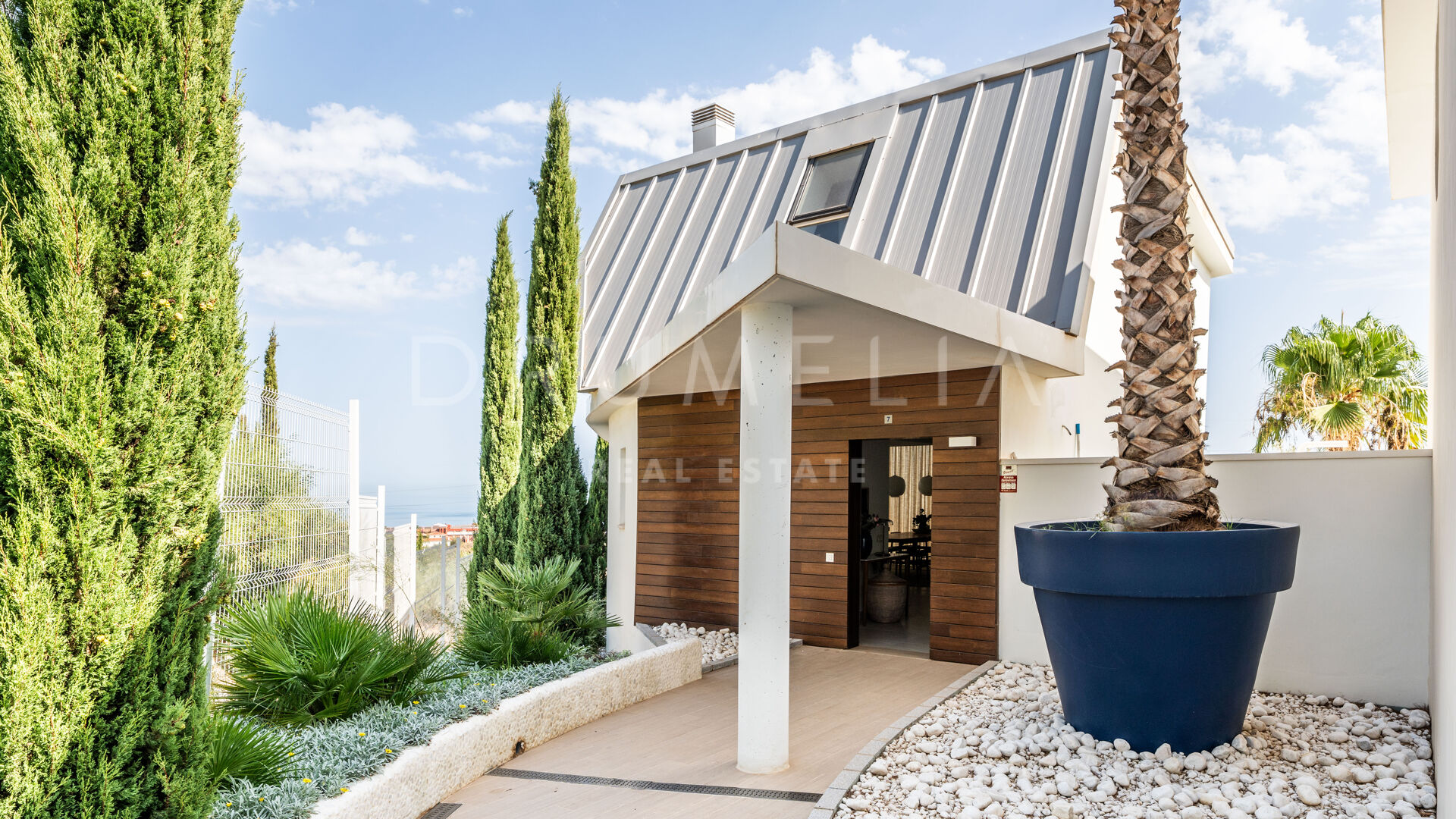 Diese 2019 erbaute moderne Luxusvilla mit 5 Schlafzimmern, die zum Verkauf steht, liegt in El Higueron zwischen Fuengirola und Benalmadena. Reserva del Higueron ist eine exklusive und ruhige Gated Community mit grünen Oasen, Gärten und Sportanlagen. Sie liegt in einer dramatischen Berglandschaft mit einem wahrhaft atemberaubenden Blick auf das Mittelmeer und die Küstenstädte. Die Wohnanlage bietet einen 24-Stunden-Sicherheitsdienst, hochwertige Restaurants, einen Sportclub, ein 5-Sterne-Hilton-Hotel, ein preisgekröntes SPA, Paddelplätze und vieles mehr.