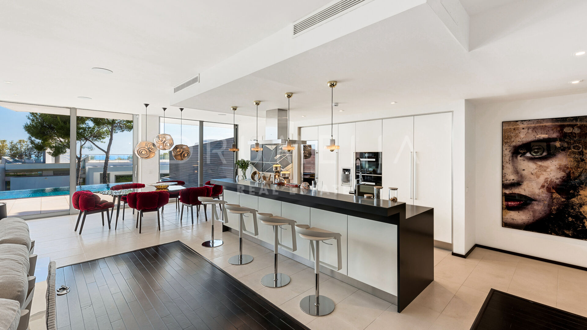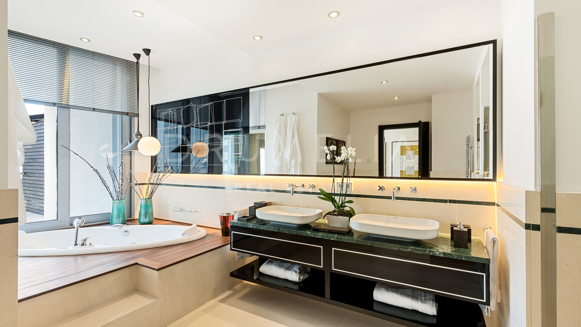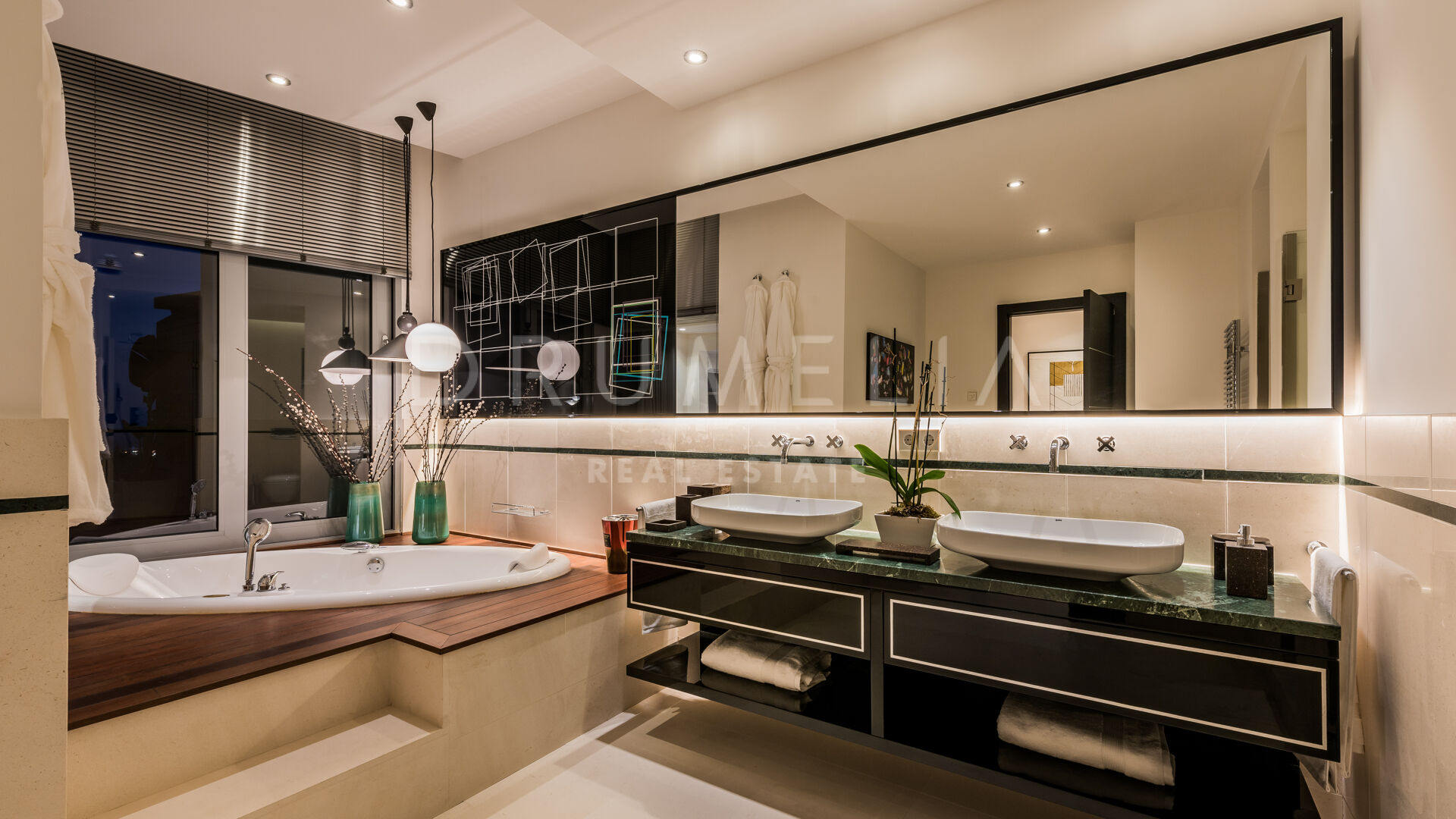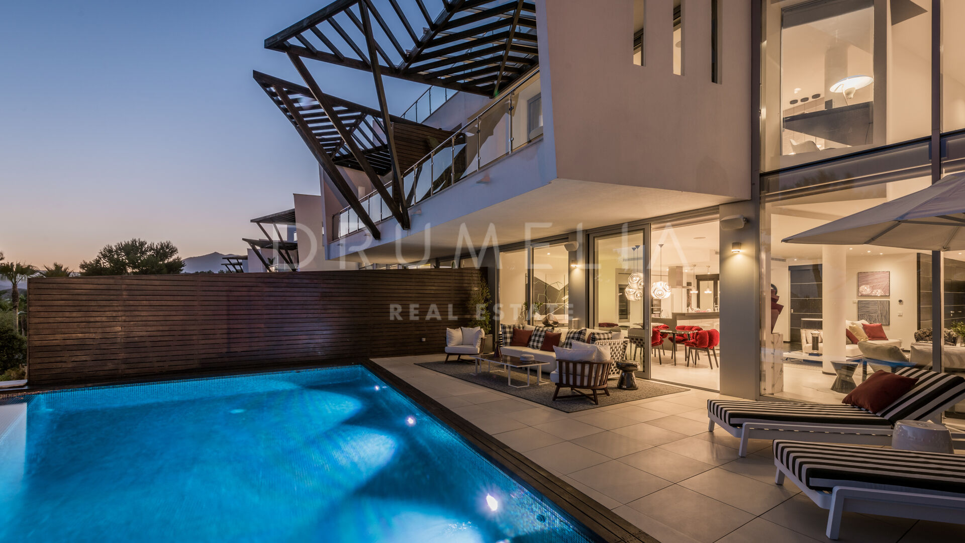 Diese moderne Doppelhaushälfte zum Verkauf in Sierra Blanca ist der ultimative Traum für alle, die höchste Qualität, Privatsphäre und exklusives Wohnen in Marbellas prestigeträchtigster Gated Community suchen.