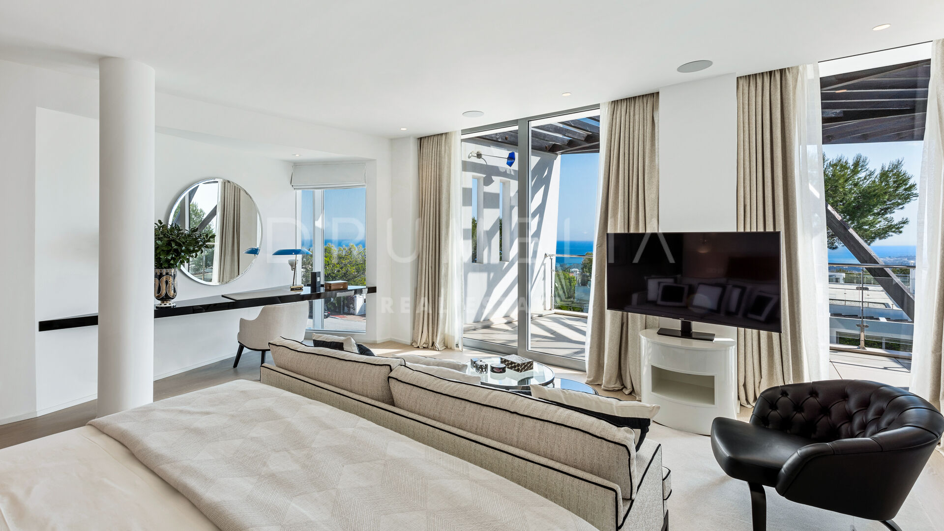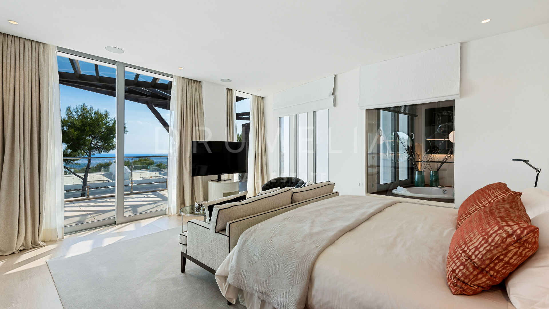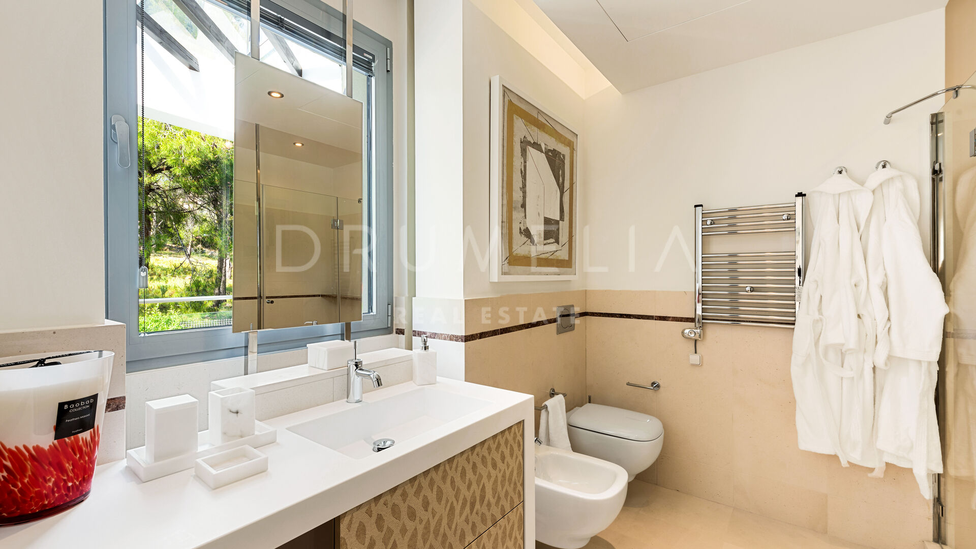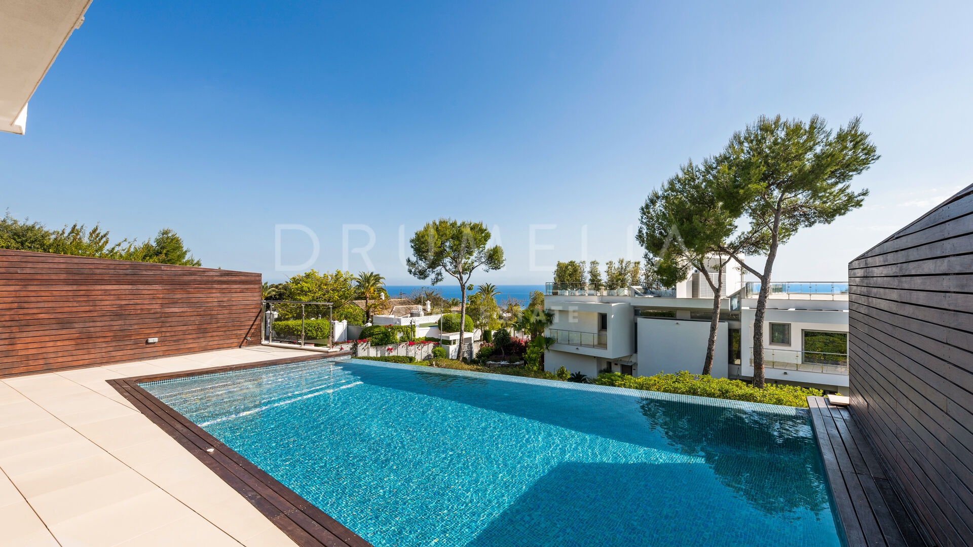 Diese moderne Doppelhaushälfte zum Verkauf in Sierra Blanca ist der ultimative Traum für alle, die höchste Qualität, Privatsphäre und exklusives Wohnen in Marbellas prestigeträchtigster Gated Community suchen.