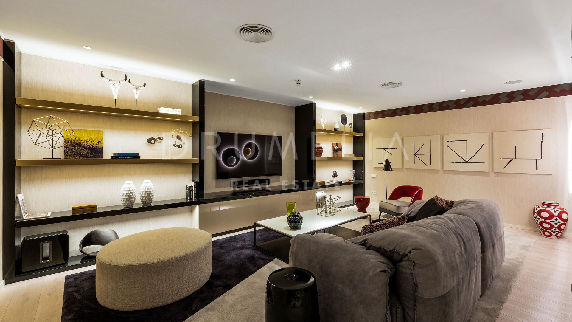 Dieses außergewöhnliche Haus von 655 m2 wurde von dem Designer Pedro Peña gründlich renoviert und bis ins kleinste Detail dekoriert. Es erstreckt sich über drei Etagen (Keller, Erdgeschoss und erster Stock) und verfügt zusätzlich über eine 146 m2 große Dachterrasse, die in ein atemberaubendes Solarium mit Jacuzzi, Grill, Essbereich im Freien und Chill-out-Bereich verwandelt wurde. Das Haus verfügt über eine Eingangshalle, einen geräumigen und hellen Wohn- und Essbereich, 3 gemütliche Schlafzimmer, 3 Badezimmer und eine Gästetoilette (alle mit modernem Chic ausgestattet), eine offene, voll ausgestattete schwarz-weiße Küche mit einer Kochinsel und einem Frühstücksbereich. Abgerundet wird das Haus durch einen privaten, nach Süden ausgerichteten Swimmingpool und einen Keller mit einem modernen Fernsehraum.
