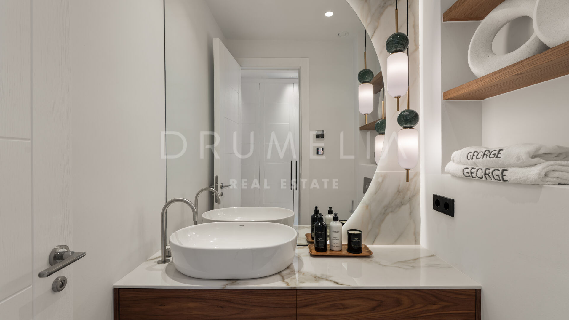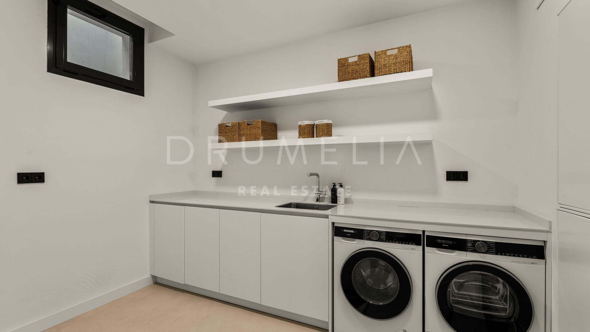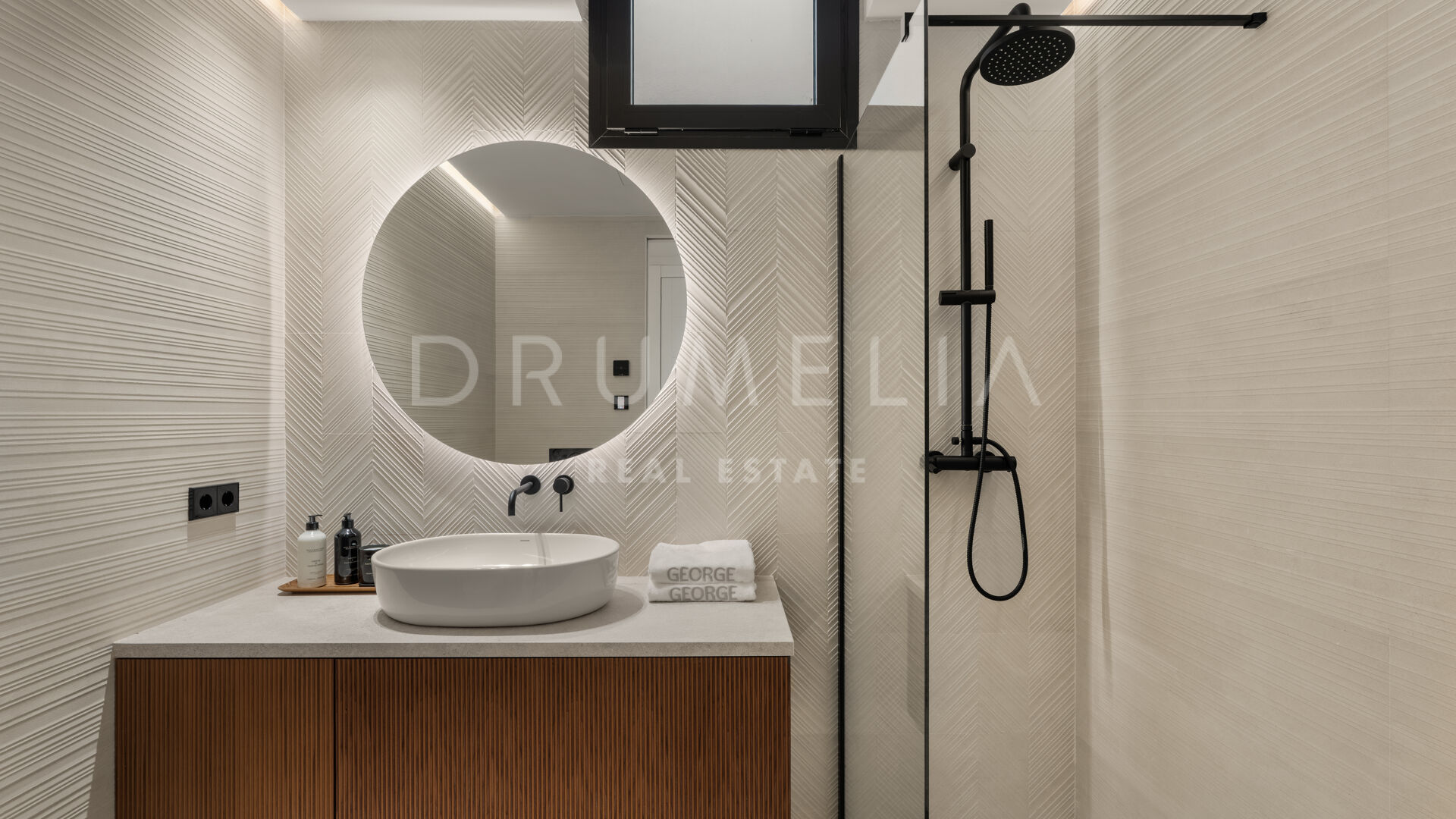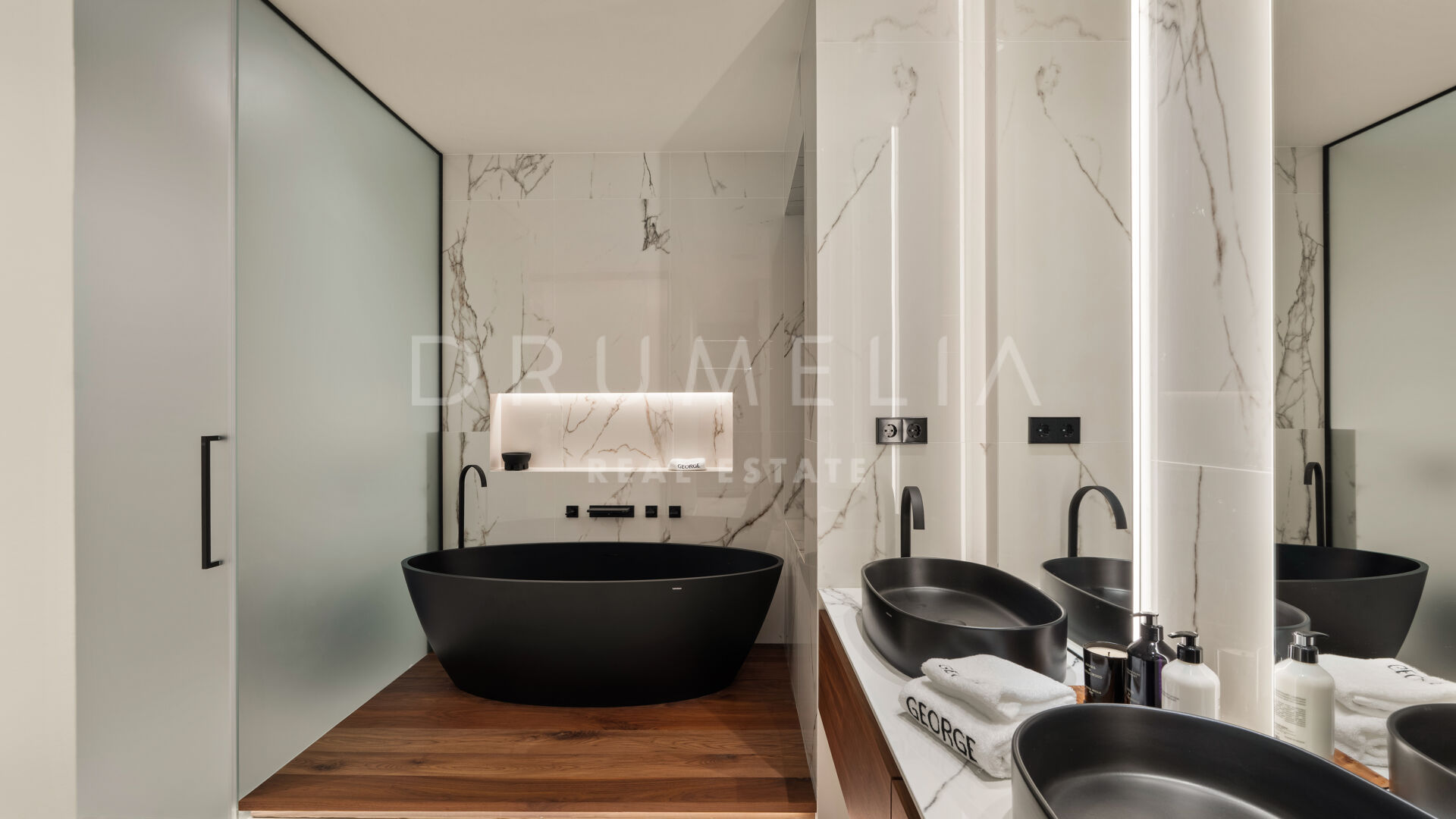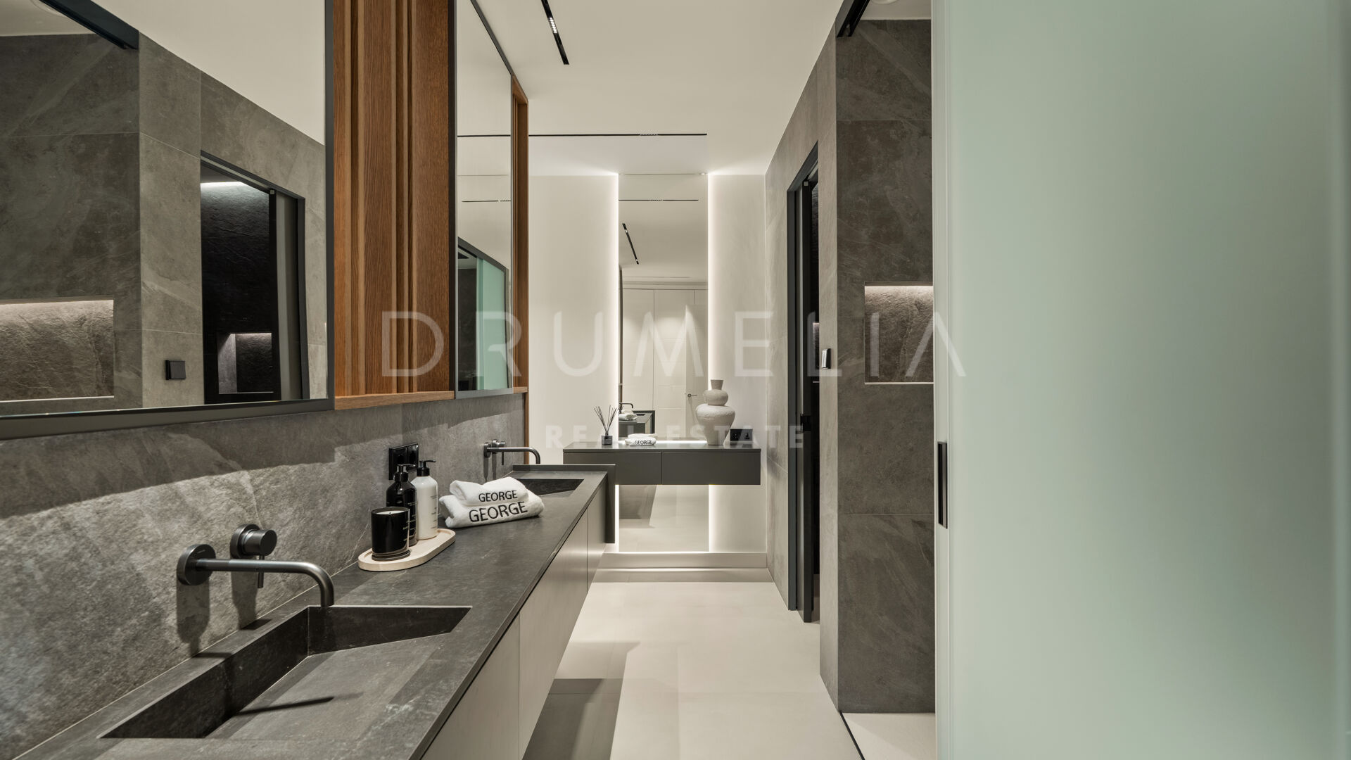 Die 2025 vollständig renovierte Immobilie besticht durch klare Linien, offene Räume und einen harmonischen Übergang zwischen Innen- und Außenbereichen. Der neue Eingang an der Rossini-Straße empfängt Besucher mit üppigen Gärten und einem dekorativen Wasserfall, während der ursprüngliche Zugang an der Sibelius-Straße ideal für Personal oder Gäste bleibt.