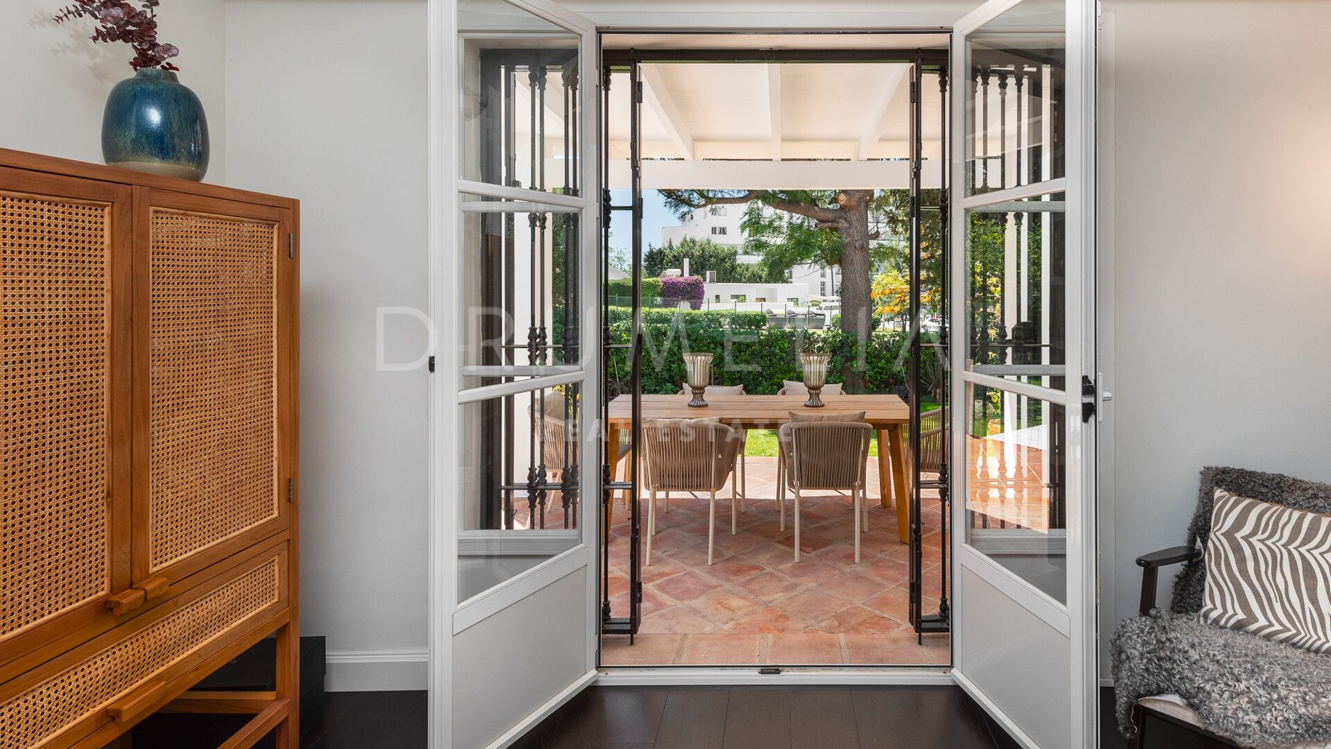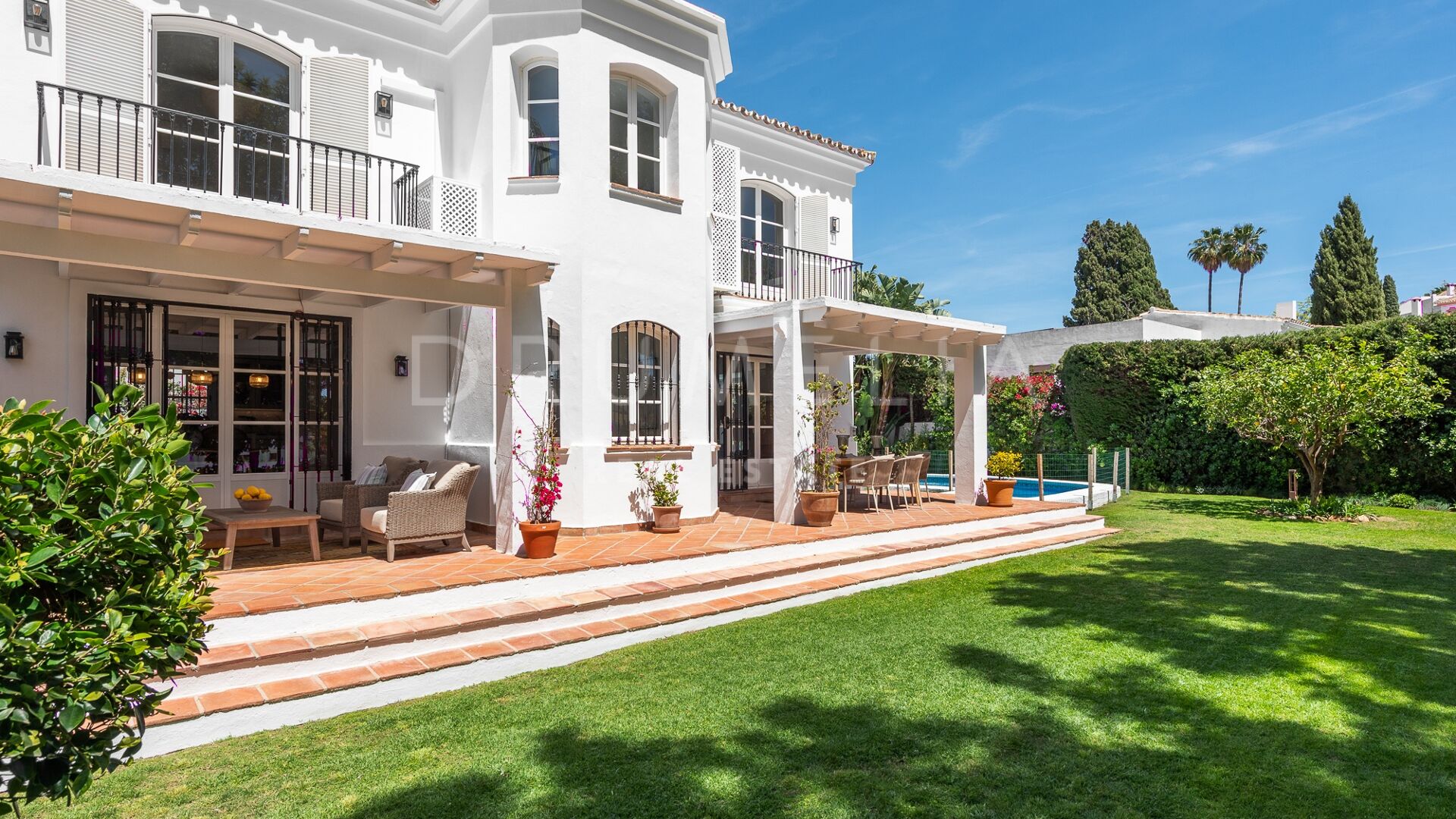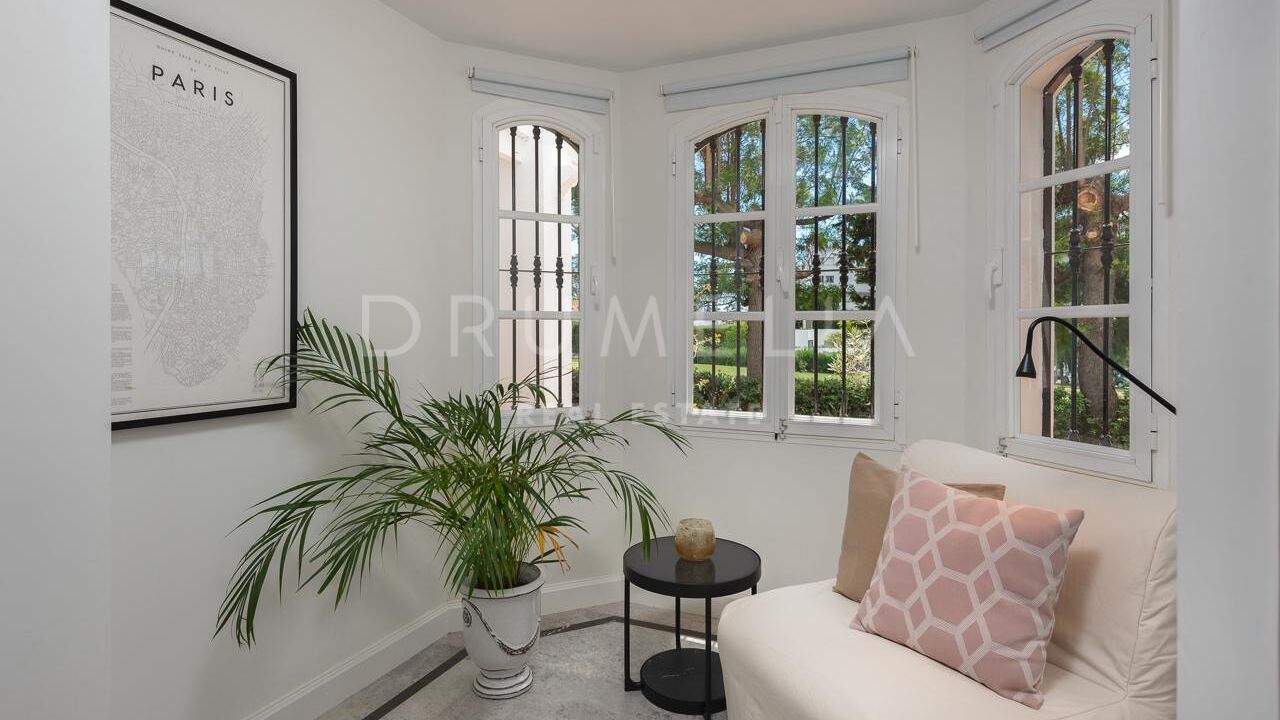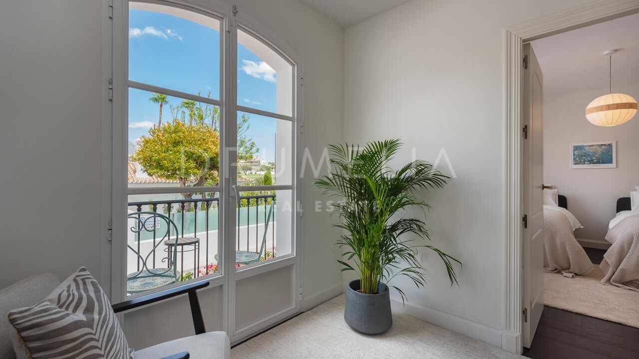 La Villa La Cotorra est proposée entièrement meublée pour une occupation immédiate — une location à long terme de grande qualité sur la Costa del Sol, avec le confort opérationnel du club-house de golf de Guadalmina à distance de marche.