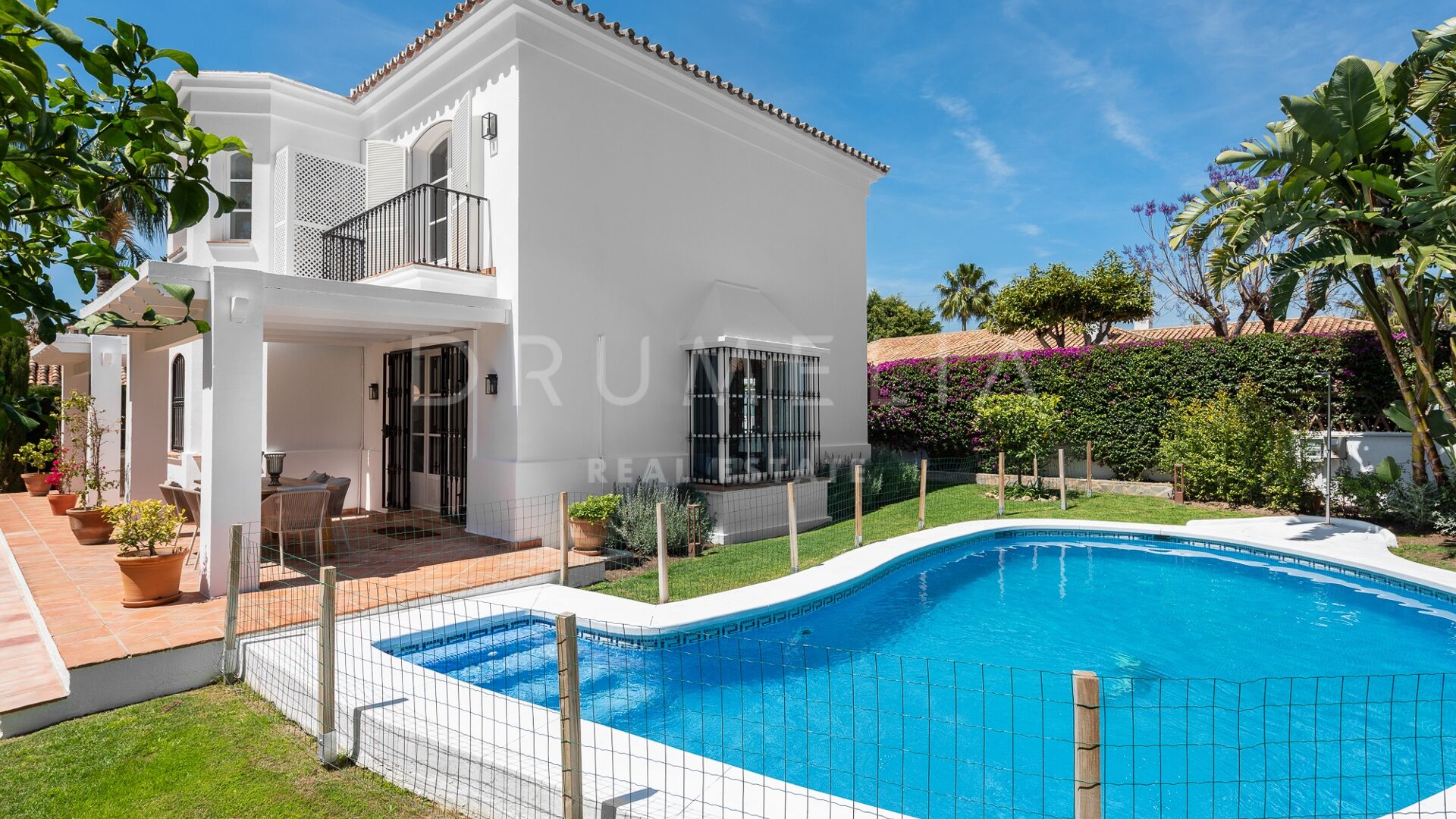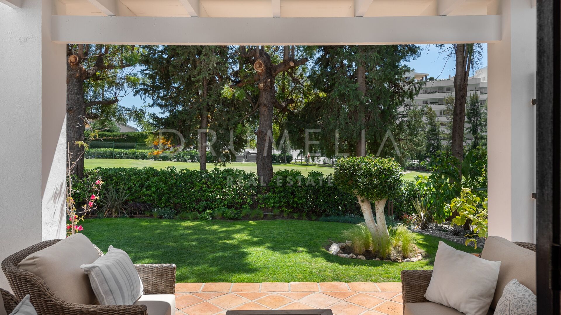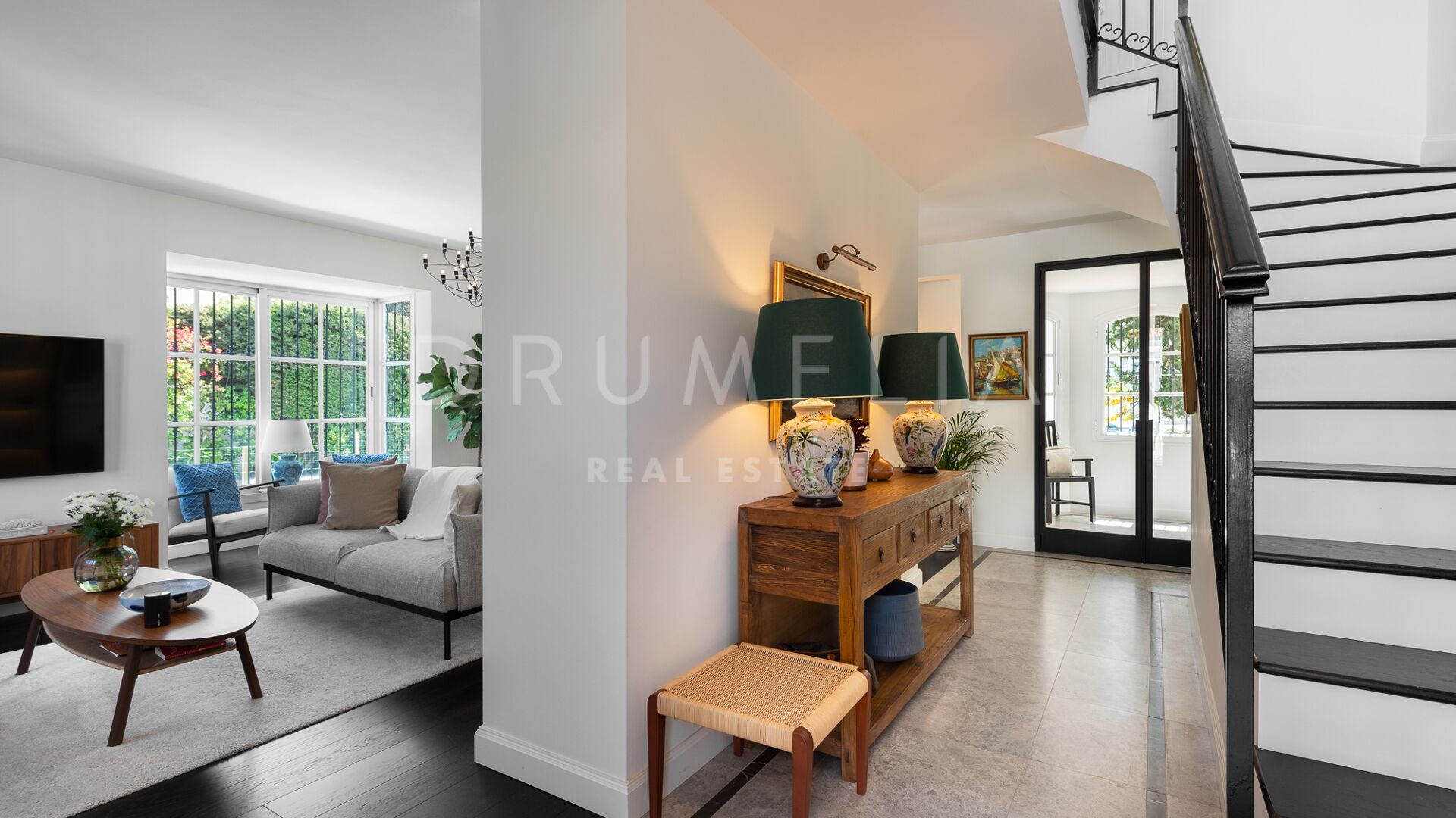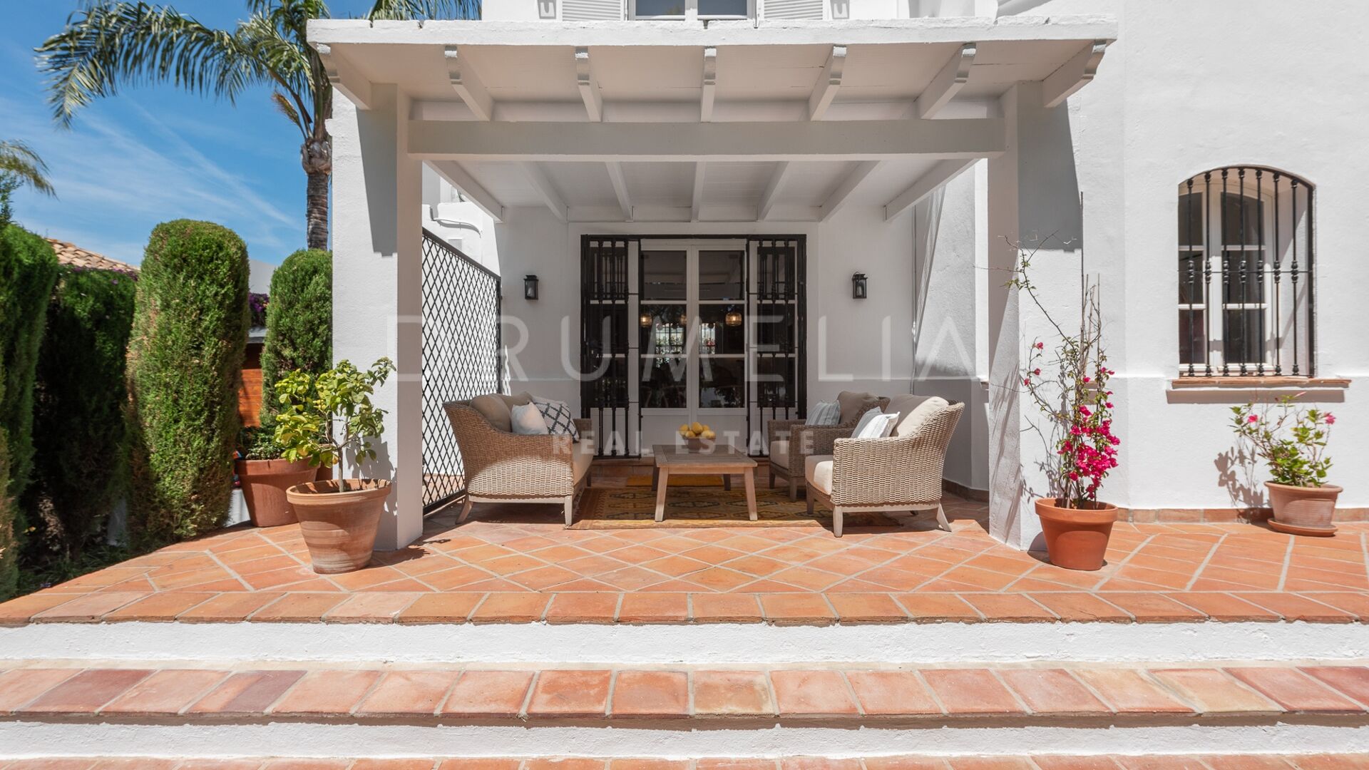 La Villa La Cotorra est proposée entièrement meublée pour une occupation immédiate — une location à long terme de grande qualité sur la Costa del Sol, avec le confort opérationnel du club-house de golf de Guadalmina à distance de marche.