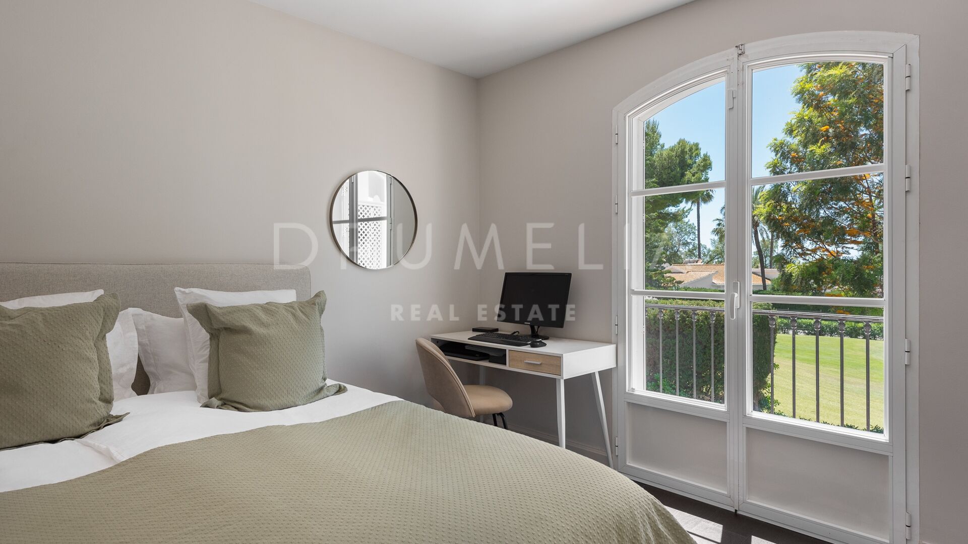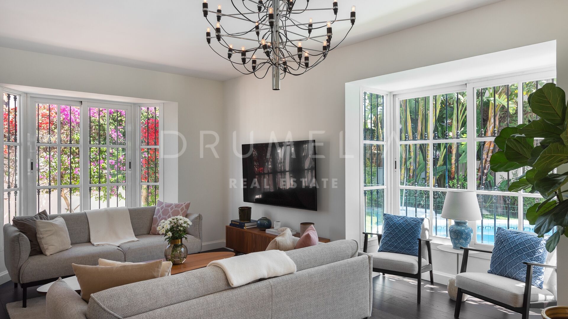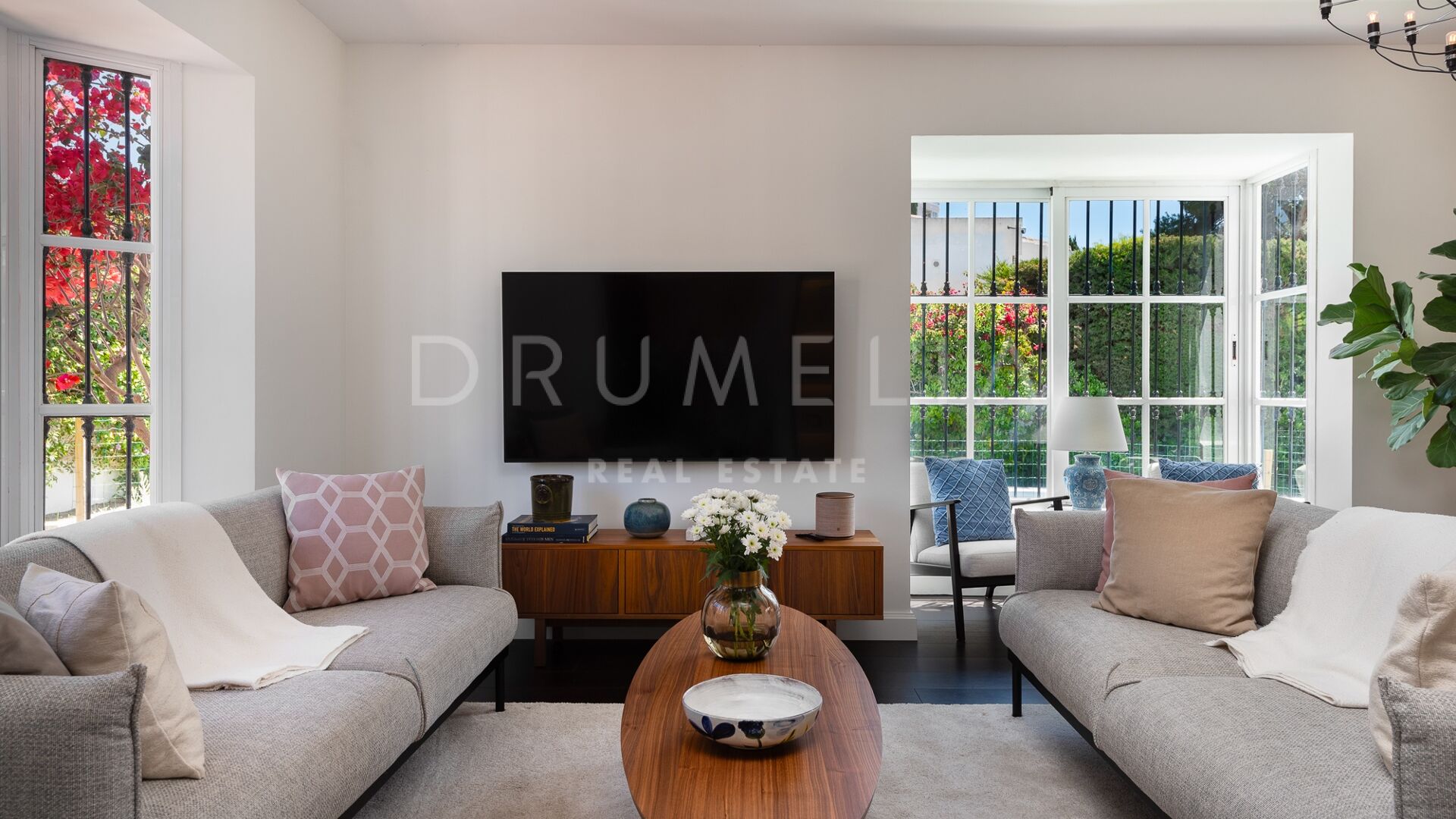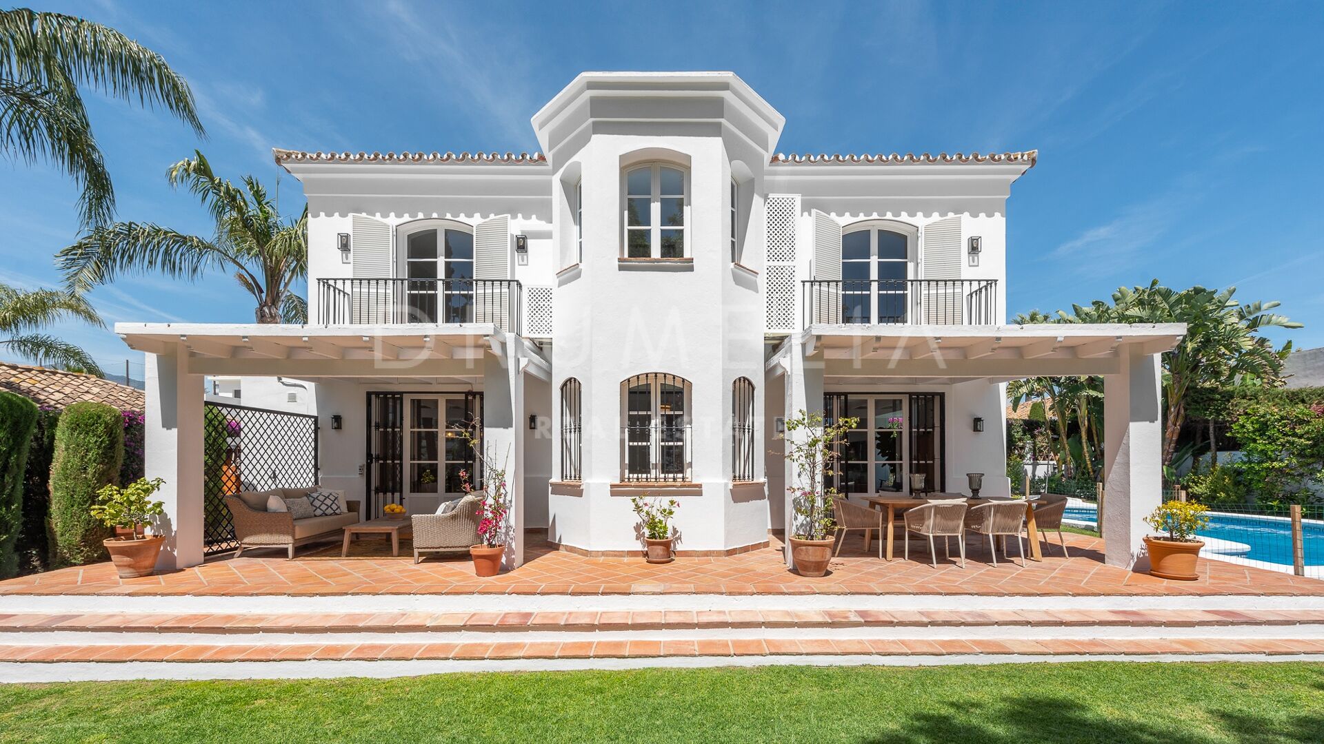 La Villa La Cotorra est proposée entièrement meublée pour une occupation immédiate — une location à long terme de grande qualité sur la Costa del Sol, avec le confort opérationnel du club-house de golf de Guadalmina à distance de marche.