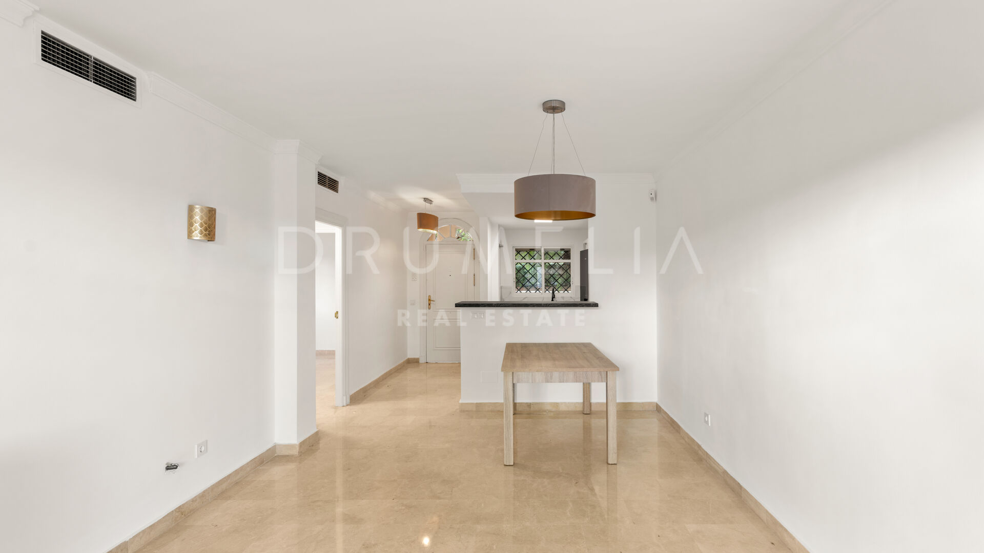 Недавно отремонтированная и находящаяся в отличном состоянии, недвижимость предлагает 93 м² общей площади с продуманной планировкой. В квартире две спальни и две ванные комнаты, включая комфортабельную ванную при спальне, выполненные в современном стиле с качественной отделкой. Квартира частично меблирована, что позволяет сразу въехать и при этом оставить место для индивидуальных решений. Гостиная и столовая имеют прямой выход в частный сад, обеспечивая гармоничное сочетание внутреннего и внешнего пространства.
