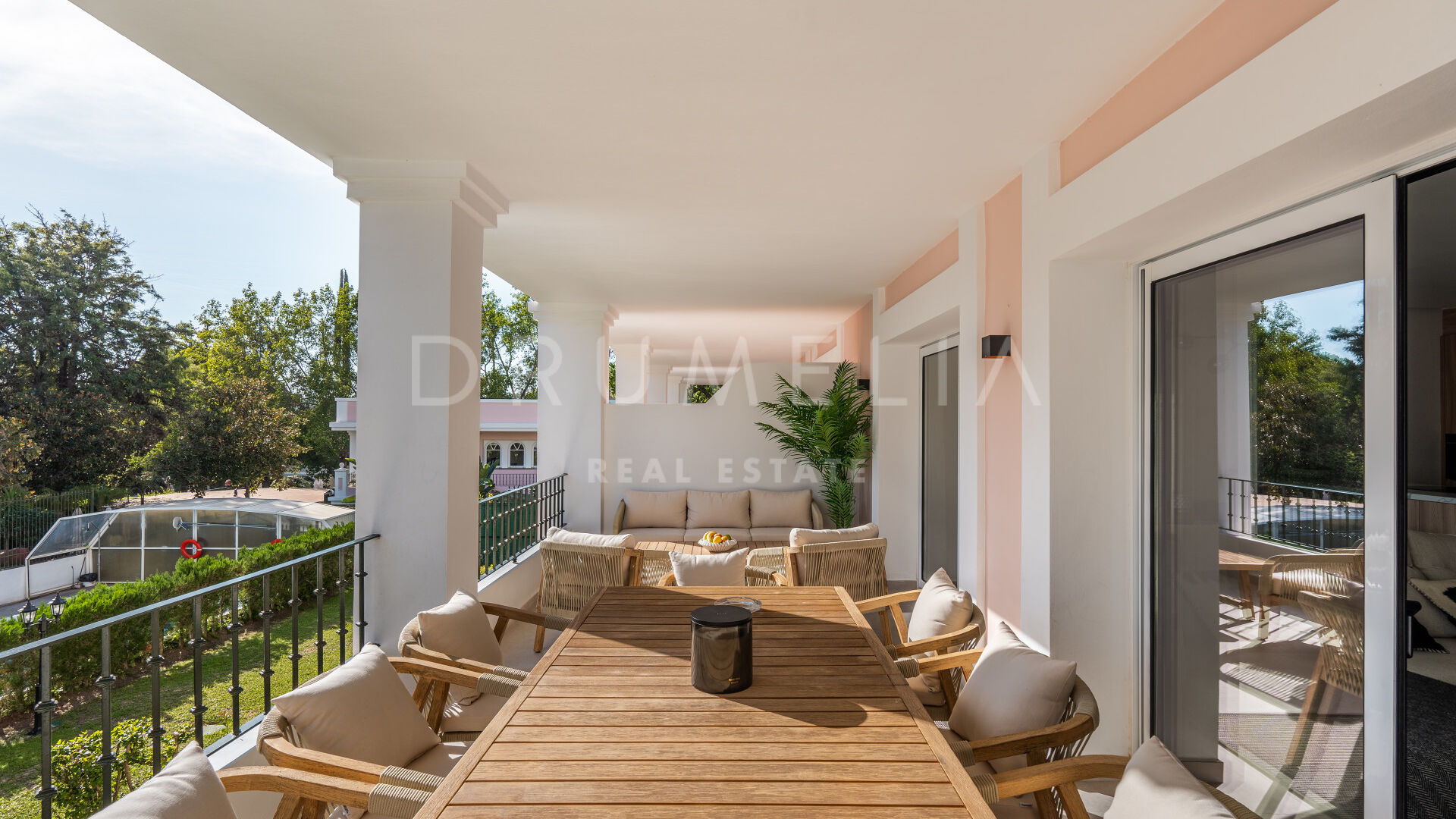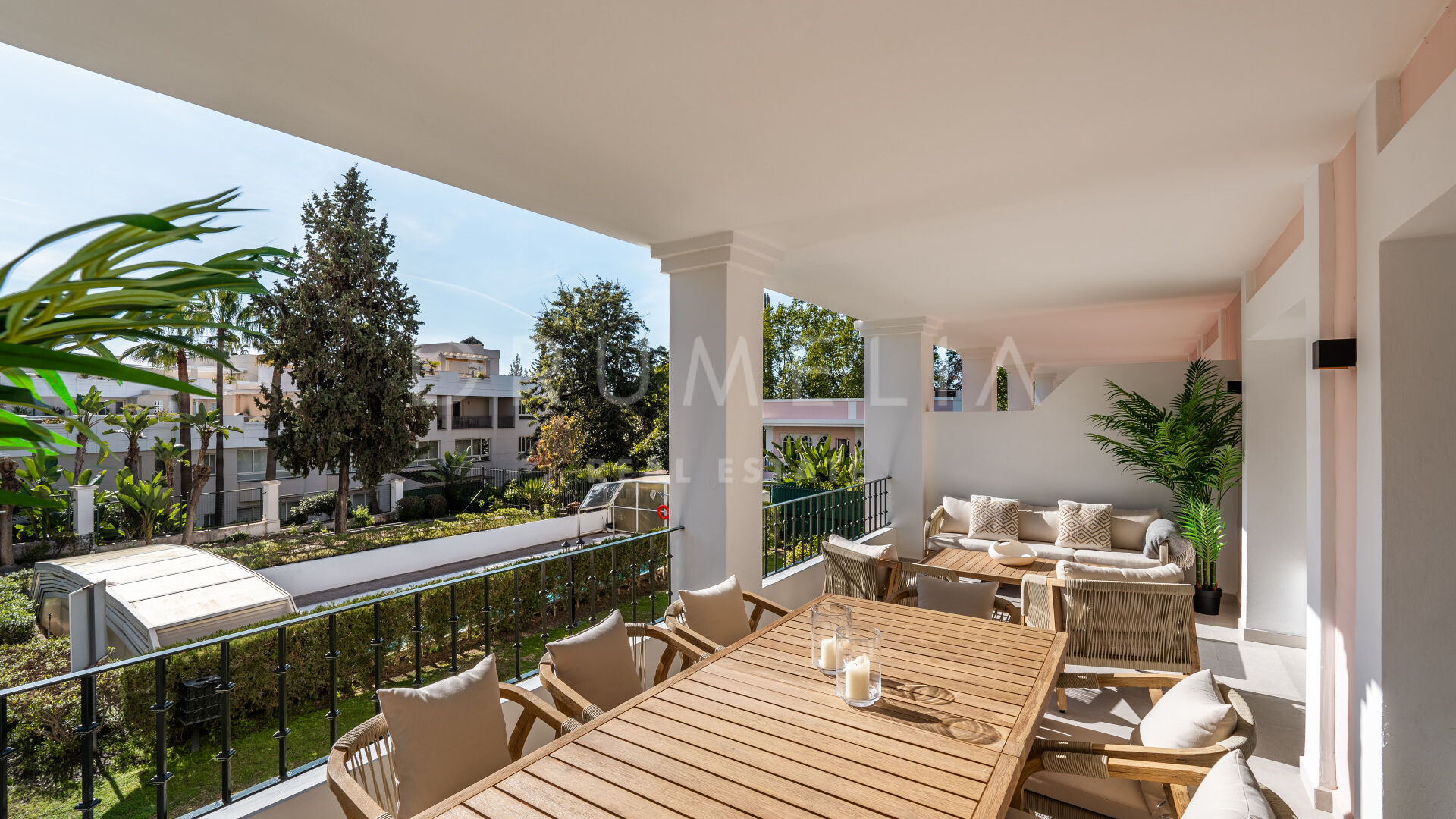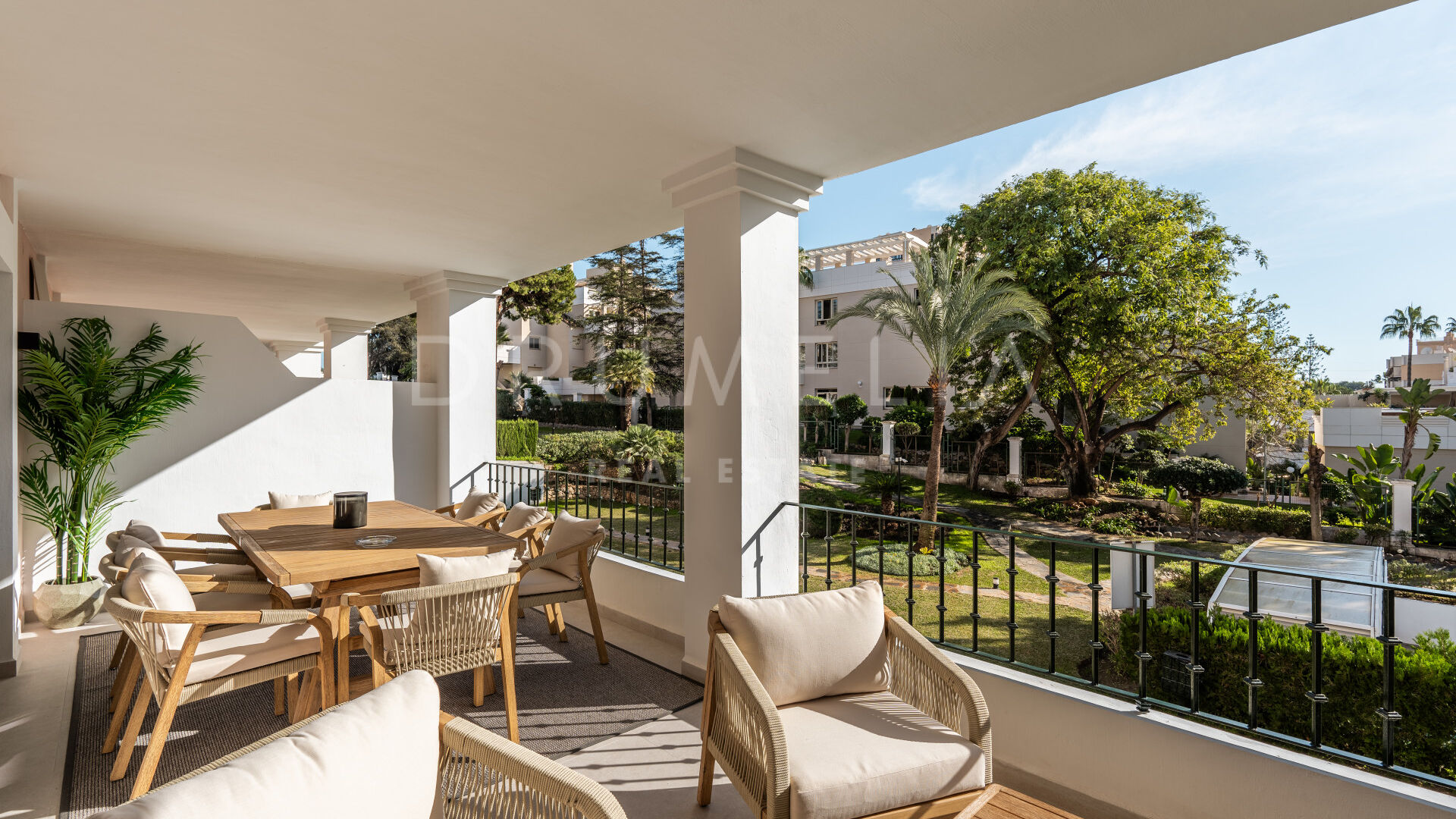 Комплекс Алоха Гарденс отличается высоким уровнем безопасности и ухоженной территорией. Жители имеют доступ к трём общим бассейнам и живописным средиземноморским садам. Всего в нескольких минутах находятся лучшие поля для гольфа Марбельи, изысканные рестораны, бутики и первоклассная инфраструктура, что делает этот дом идеальным сочетанием стиля жизни и удобства.