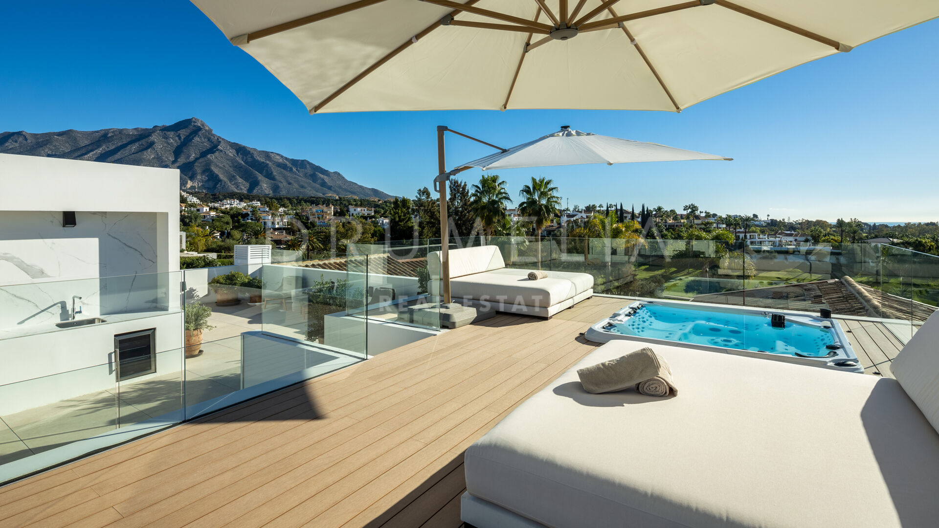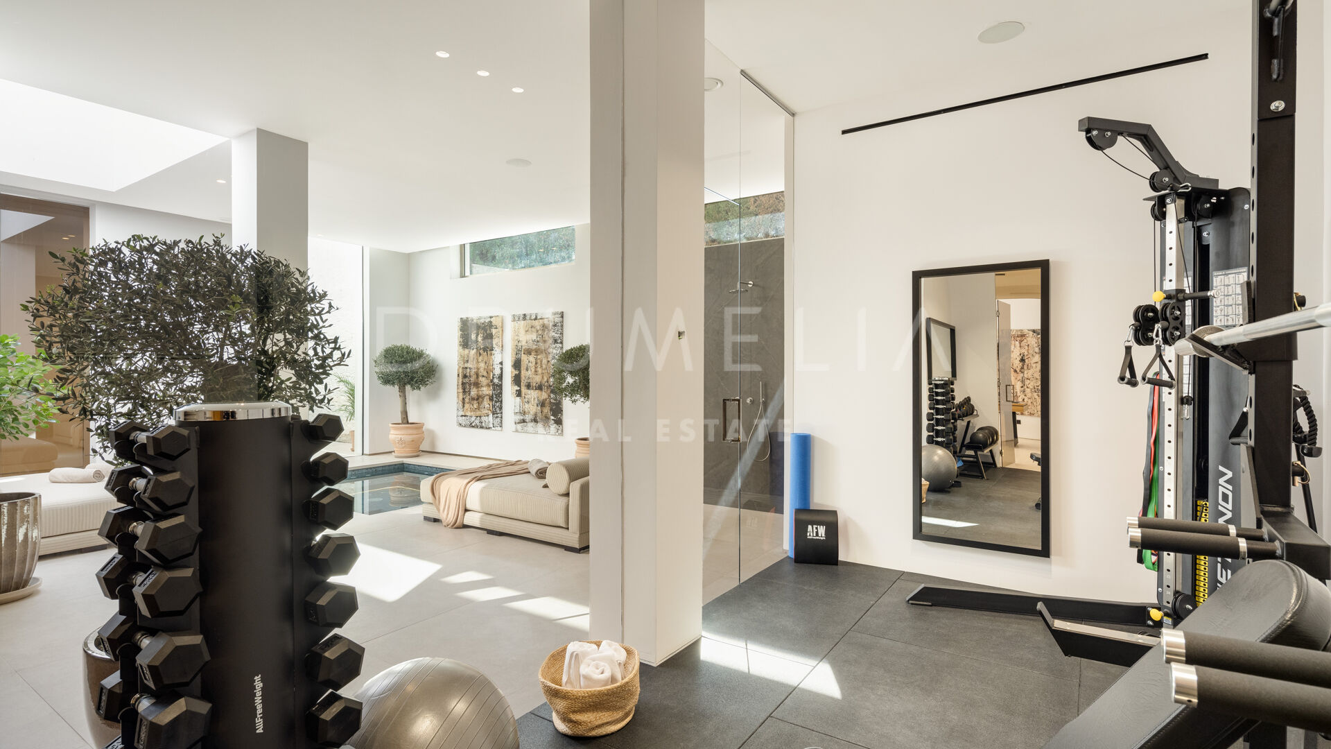 Эта необыкновенная вилла создана для наслаждения: здесь есть бассейн-инфинити с завораживающим видом на поле для гольфа, частный спа-салон с джакузи и сауной, а также терраса на крыше с гостиной и гидромассажной ванной на открытом воздухе. Кроме того, здесь есть домашний кинотеатр, полностью оборудованный тренажерный зал и комната для развлечений. Это дом мечты для семей, любителей гольфа и взыскательных покупателей, ищущих роскошь и спокойствие в Марбелье.