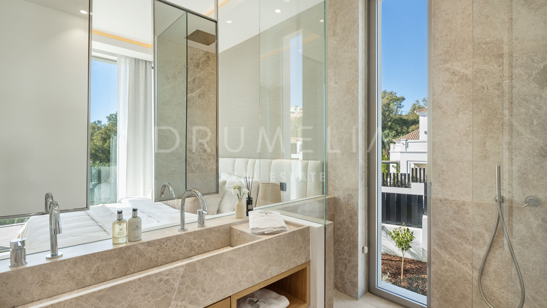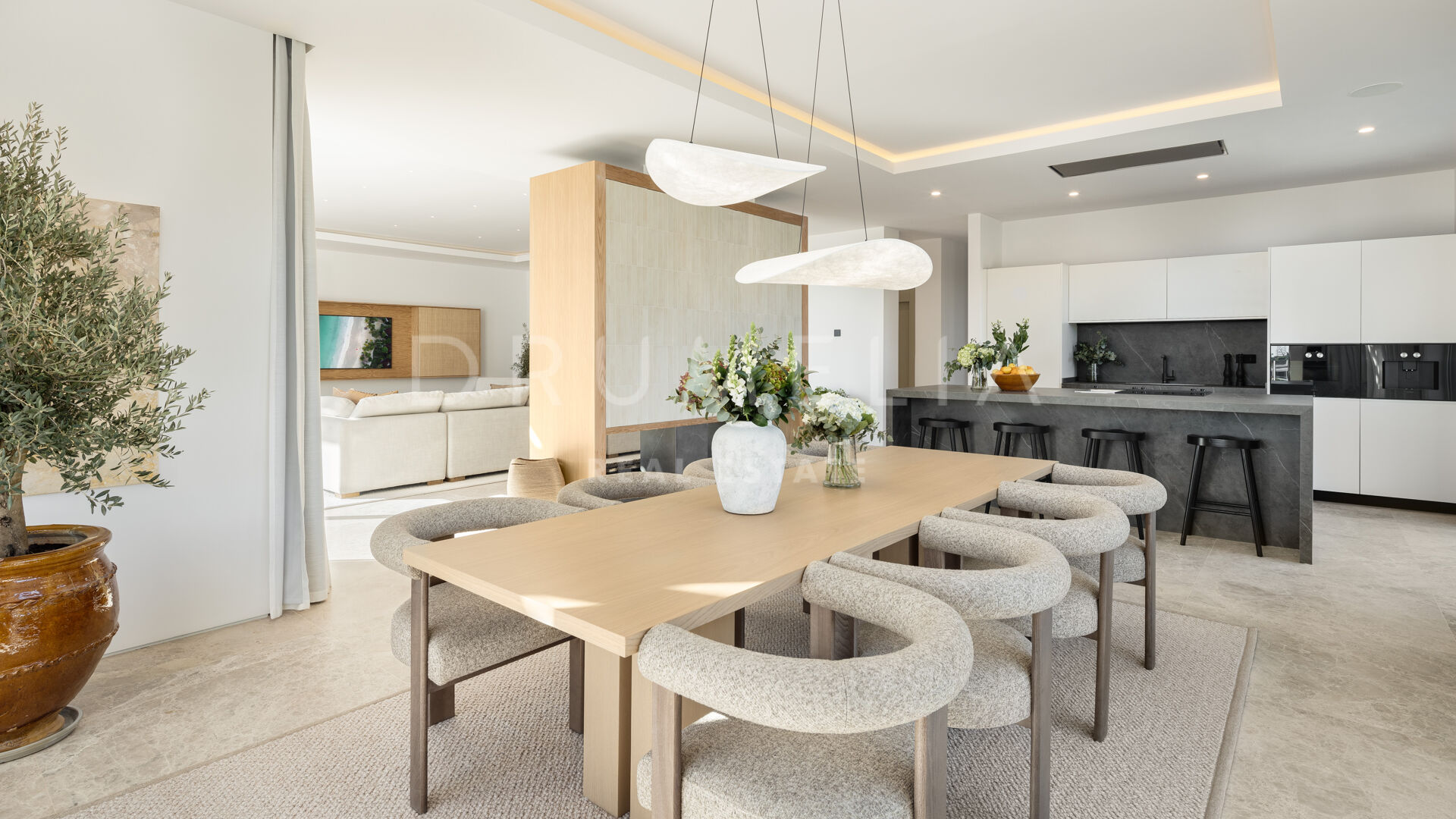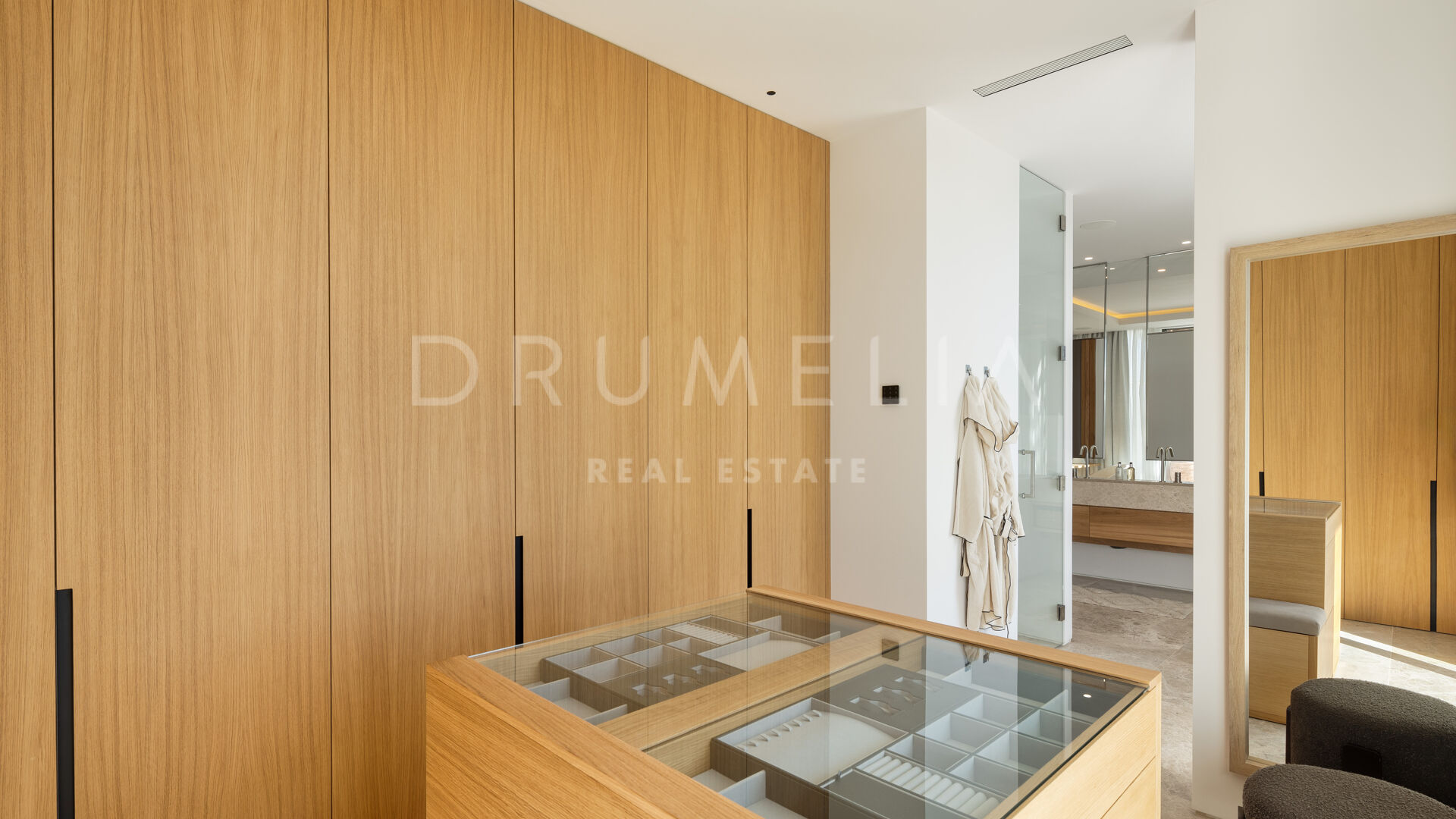 Спроектированная с открытой планировкой, вилла купается в естественном свете, имеет современную кухню, оснащенную высококлассной техникой, и бесшовные внутренние и внешние жилые пространства. Широкие стеклянные двери выходят на просторные террасы, создавая идеальную обстановку для обедов на свежем воздухе и отдыха. Пять роскошных спален, включая великолепную главную спальню с отдельной террасой, гардеробной и ванной комнатой в стиле спа, – каждая деталь была продумана до мелочей для максимального комфорта и изысканности.