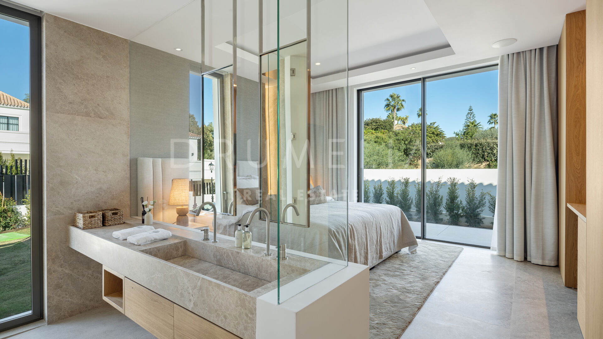 Расположенная в самом сердце престижной гольф-долины Нуэва-Андалусии, эта потрясающая вилла для гольфа на первой линии идеально сочетает в себе средиземноморскую элегантность и современные балийские веяния. Из окон открывается панорамный вид на море, пышные фервеи и гору Ла Конча. Этот исключительный объект предлагает спокойный отдых в одном из самых популярных районов Марбельи.